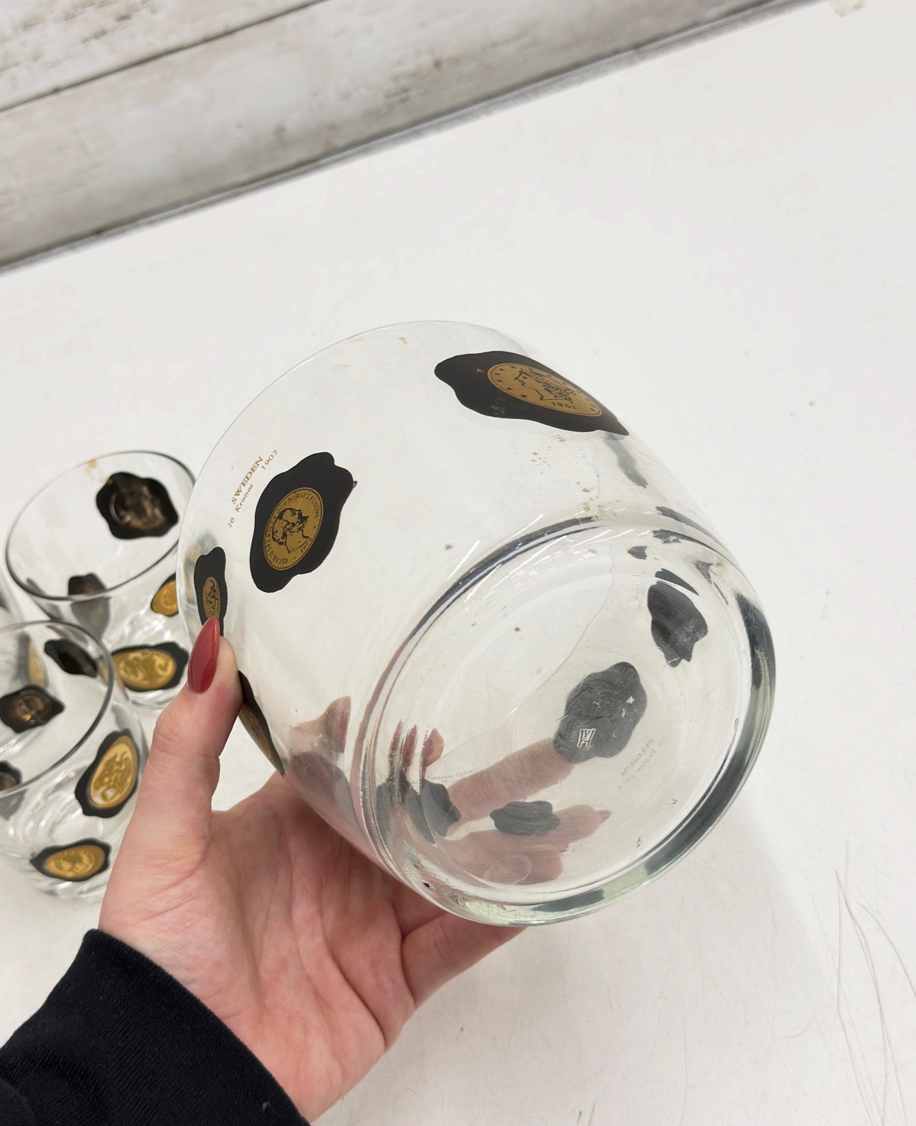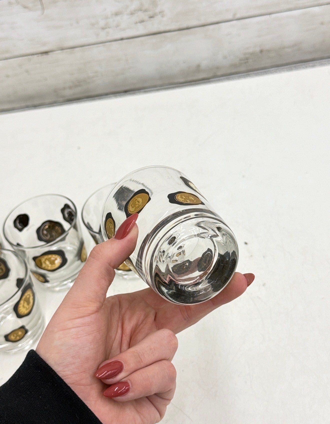 The glasses have a nice weight and clean, modern lines, making them both functional and highly decorative. Ideal for entertaining, display, or adding authentic mid-century flair to your home bar.