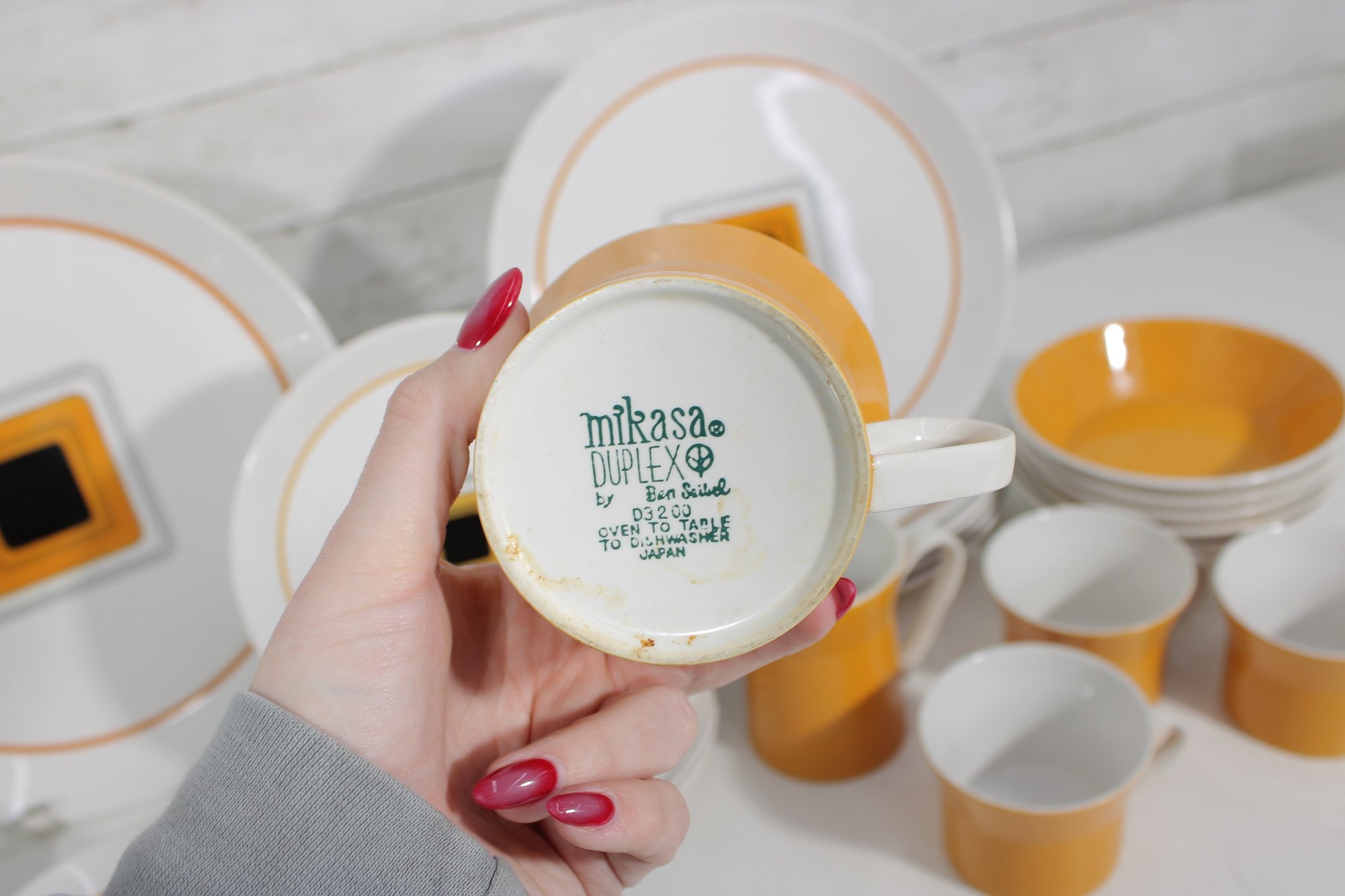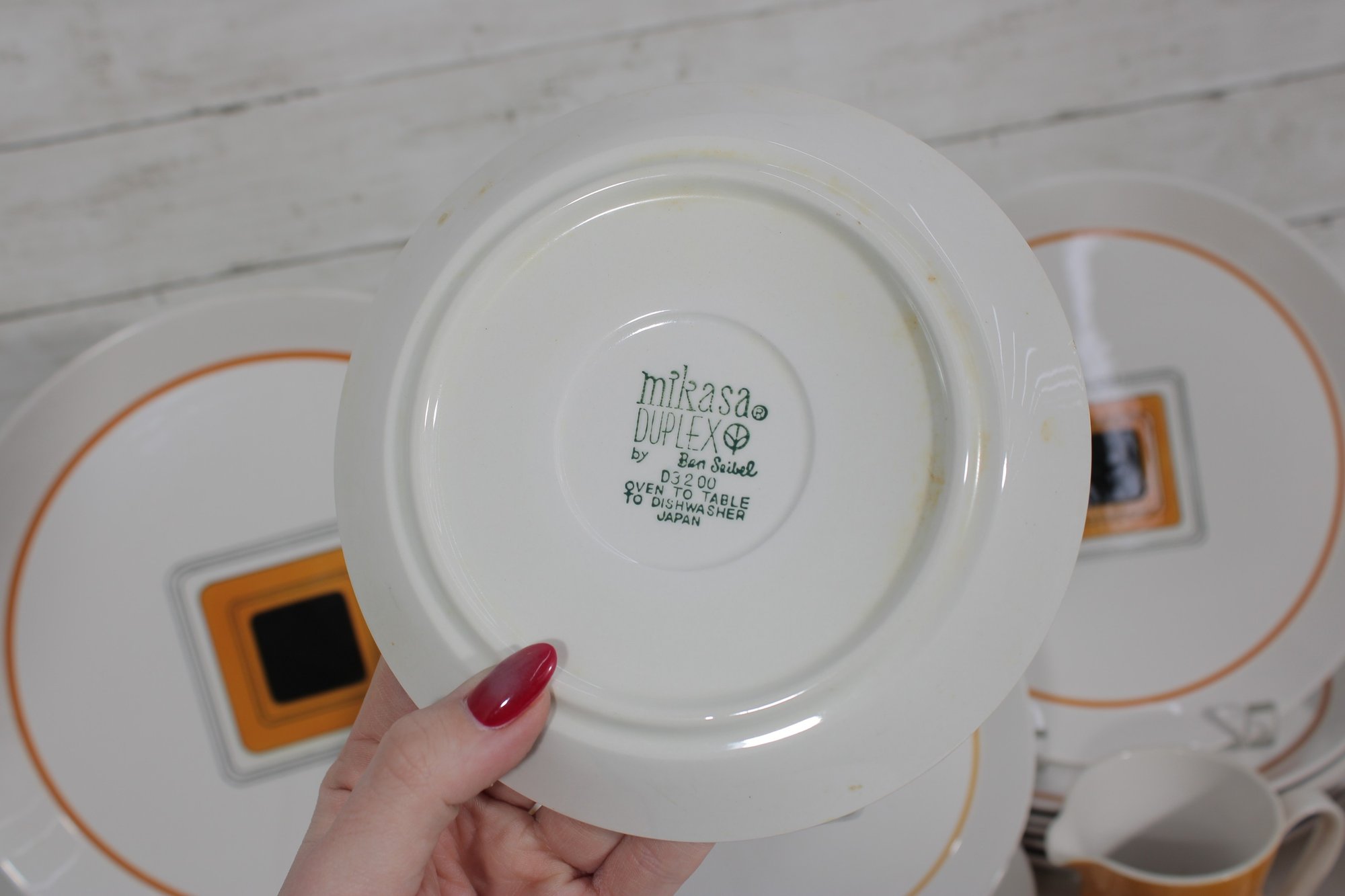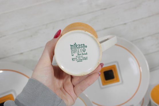 mid-century statement to your table with this striking Duplex dinnerware set by renowned designer Ben Seibel for Mikasa. Known for his clean lines and modern aesthetic, Seibel’s designs are highly collectible, and this set perfectly captures that timeless style.