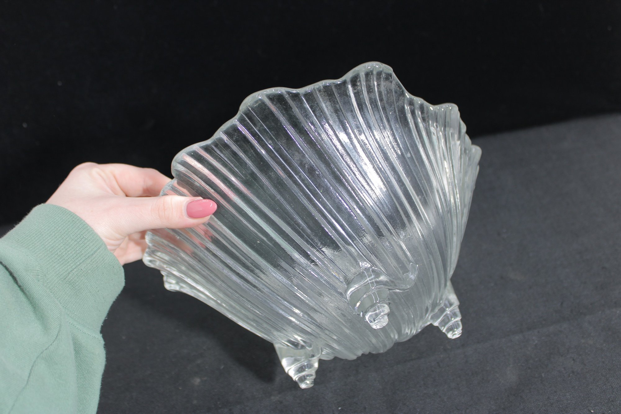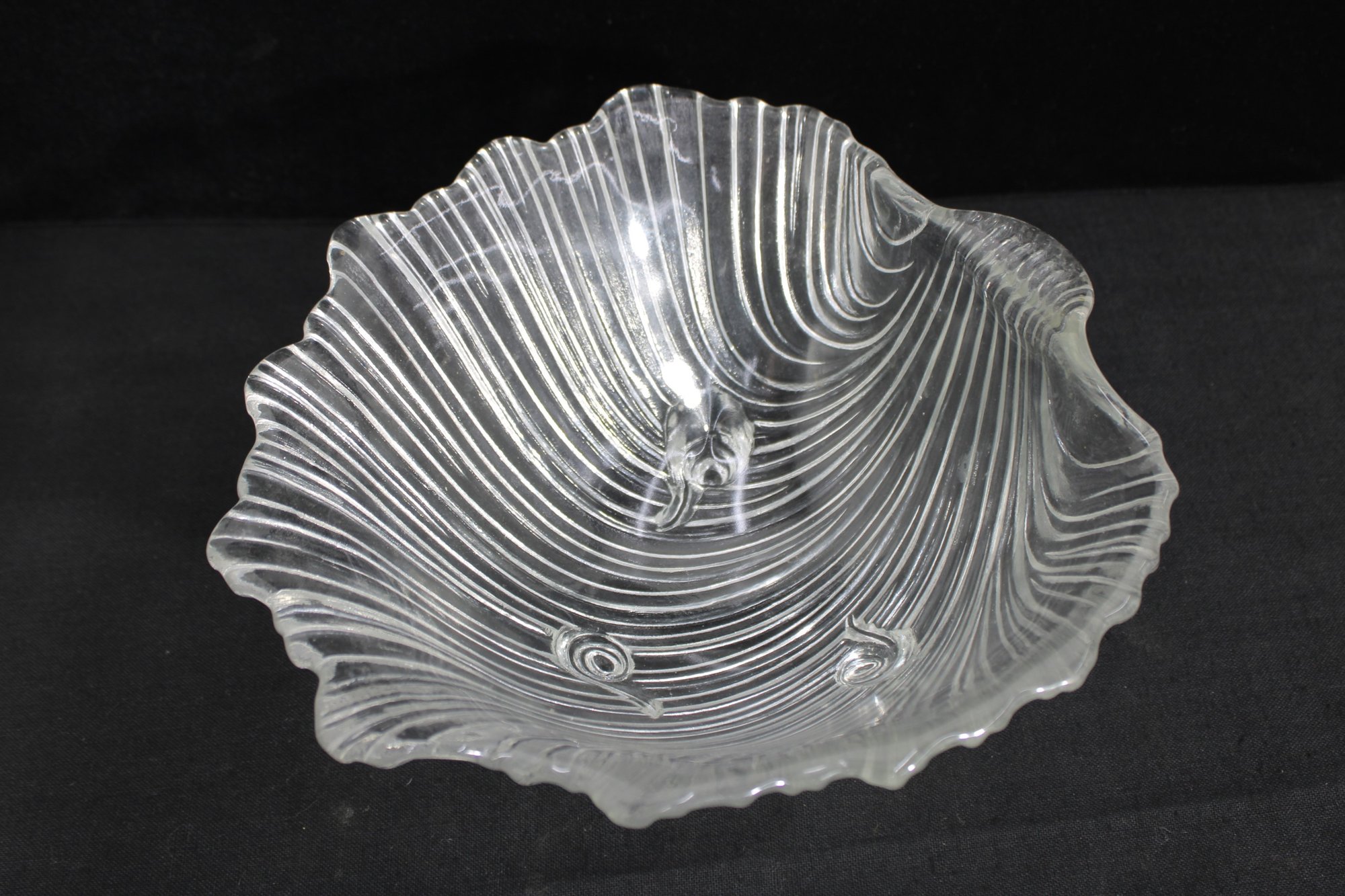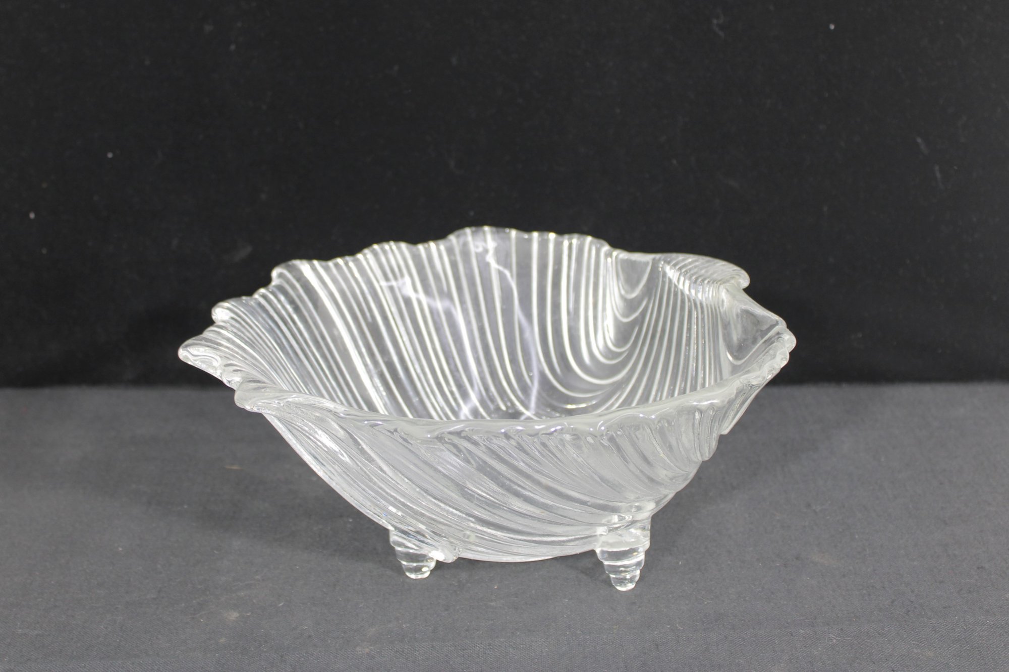 a beautiful vintage crystal bowl from the Mikasa Walther “Seascape” line, featuring a flowing, wave-like design that evokes the movement of water. The sculptural form is enhanced by sweeping ribbed lines and an organic, asymmetrical rim, giving the piece a dynamic and elegant presence.
