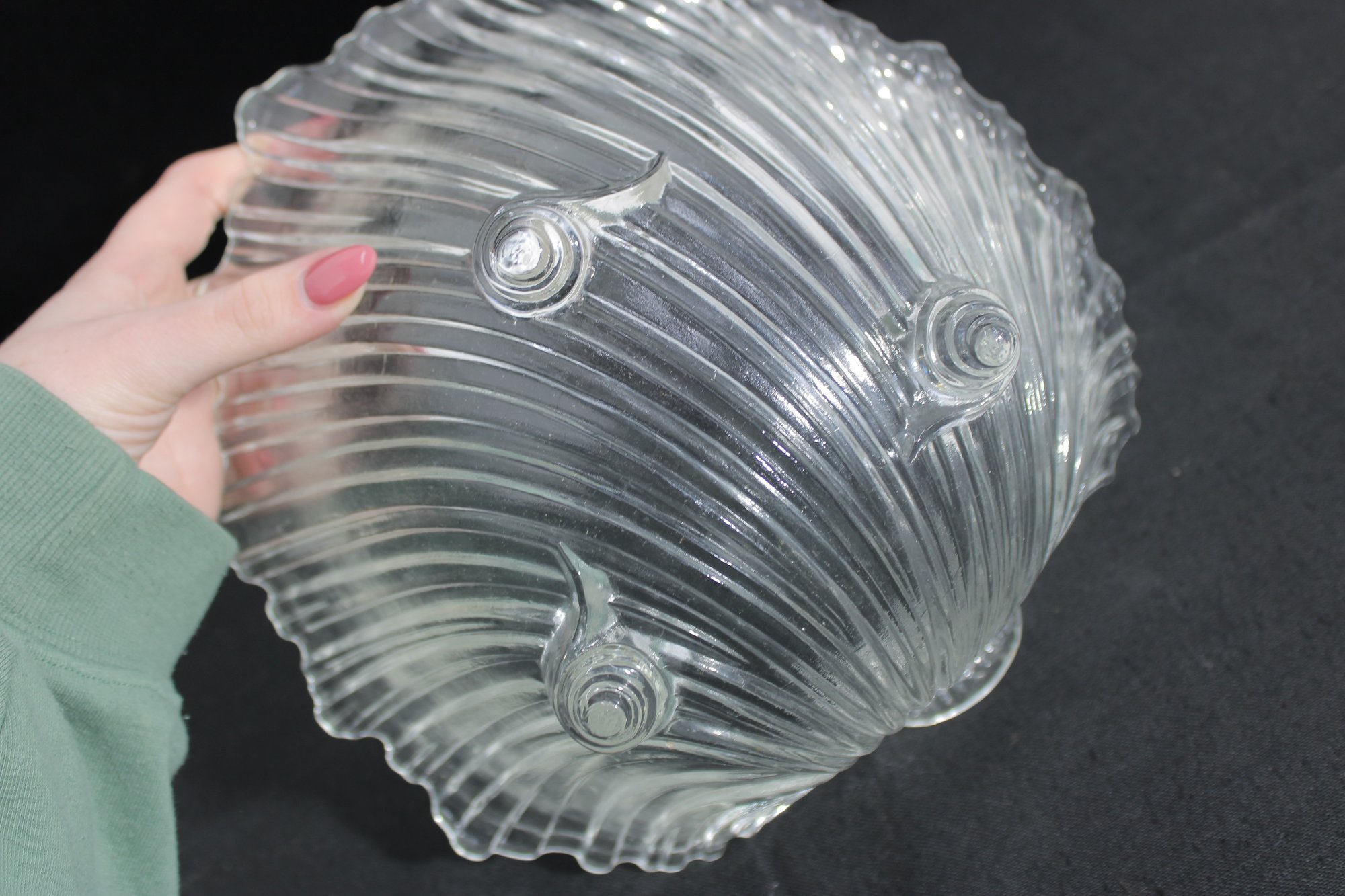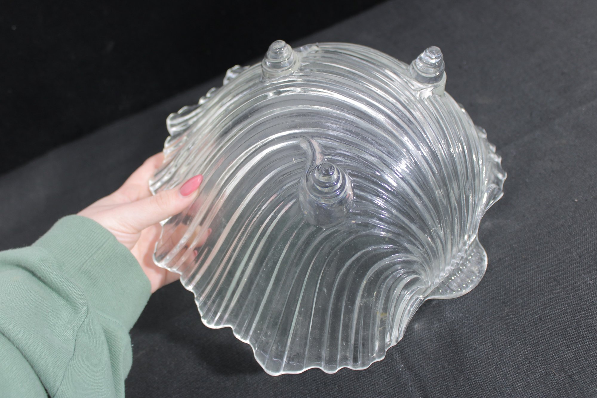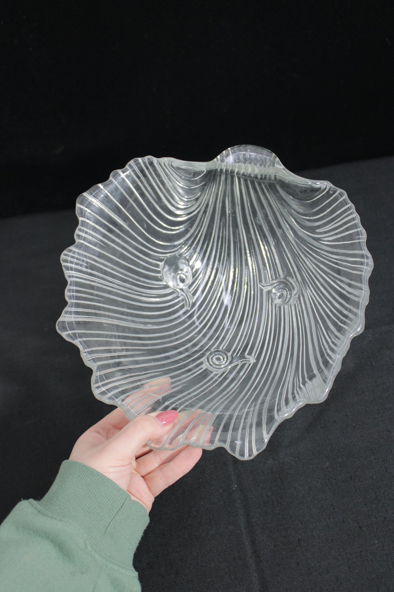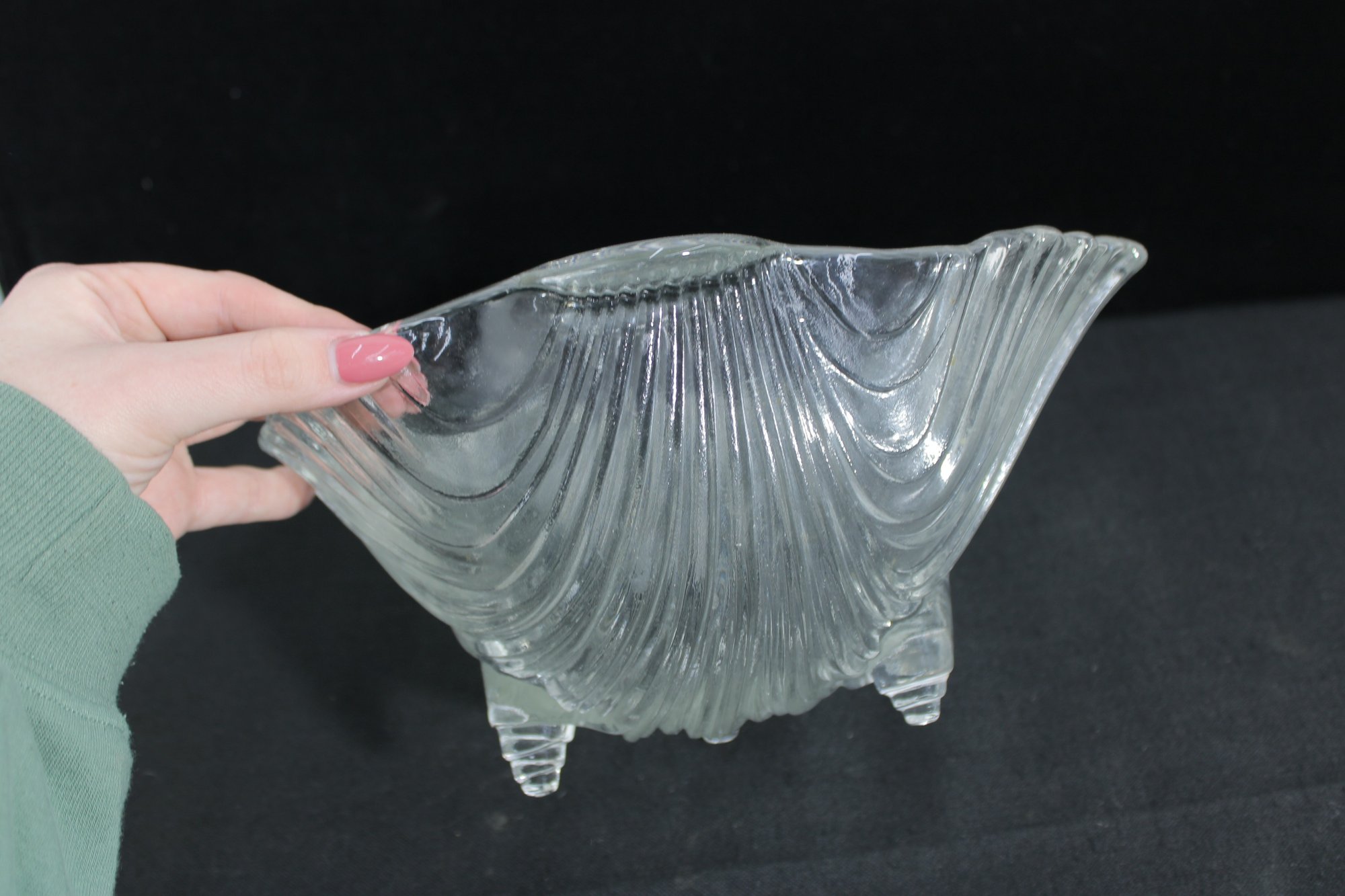 a beautiful vintage crystal bowl from the Mikasa Walther “Seascape” line, featuring a flowing, wave-like design that evokes the movement of water. The sculptural form is enhanced by sweeping ribbed lines and an organic, asymmetrical rim, giving the piece a dynamic and elegant presence.