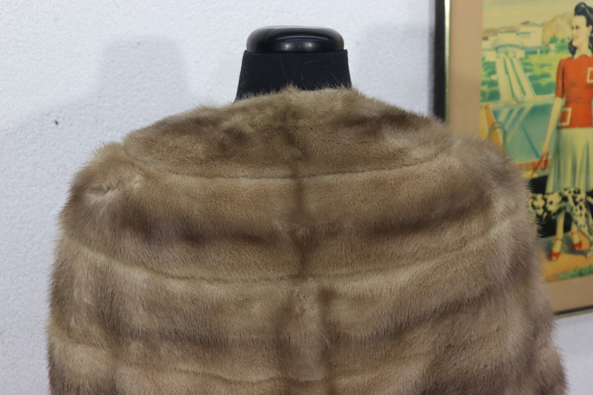 Gorgeous vintage mink fur stole / wrap in a beautiful warm tan/brown tone. Super soft plush fur with elegant drape and classic evening wear silhouette. Perfect for formal events, holiday parties, vintage weddings, period costume styling, theater, or photo/film wardrobe.