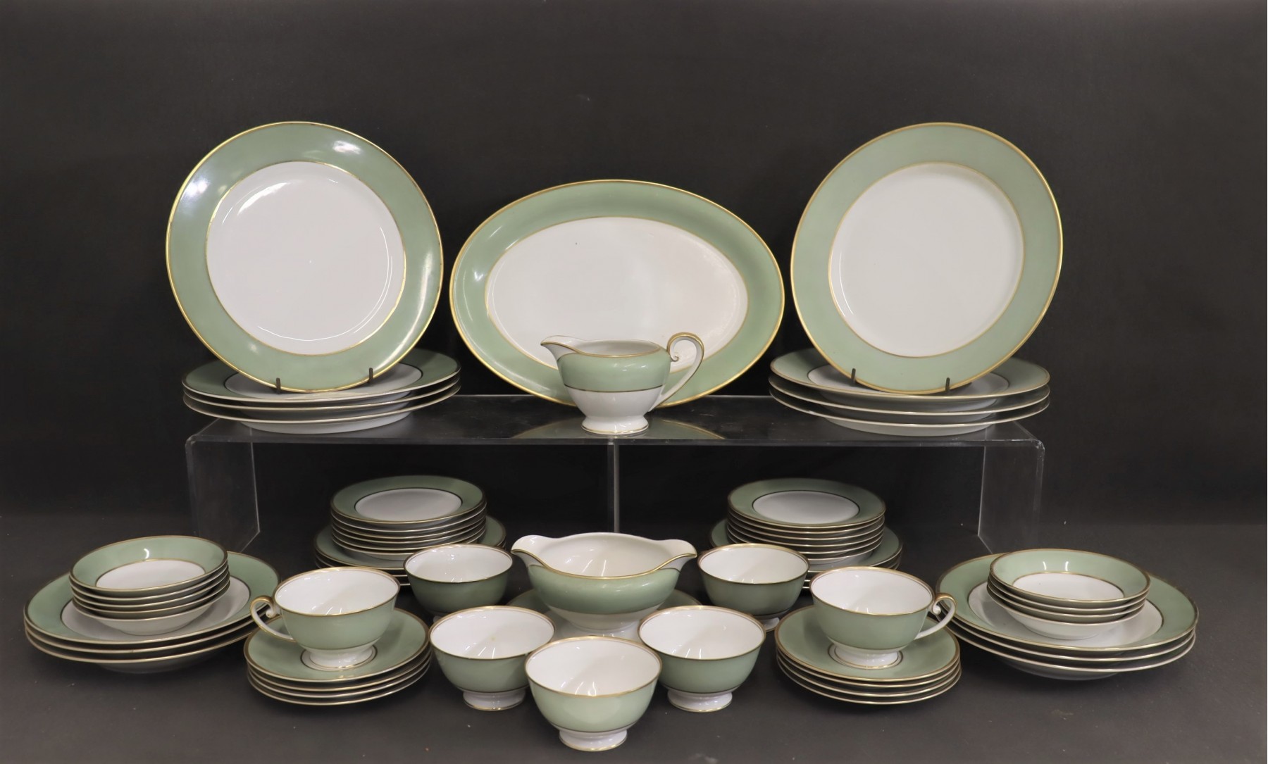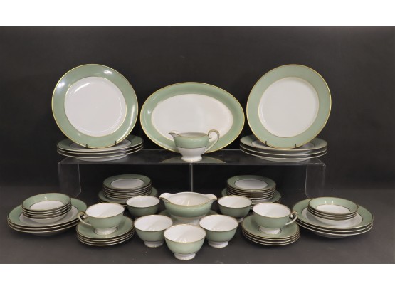 Vintage Mint Moss Green & Gold Porcelain Dinnerware (partial) P.T. Bavaria Tirschenreuth Pasco