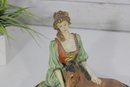 The figurine captures a peaceful countryside scene, making it a lovely decorative accent for collectors of vintage figurines, equestrian décor, or romantic Victorian-style displays.