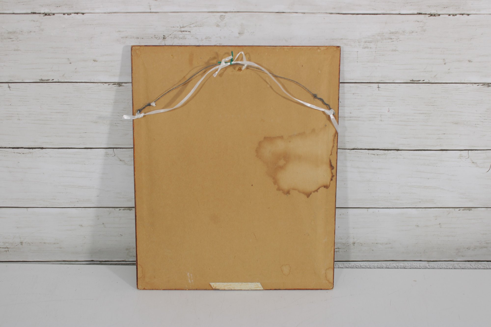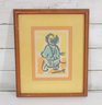 The artwork is presented in a warm-toned wood frame with layered matting that complements the colors of the print. Overall framed dimensions are approximately 12.5" x 10".