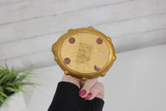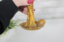 Crafted in molded resin, the piece has a striking metallic gold appearance with contrasting lighter accents, giving it a dramatic and decorative presence. Perfect as a statement accent for vintage, Hollywood Regency, or eclectic décor styles.