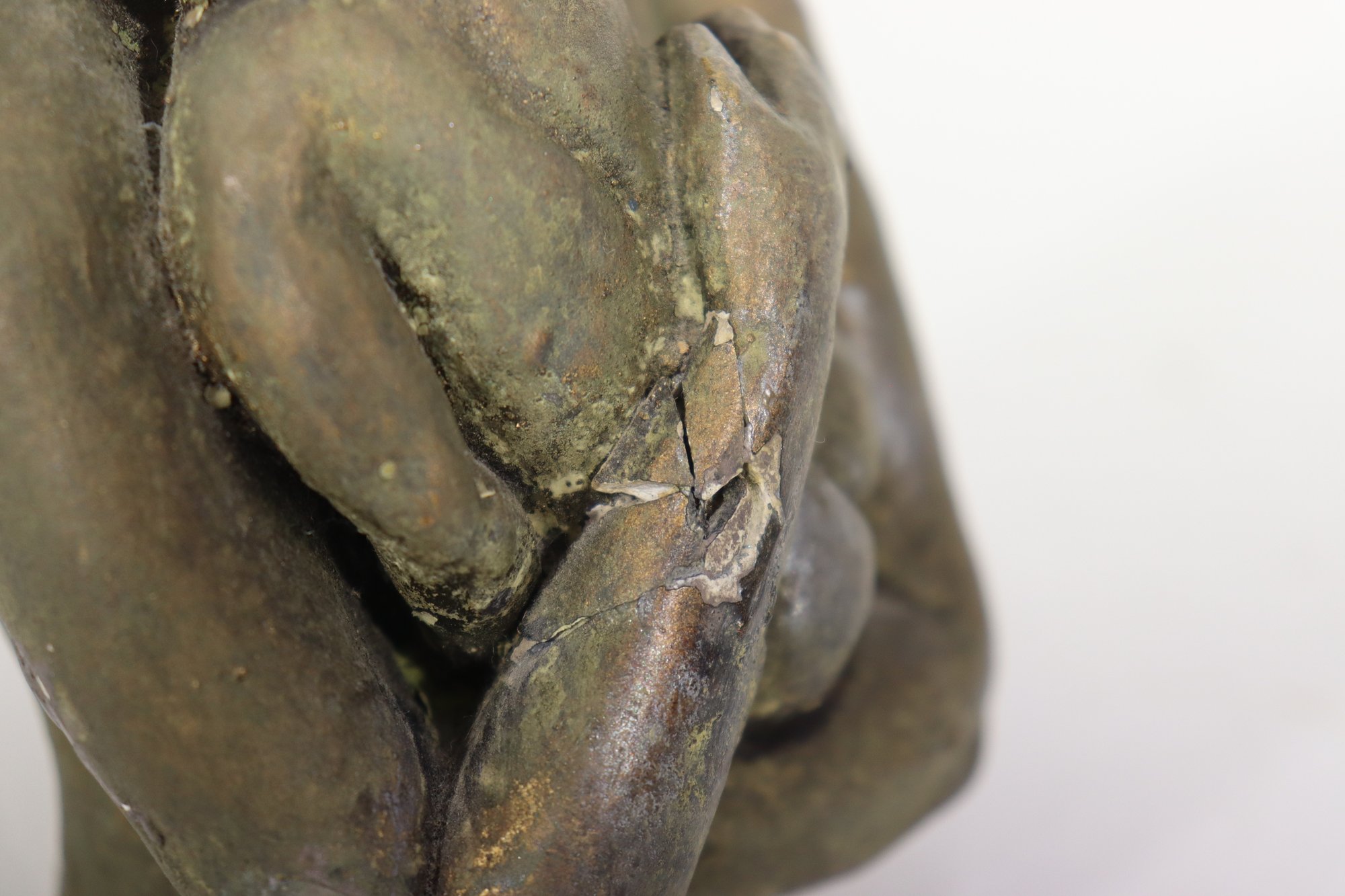 This statue shows some age-related wear and surface chips (see photos), particularly around the hands and face, which lend it a sense of authenticity and age. Despite these imperfections, it remains a moving and beautiful representation of love and protection.
