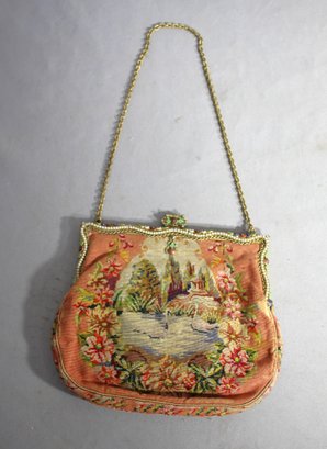 Vintage Needlepoint Handbag With Enamel And Pearl Clasp