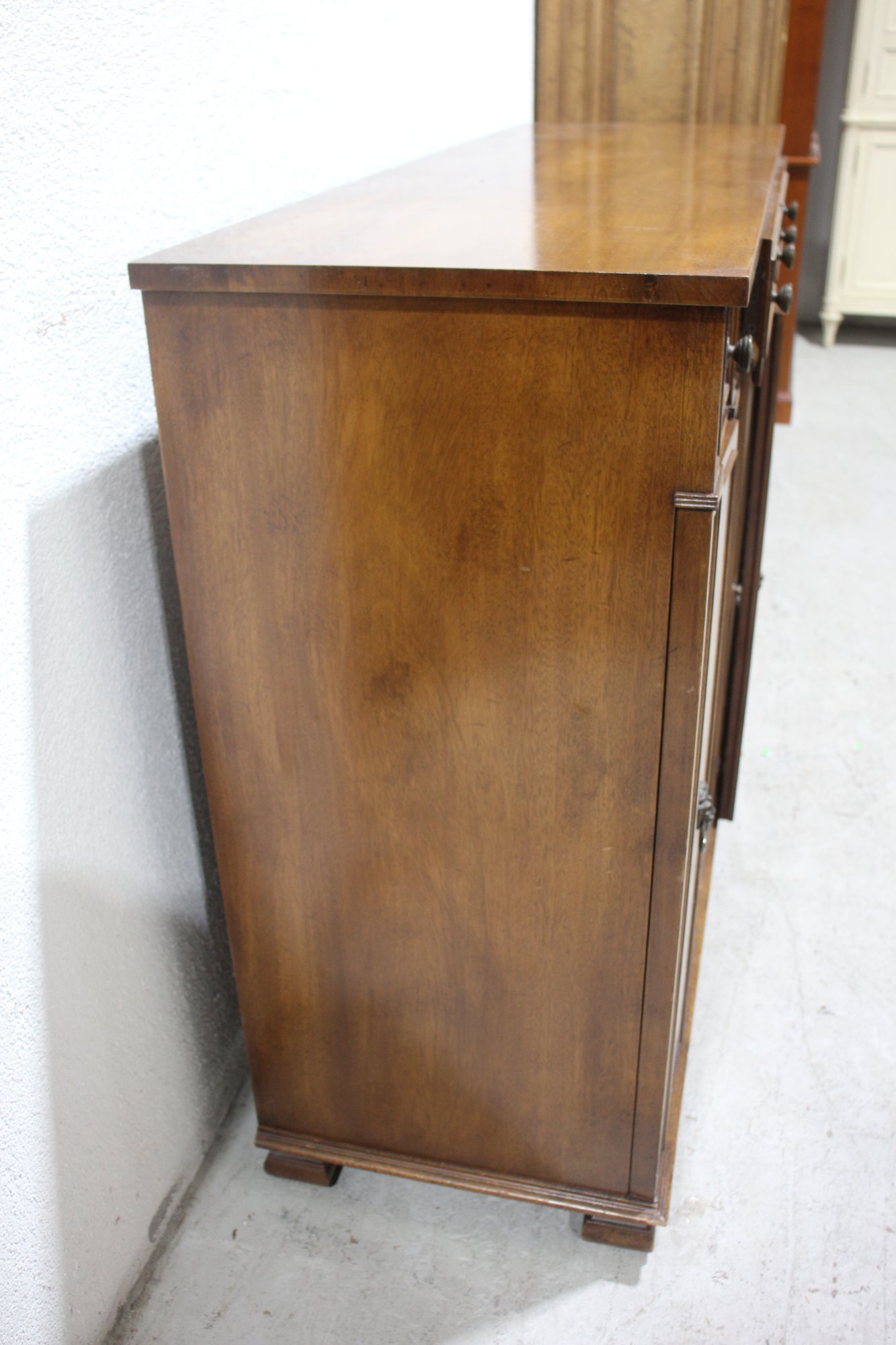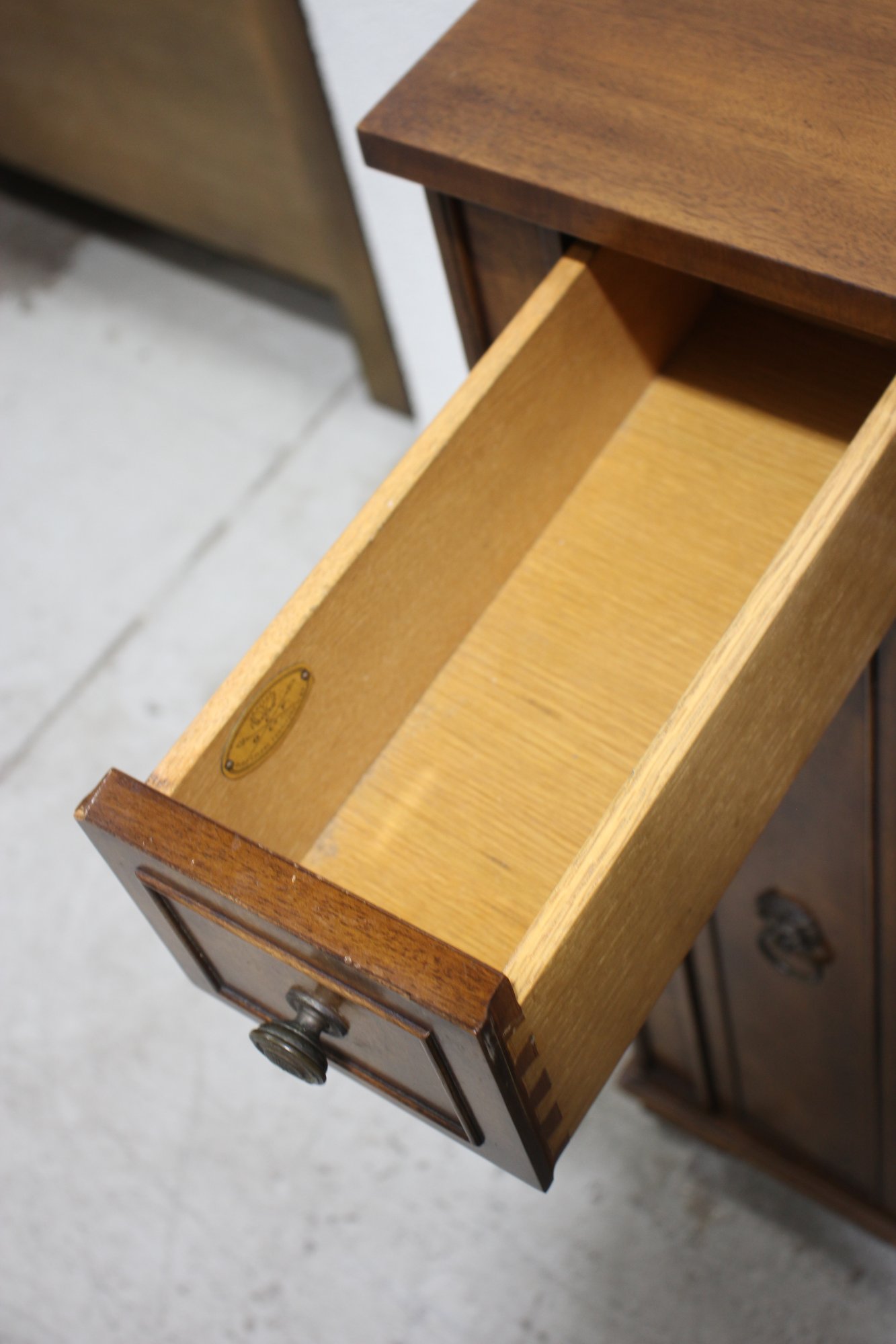 Two pull-out top drawers with vintage brass pulls