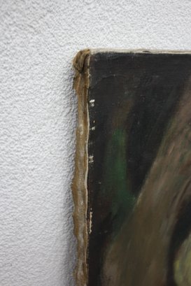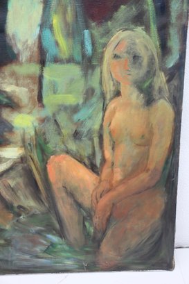 Vintage Oil Painting on Canvas - Abstract Nude in Forest Scene.