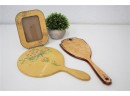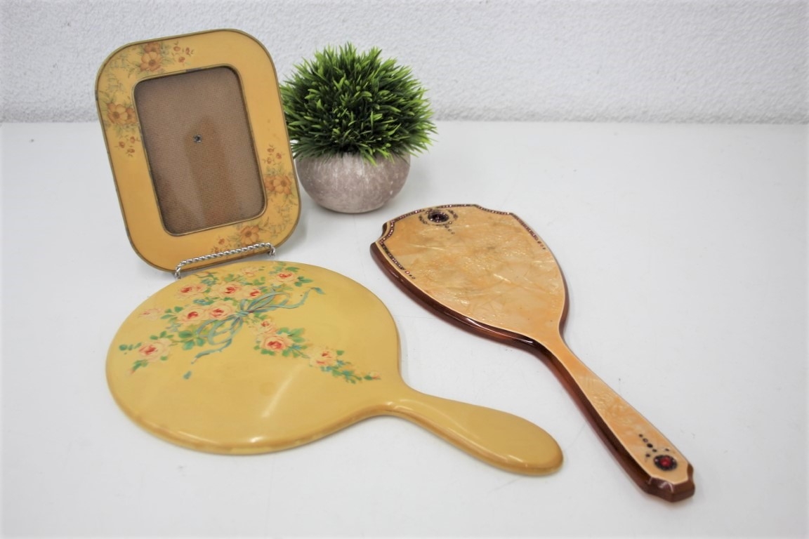 Vintage Orange Resin And Rhinestone Hand Mirrors And Photo Frame