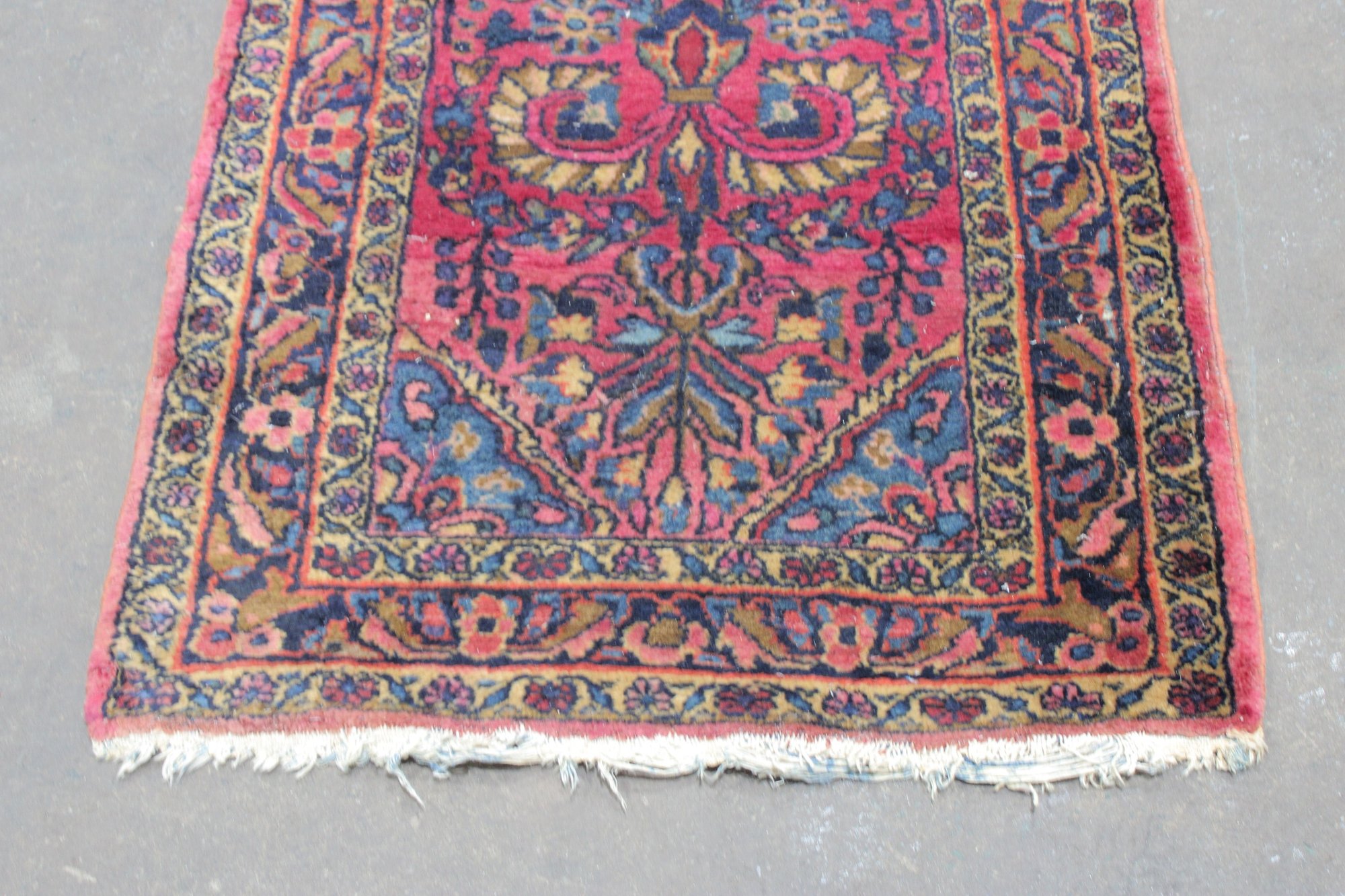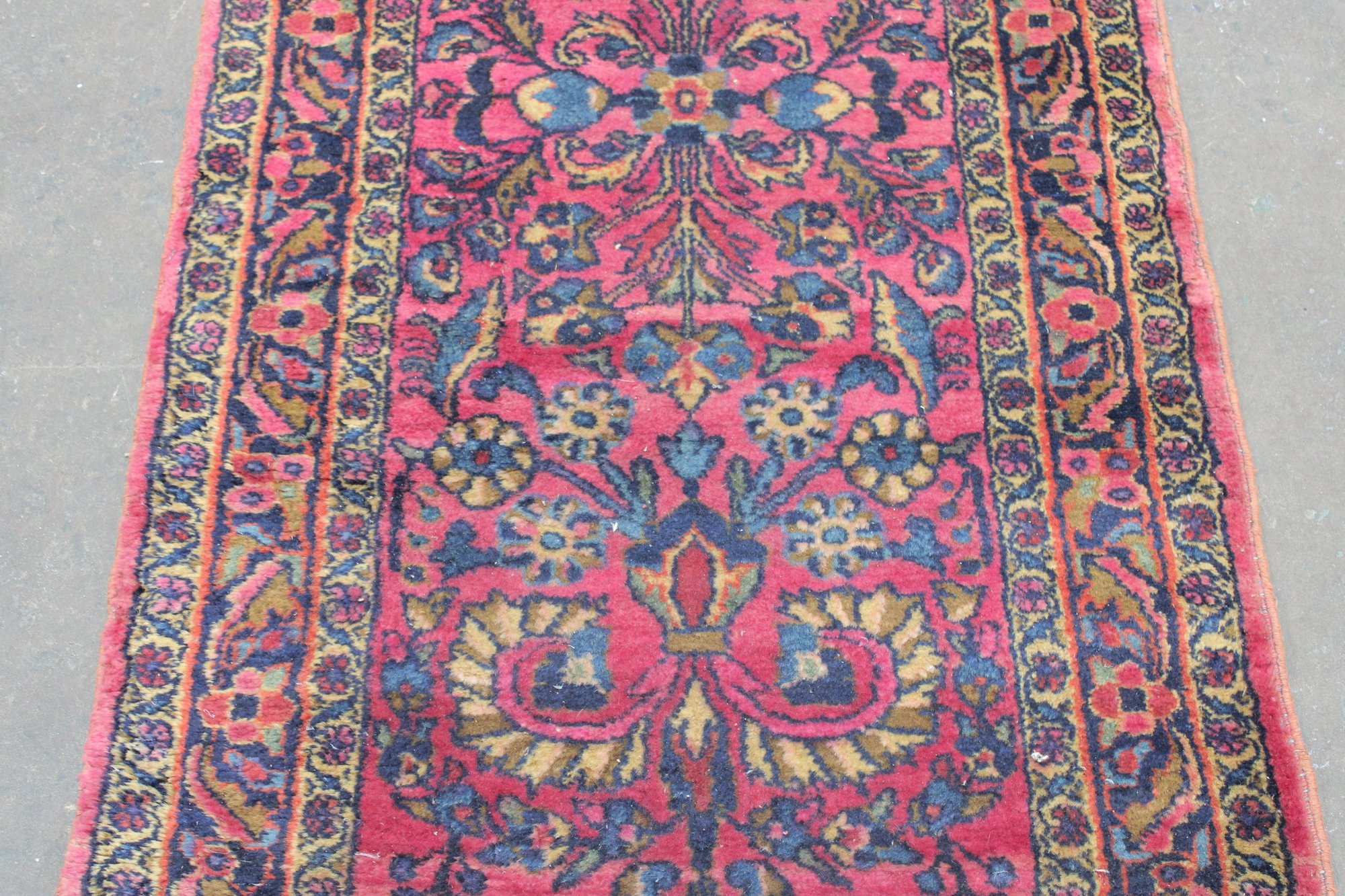 The vibrant color palette adds warmth and character, while the elongated runner format makes it a versatile accent for both vintage and contemporary interiors. Detailed pattern work throughout the field and border highlights the timeless appeal of traditional oriental-inspired textiles.