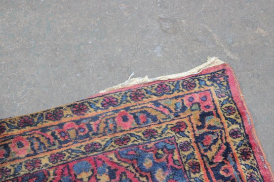 vintage oriental style runner rug showcasing a bold floral medallion pattern in rich red, blue, and gold tones. The intricate design features stylized blossoms, scrolling vines, and layered geometric borders that give the piece a classic traditional look ideal for hallways, entryways, or narrow living spaces.
