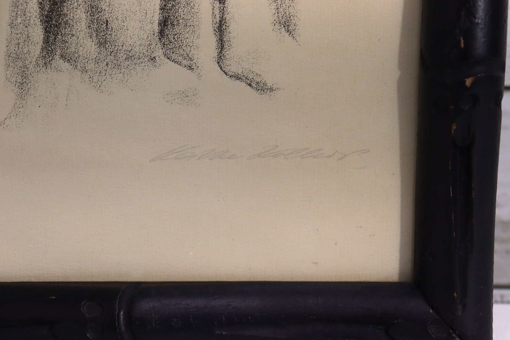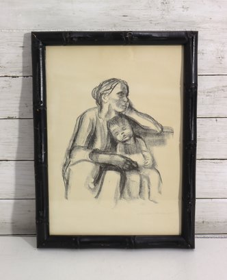 Lovely vintage portrait style artwork done in pencil/charcoal featuring a tender seated pose of a mother with her child resting against her. Beautiful emotional expression and soft shading throughout. The piece is artist signed at the bottom (see close-up photo).