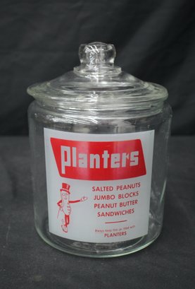 Vintage Planters Peanuts Glass Jar W/ Lid 10.5" X 7"