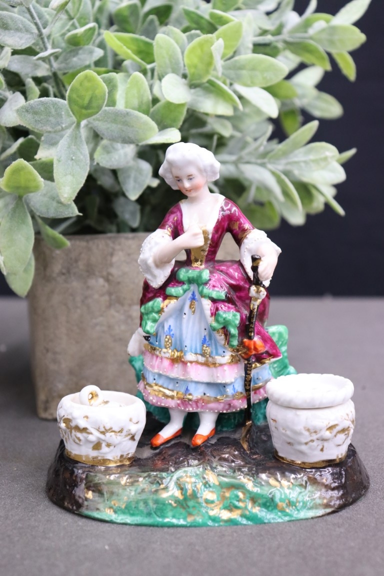Vintage Porcelain Figurine Court Lady With Walking Stick