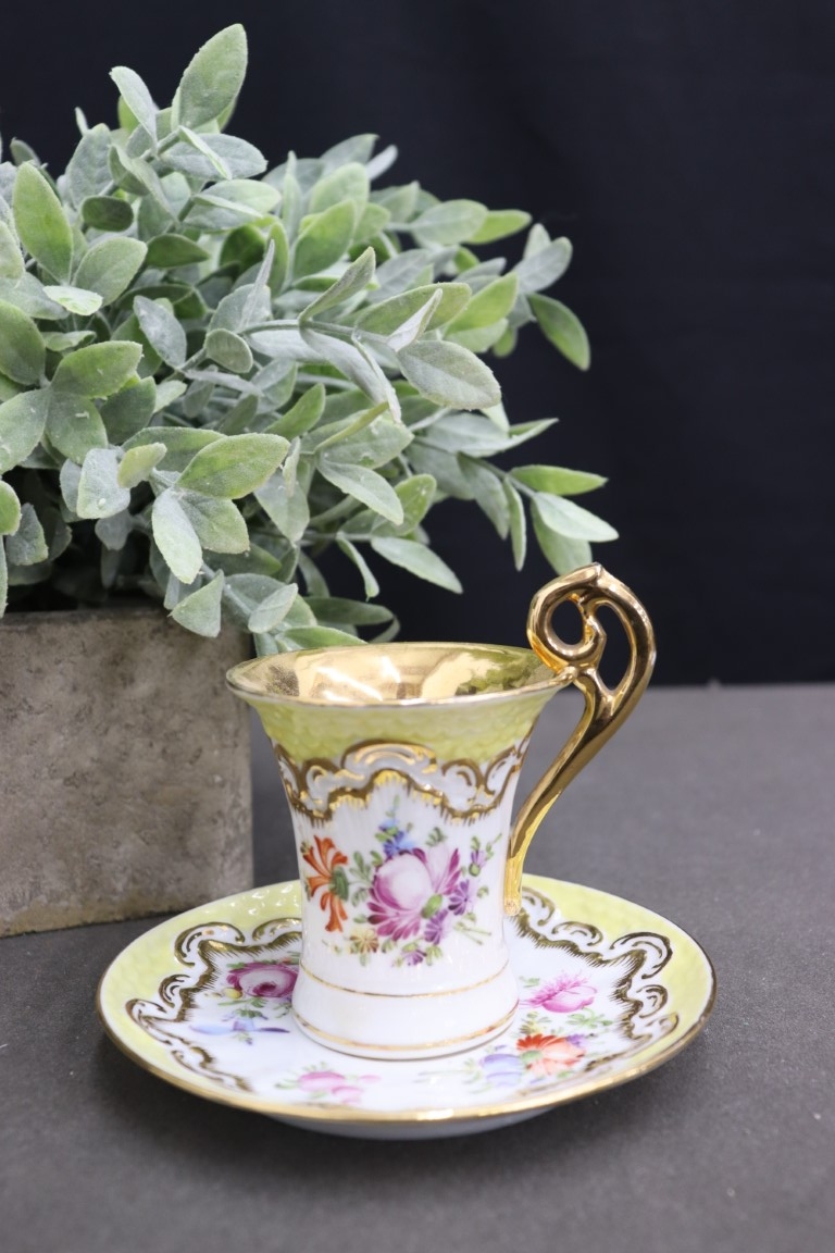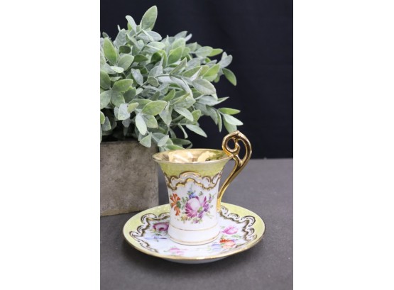 Vintage Porcelain Gilt Gold Luster And Hand Painted Demi-Tasse Cup & Saucer