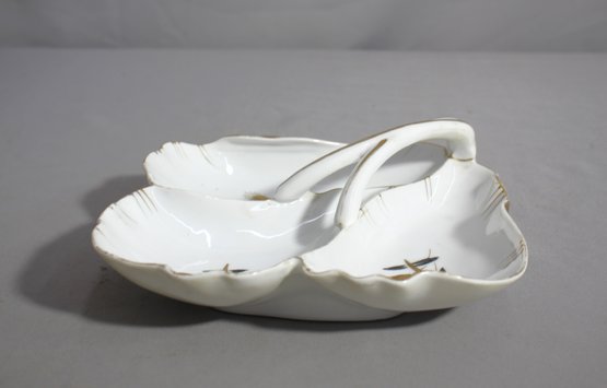 Add a touch of elegance to your tableware collection with this charming vintage porcelain nappy dish, adorned with a delicate wheat pattern. The dish features a beautifully crafted handle and scalloped edges, enhancing its vintage appeal. The wheat pattern, subtle and refined, adds a rustic yet sophisticated touch, making this dish perfect for serving small snacks, nuts, or candies. Its classic white color ensures it will complement any decor style