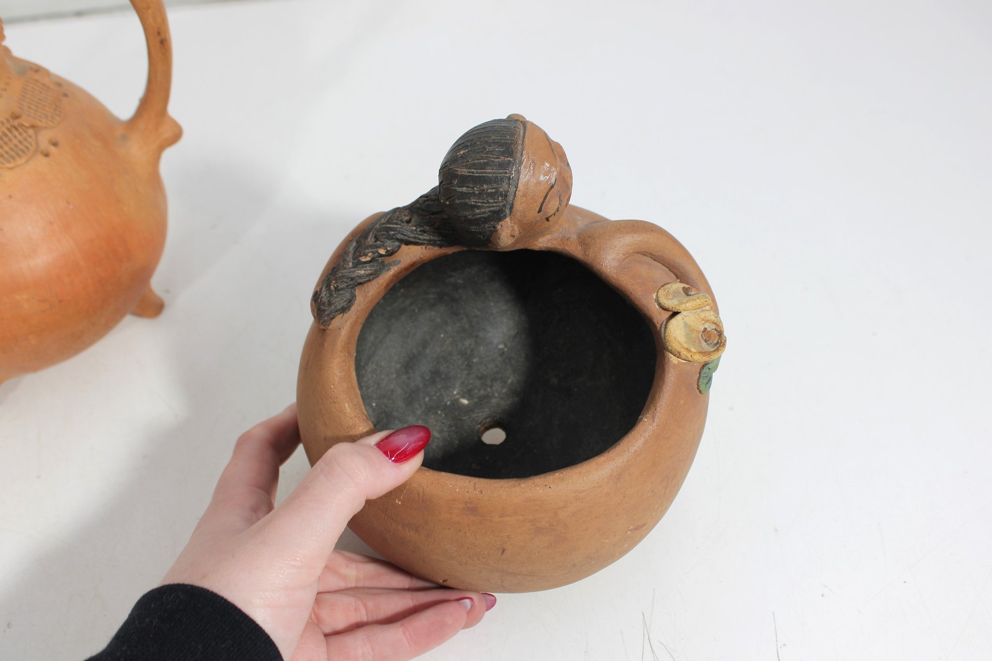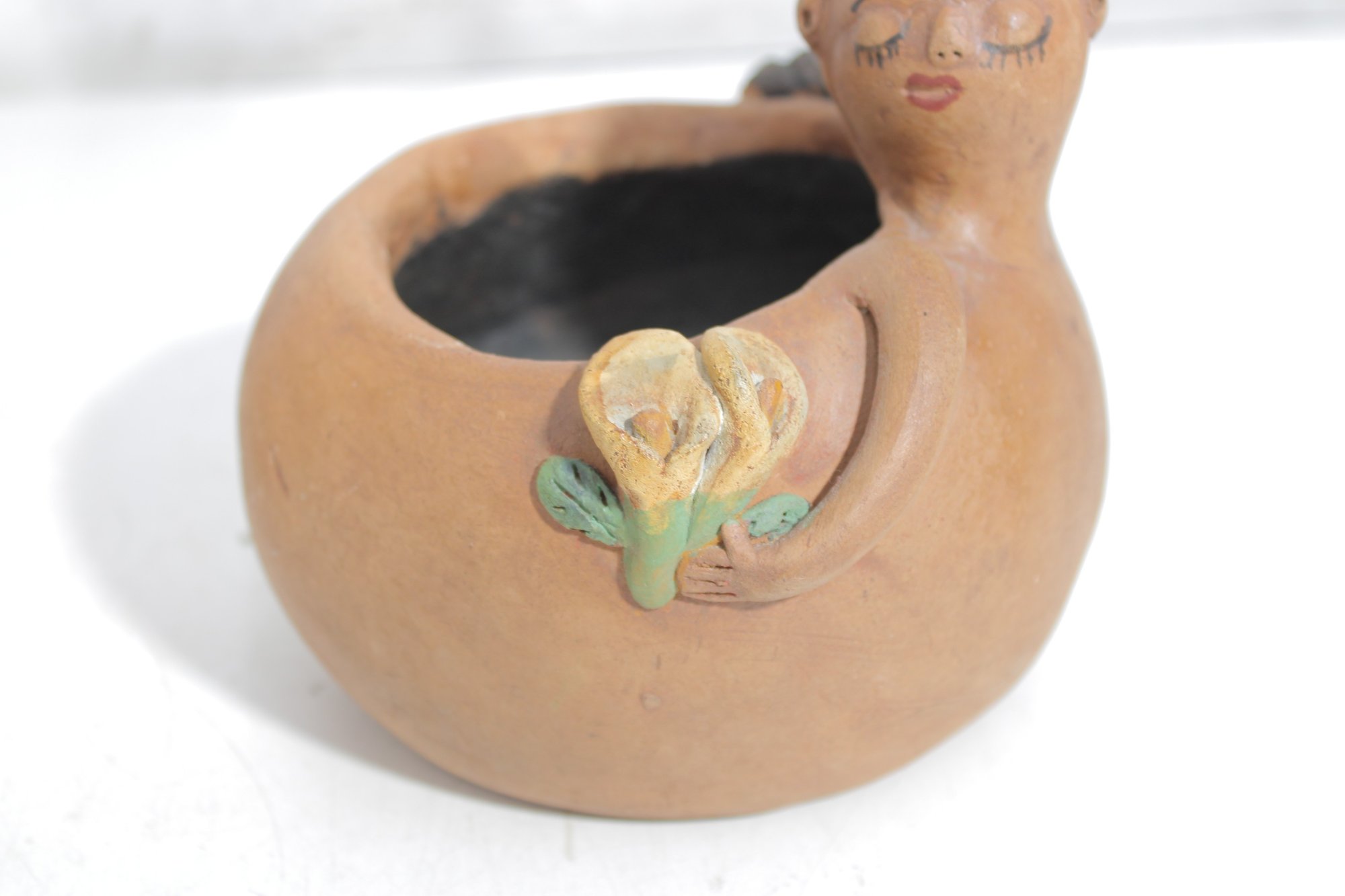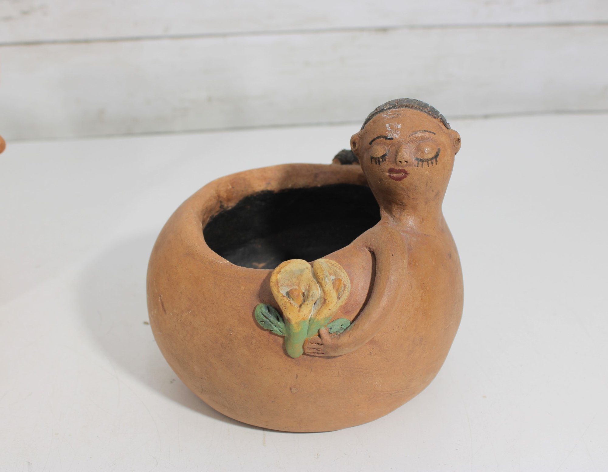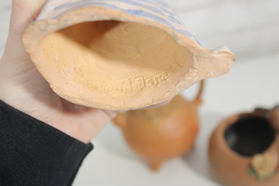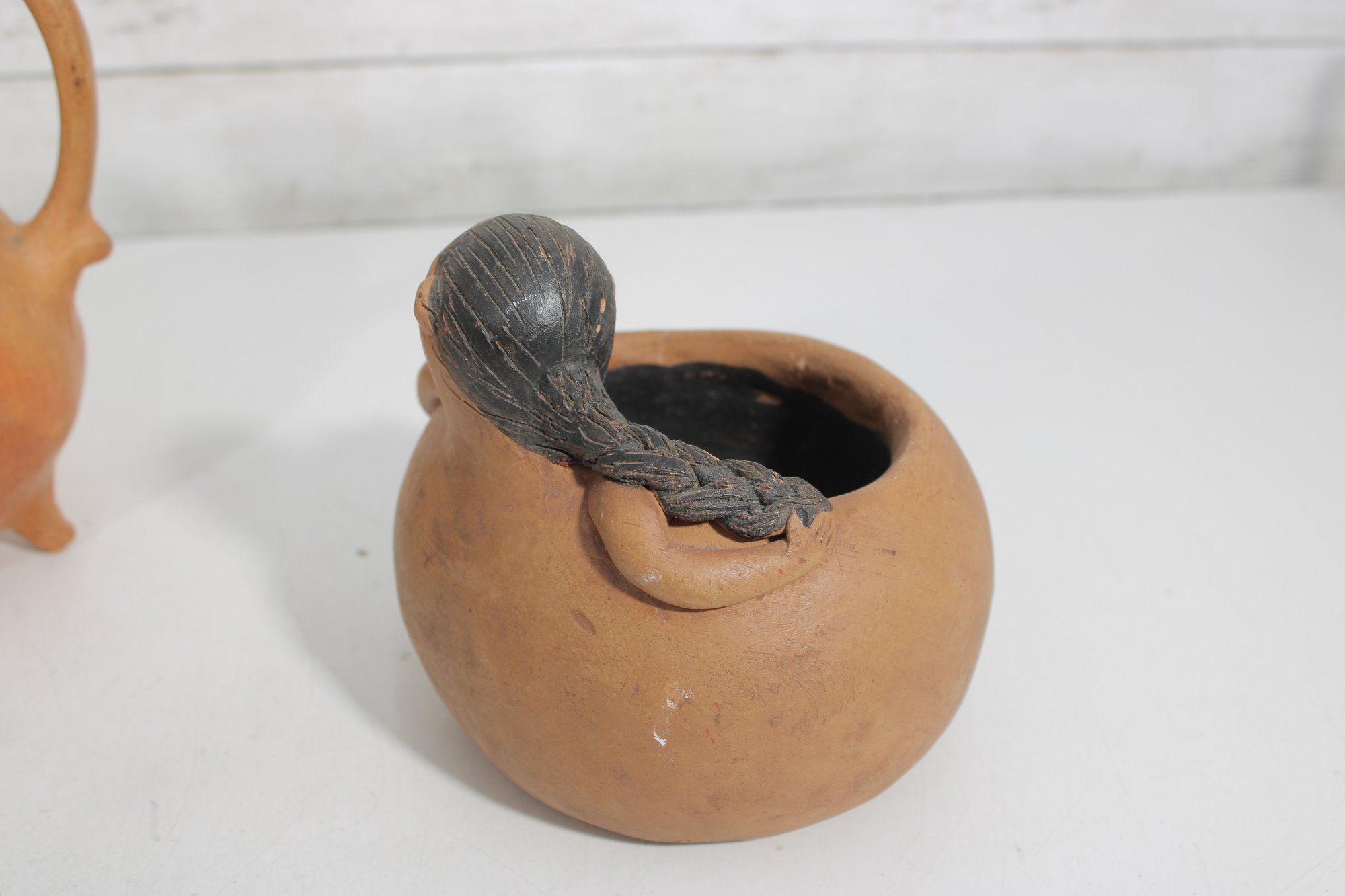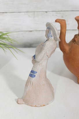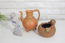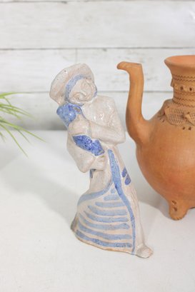 Unique assorted vintage décor lot featuring three distinctive pieces of pottery and figurative art, each with its own character and style.