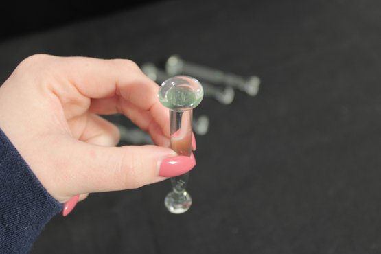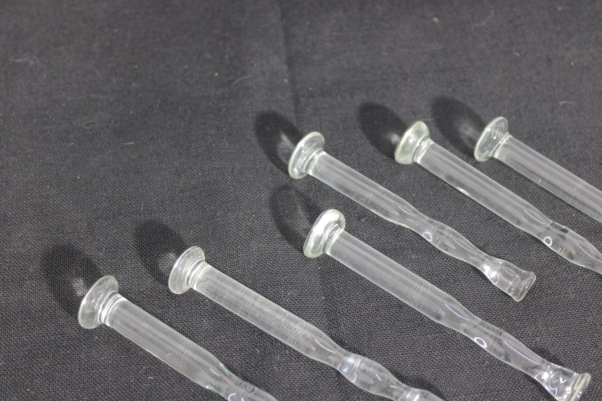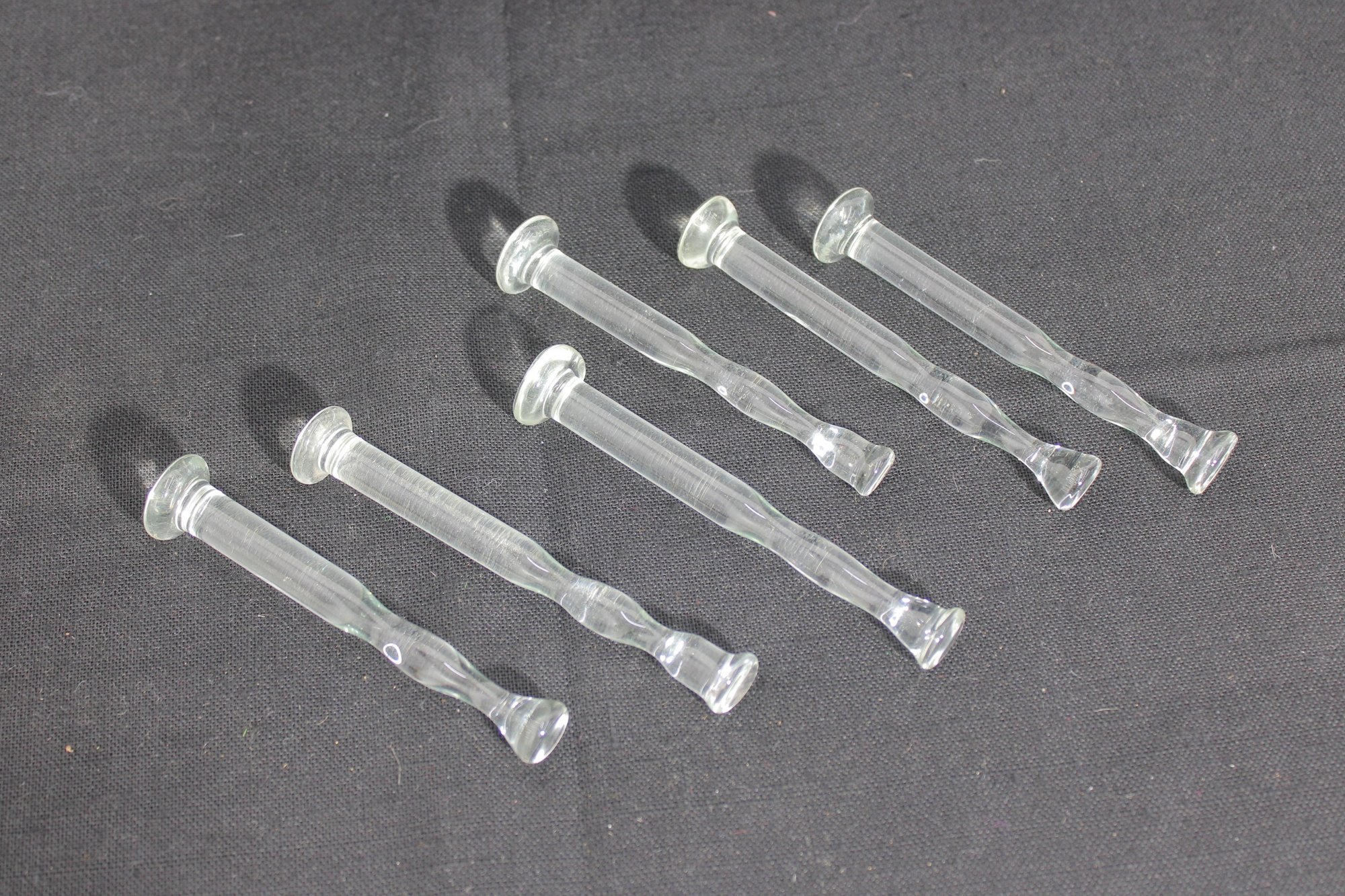 Vintage Pressed Glass Knife Rests Set Of 6 Clear Molded Tableware 4" Length