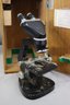 note: microscope is 14"H; wood carry box is 18.5H X 9.75D X 10.75"L
