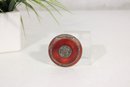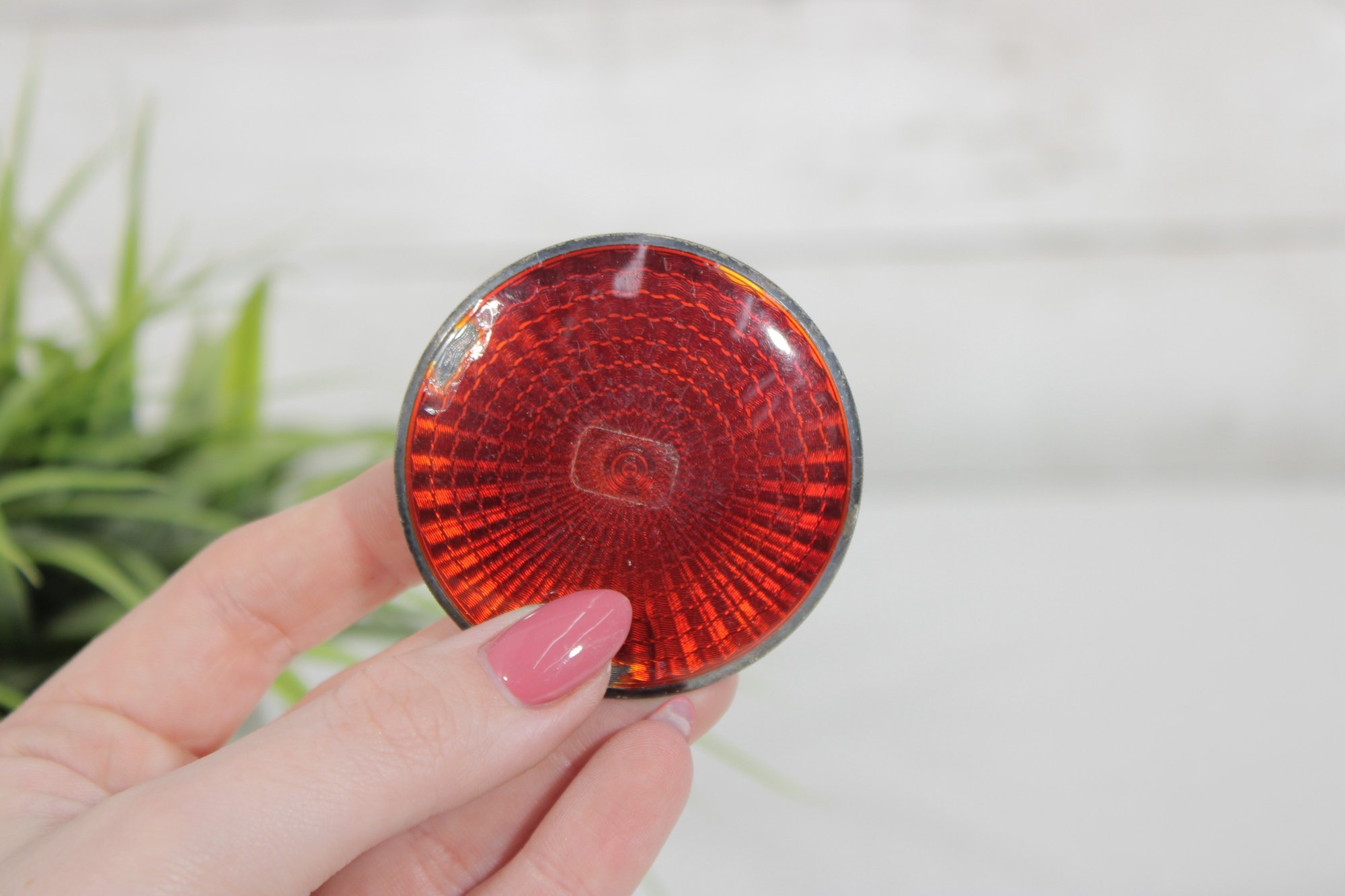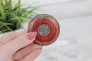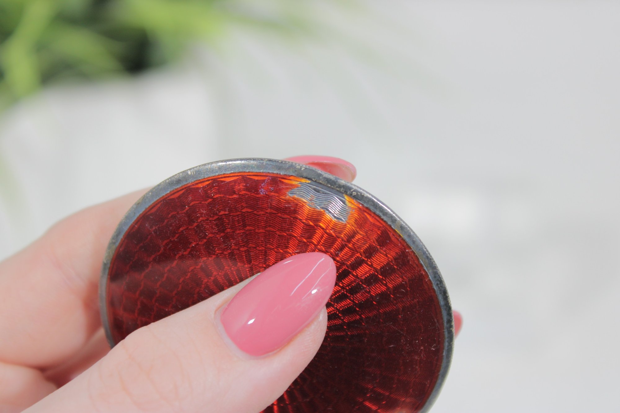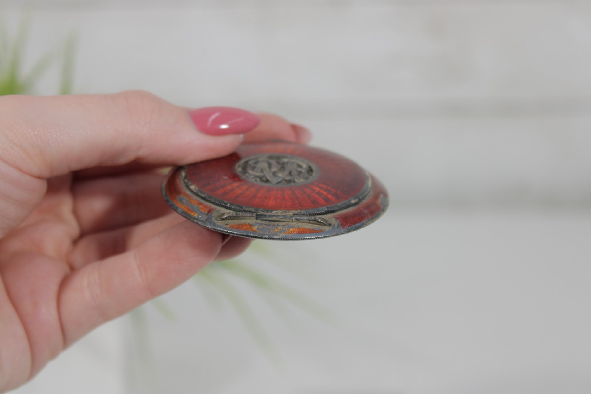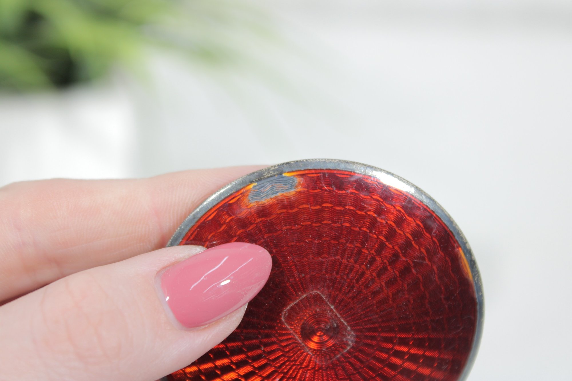 The rich red enamel and intricate pattern are classic features of early to mid-20th century vanity accessories, making this piece both stylish and highly collectible.