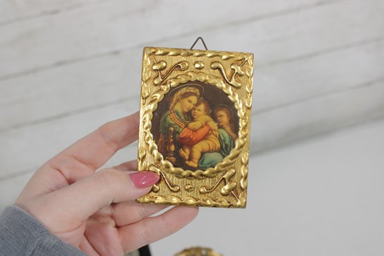 a charming mixed group lot of vintage religious-themed décor and art pieces. This collection features a variety of small devotional and decorative items, each with unique character and old-world appeal.