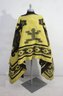 This vintage Andean wool poncho is a striking, high-quality textile featuring an intricate tribal design with stylized animal motifs and geometric patterns. The reversible design offers two stunning color variations: golden yellow with black accents and black with golden yellow accents. Crafted from soft, durable wool, this piece is both functional and collectible.