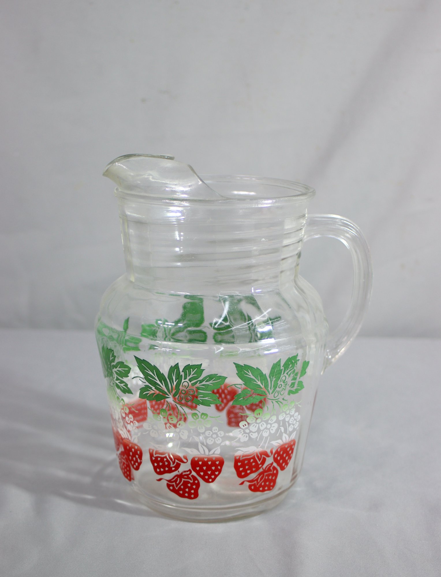 Vintage Ribbed Clear Glass Serving Pitcher With Strawberry Patch Pattern