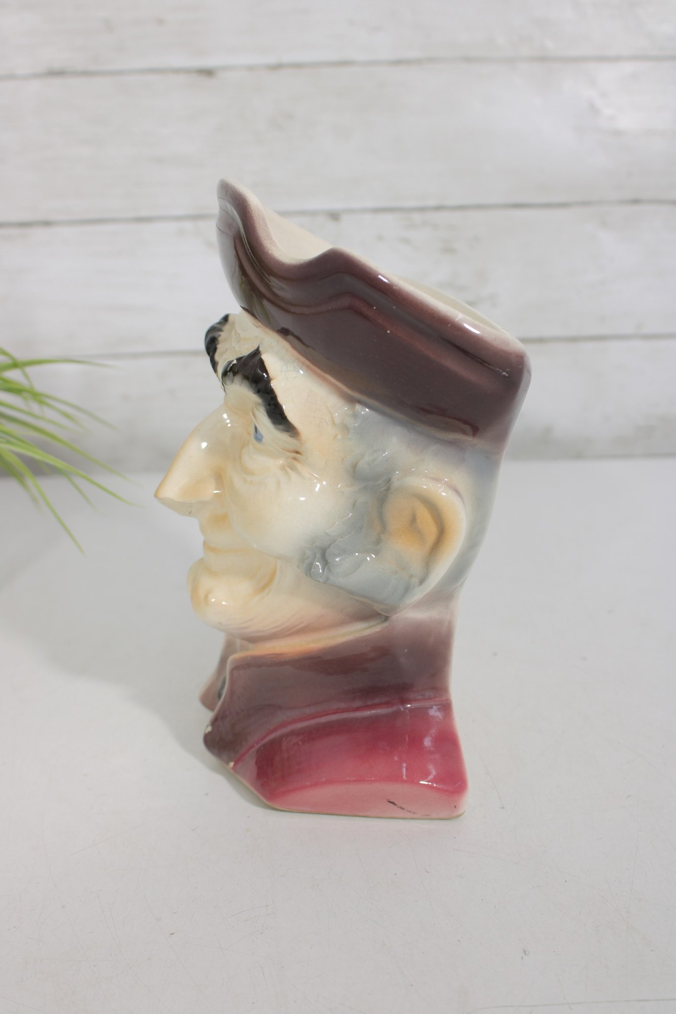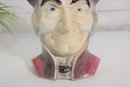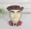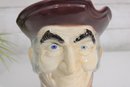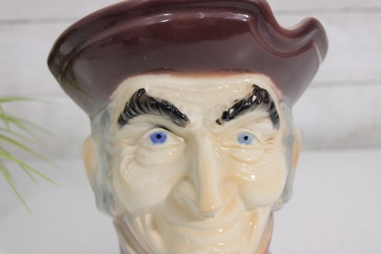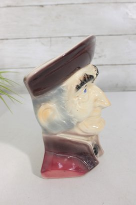Classic vintage Royal Copley figural wall pocket featuring an Old Colonial gentleman in a Toby-style head design. Measuring approximately 8 inches tall, this charming ceramic piece doubles as a wall pocket or small planter.