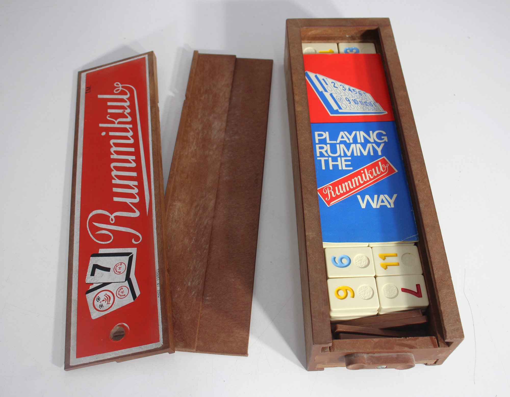 tep back in time with this vintage Rummikub game set, beautifully housed in its original wooden box with sliding lid and latch closure. This classic edition features: