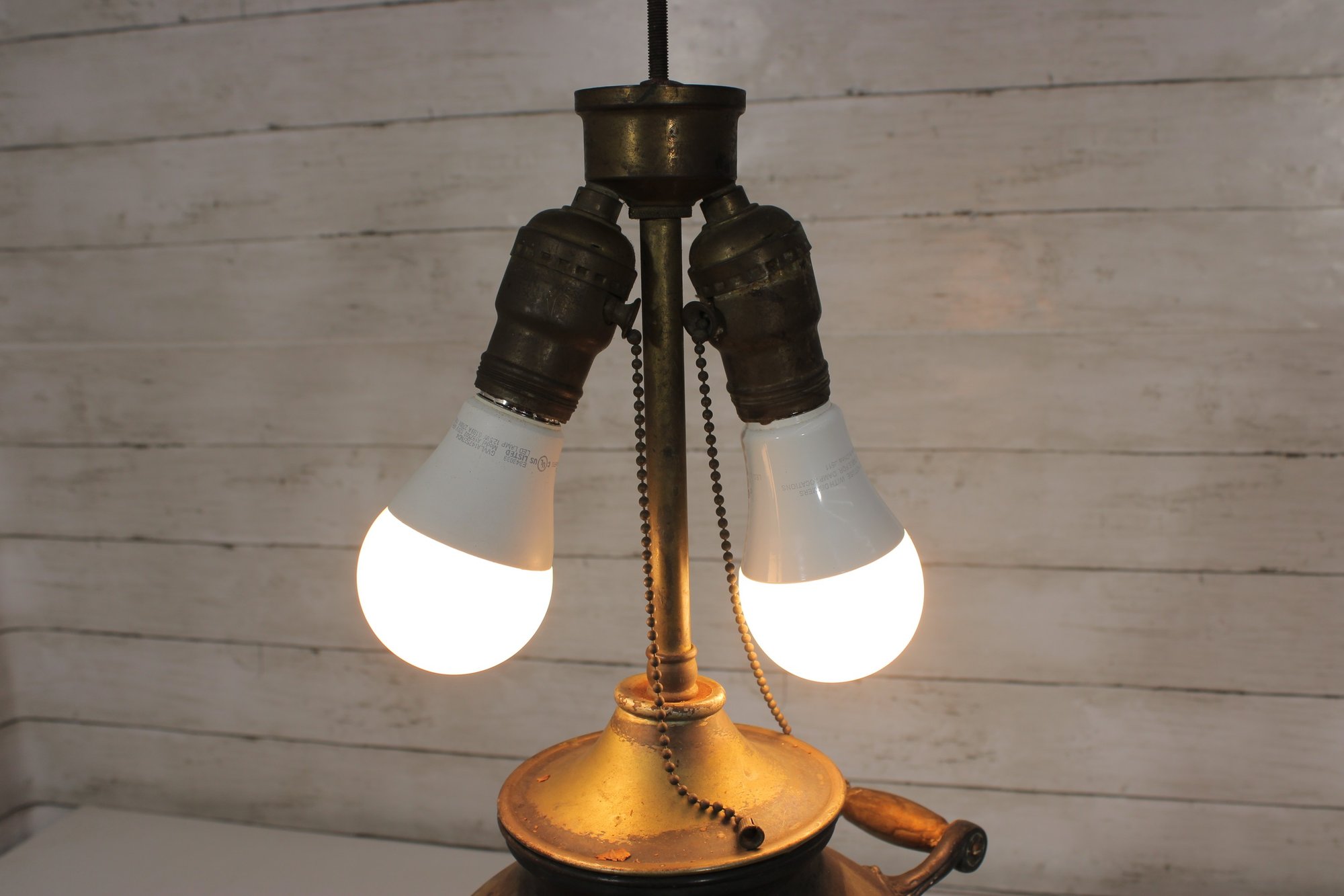 Standing approximately 24" high, this lamp includes dual pull-chain sockets that provide warm, balanced lighting. Its sculptural form makes it equally suitable as a statement décor piece even when not illuminated.
