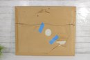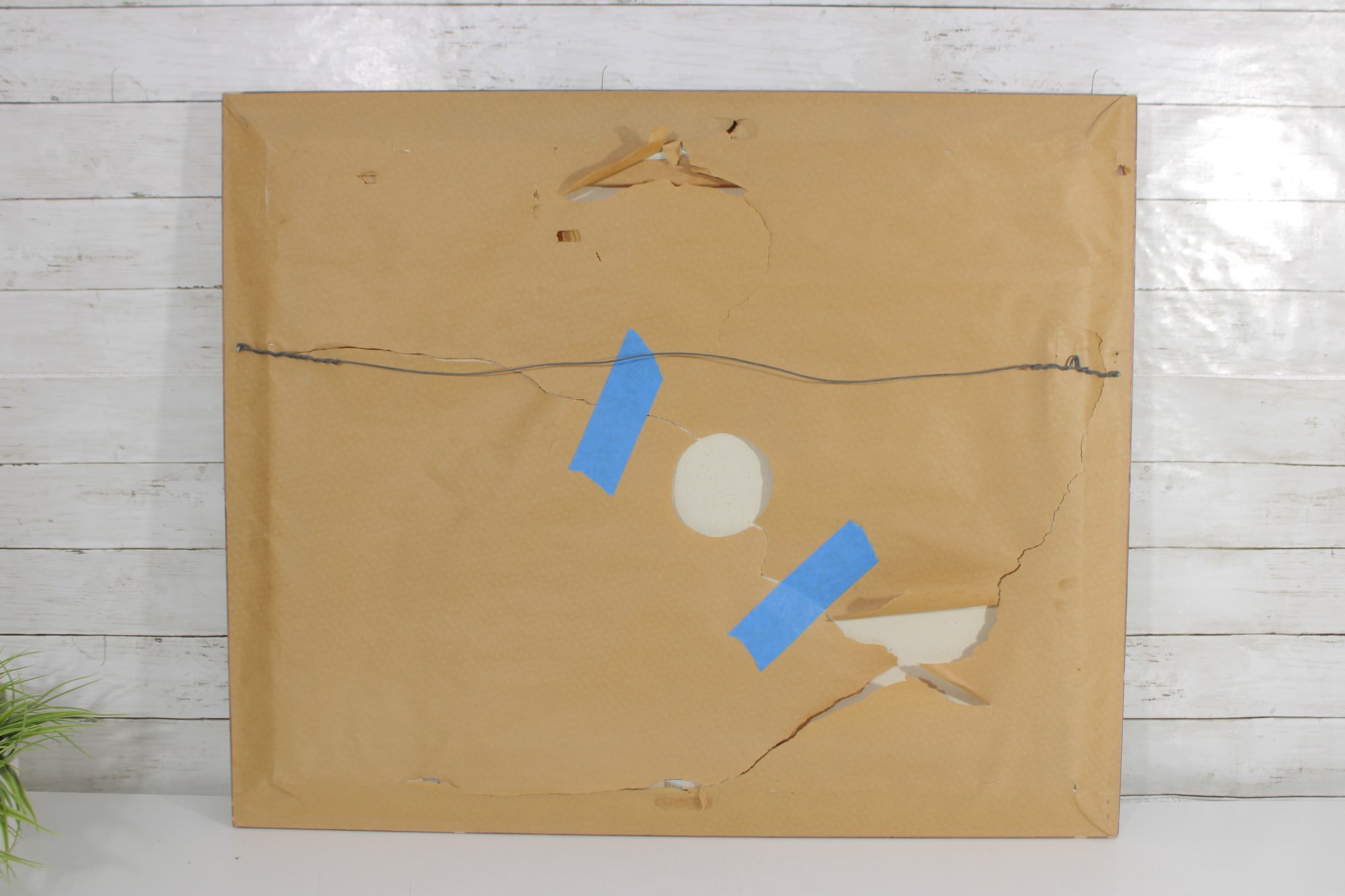 in good vintage condition with minor surface wear consistent with age. Frame shows some wear, including small scuffs and imperfections. The backing paper on the reverse has tears and tape repairs as shown