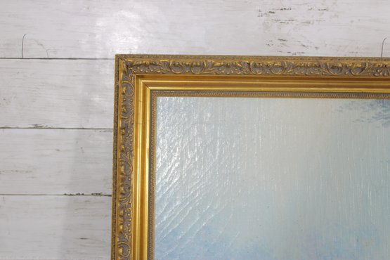 The piece is housed in an ornate gold-tone frame that complements the artwork nicely, making it ready for display in a variety of interiors.