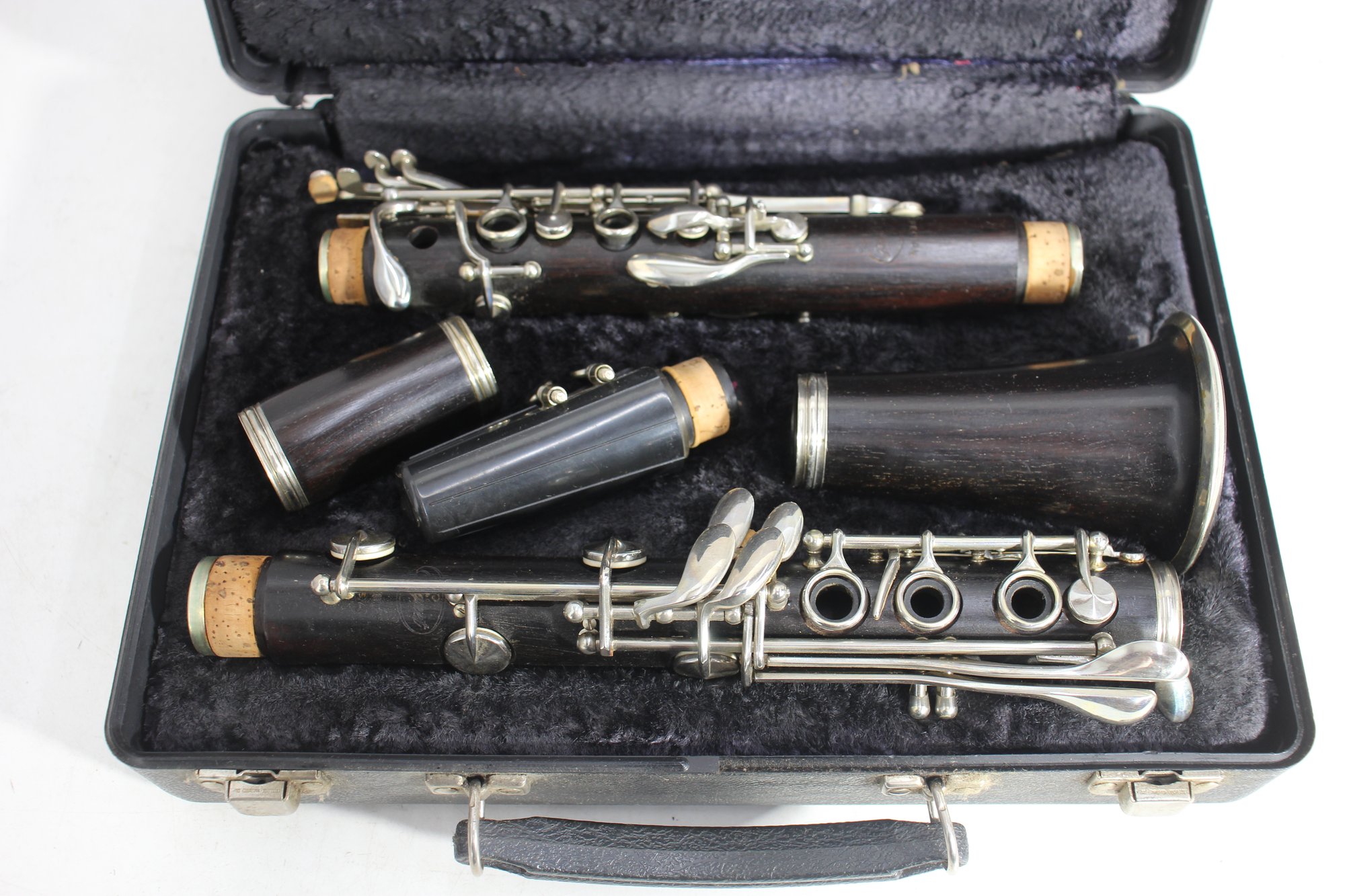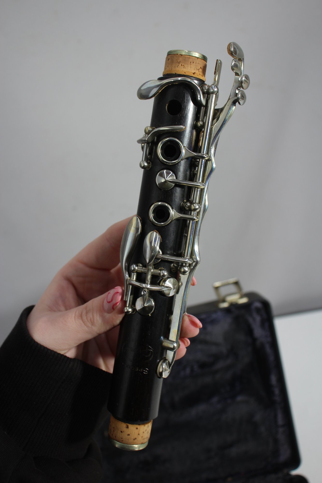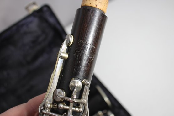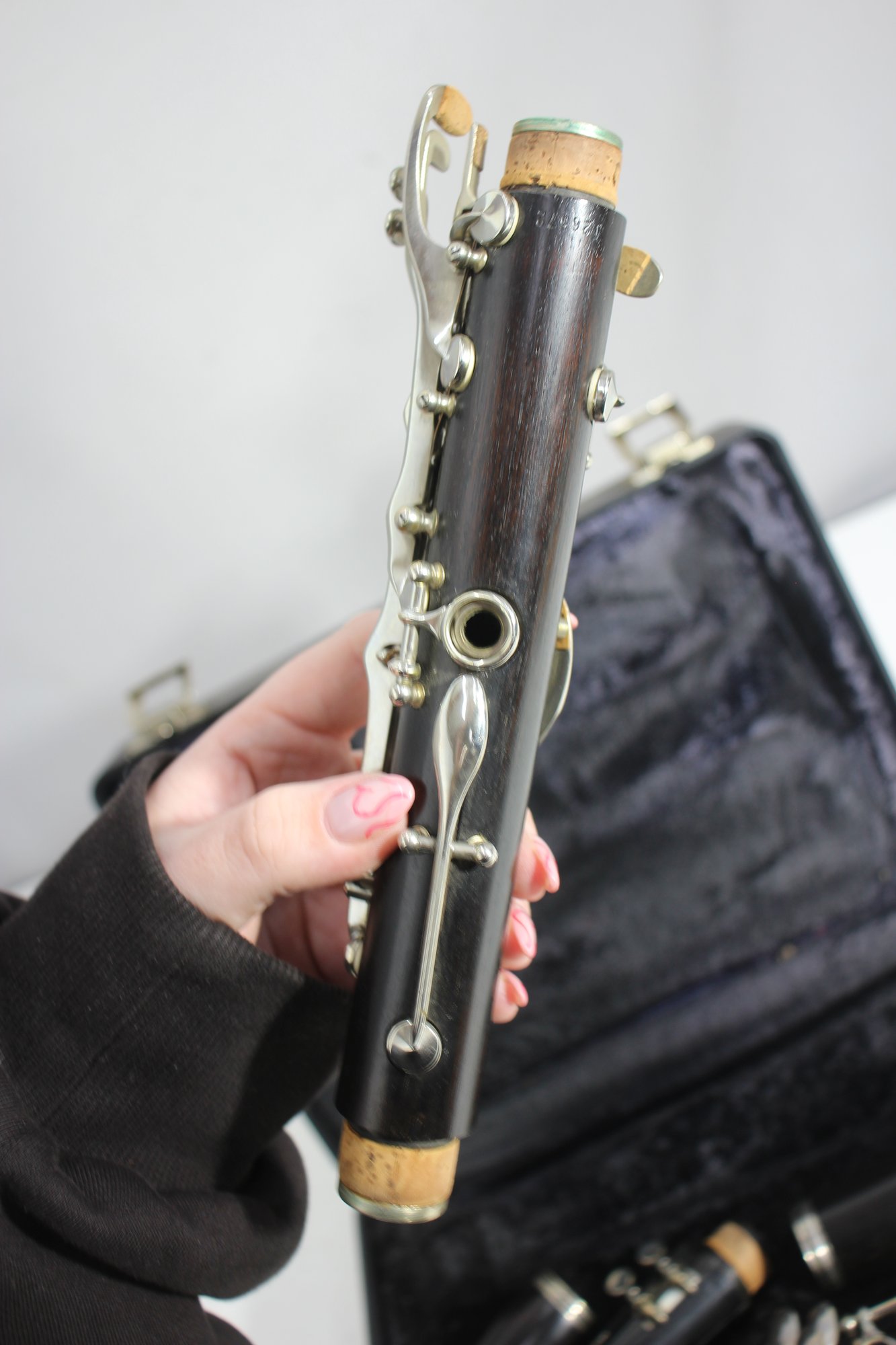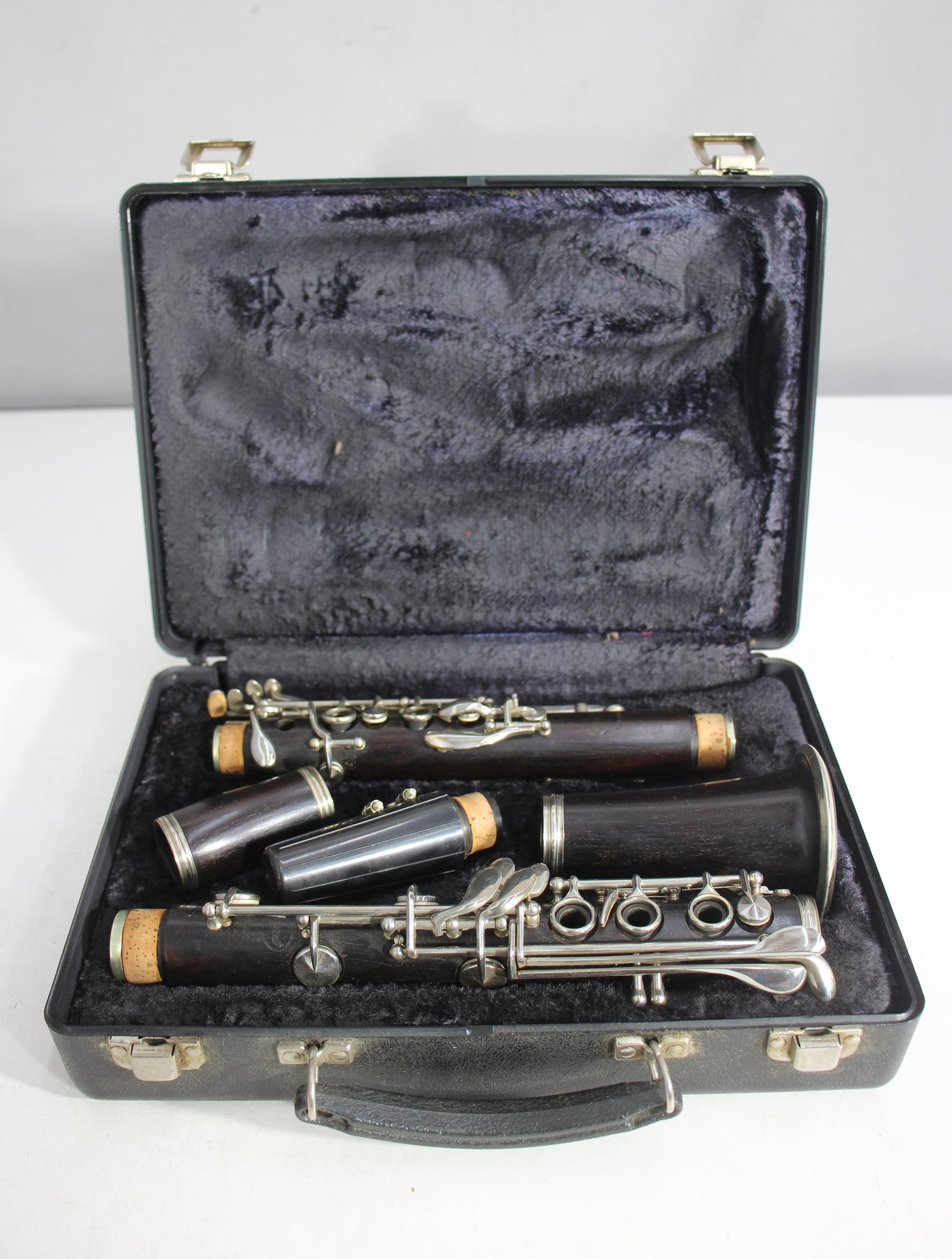 vintage Selmer clarinet complete with its original hard case by The Selmer Company. Known for their exceptional craftsmanship, Selmer instruments are highly regarded for their rich tone and reliable performance, making this a fantastic piece for musicians and collectors alike.