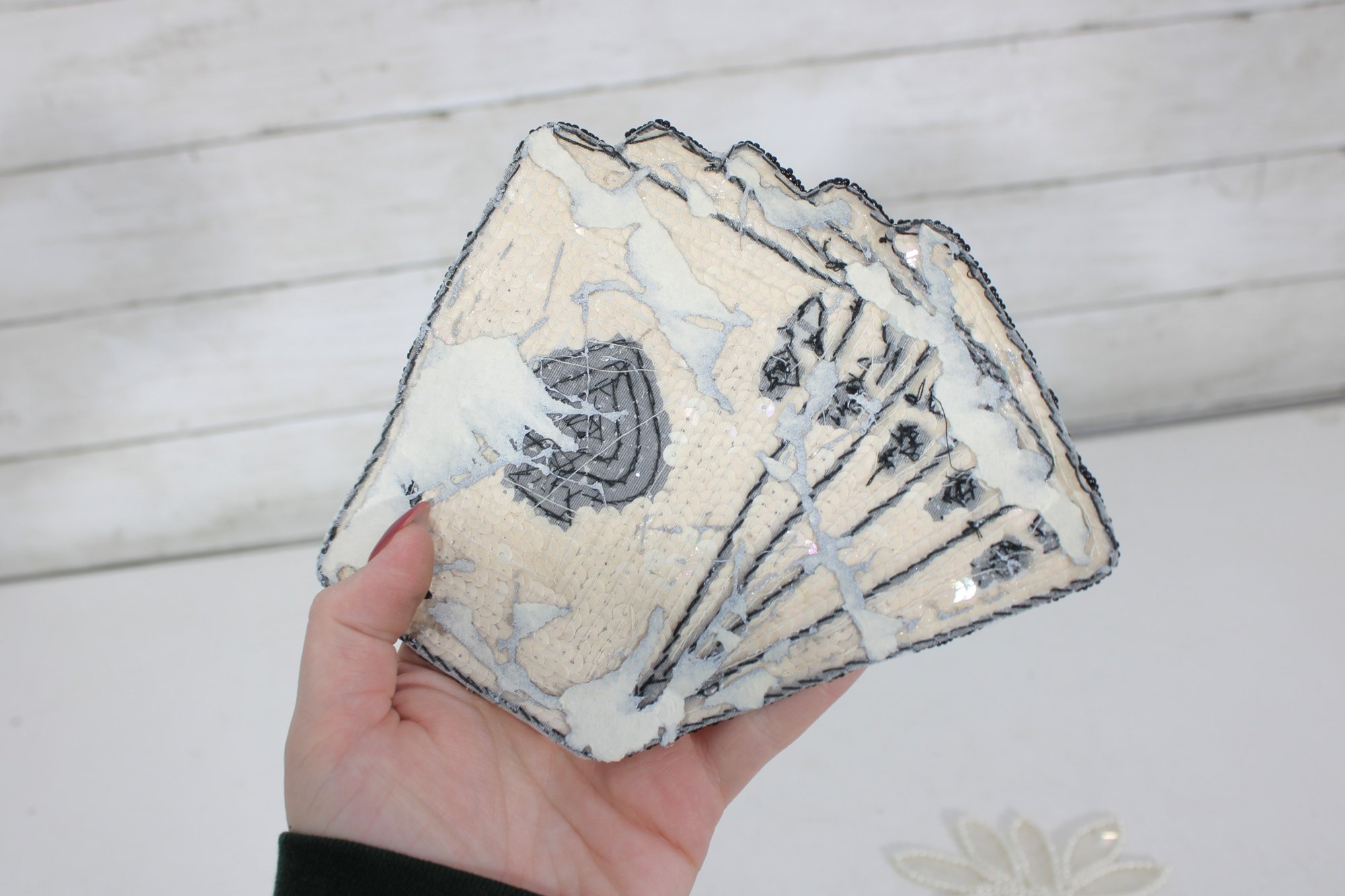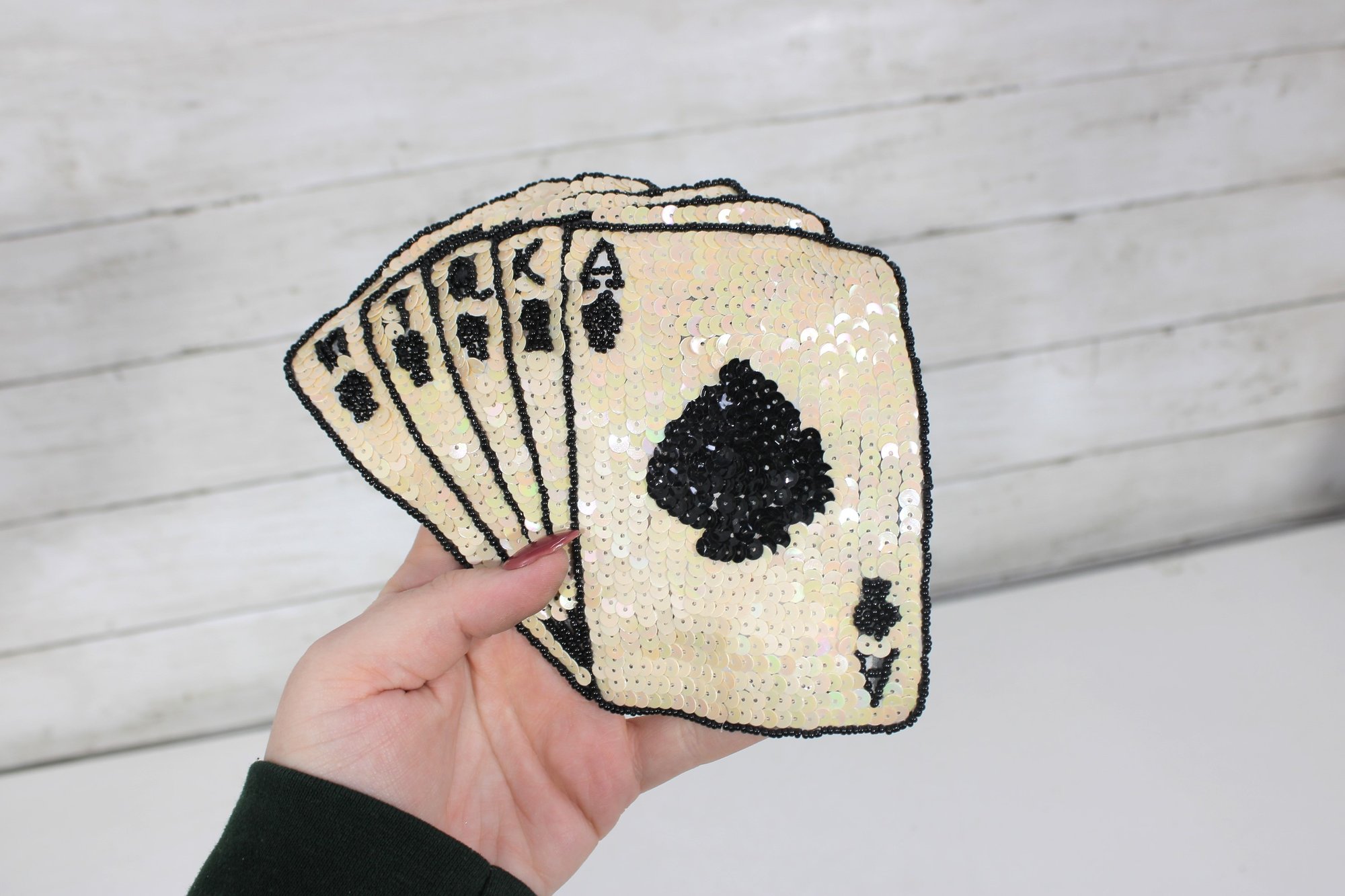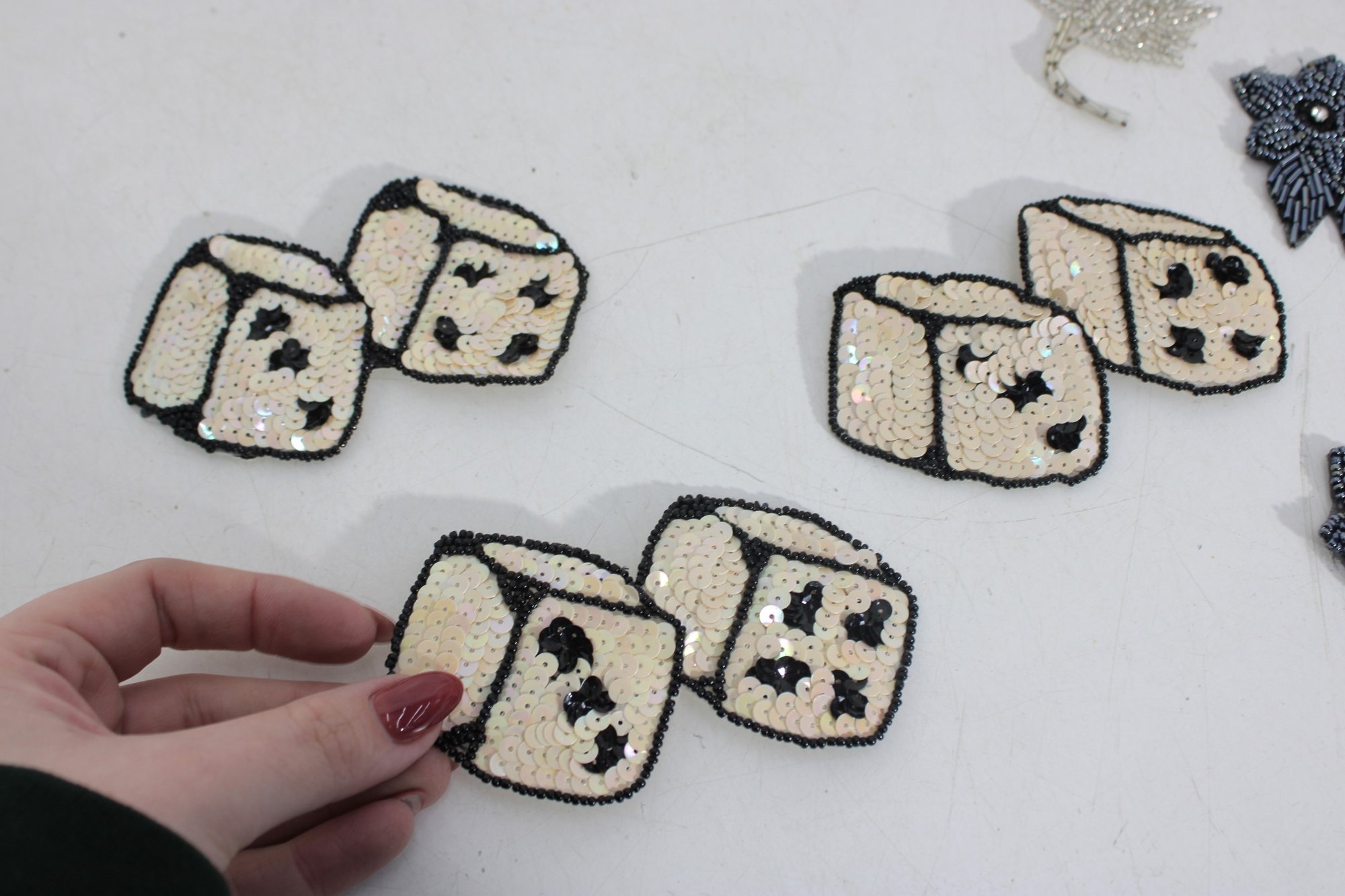 Unique vintage-inspired sequin and beaded appliquƩ patch collection featuring casino motifs and elegant floral designs. Perfect for customizing jackets, handbags, denim, costumes, or craft projects.