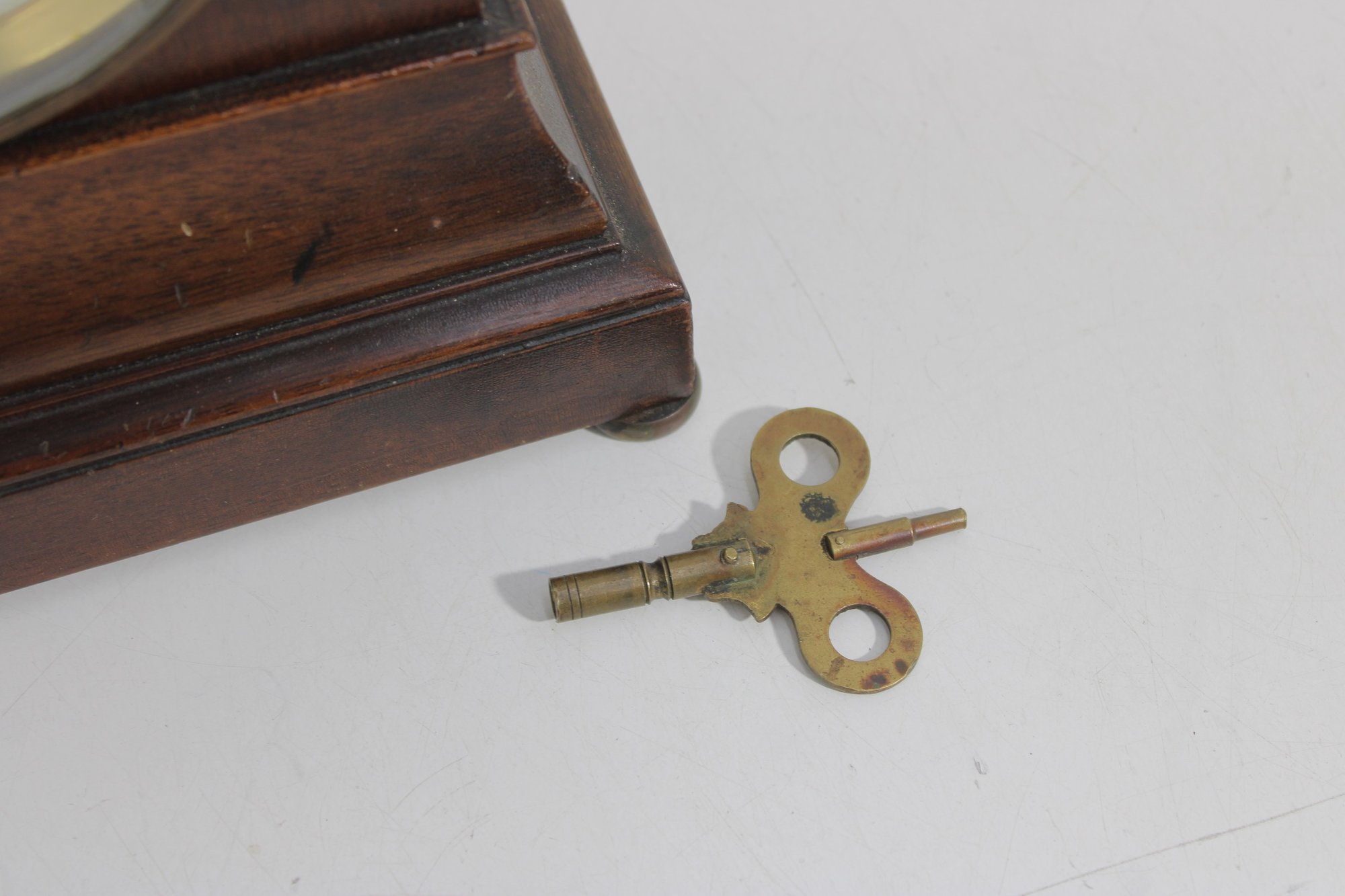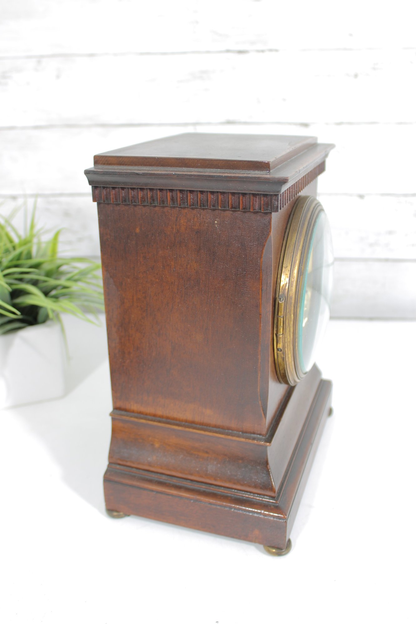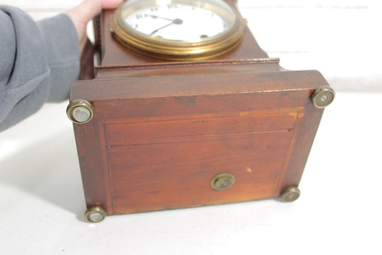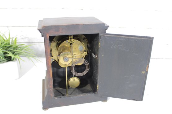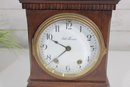 This clock measures approximately 11.5" high x 8.5" wide x 5.5" deep, making it an ideal size for a mantel, shelf, or desk display.