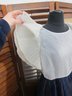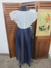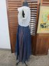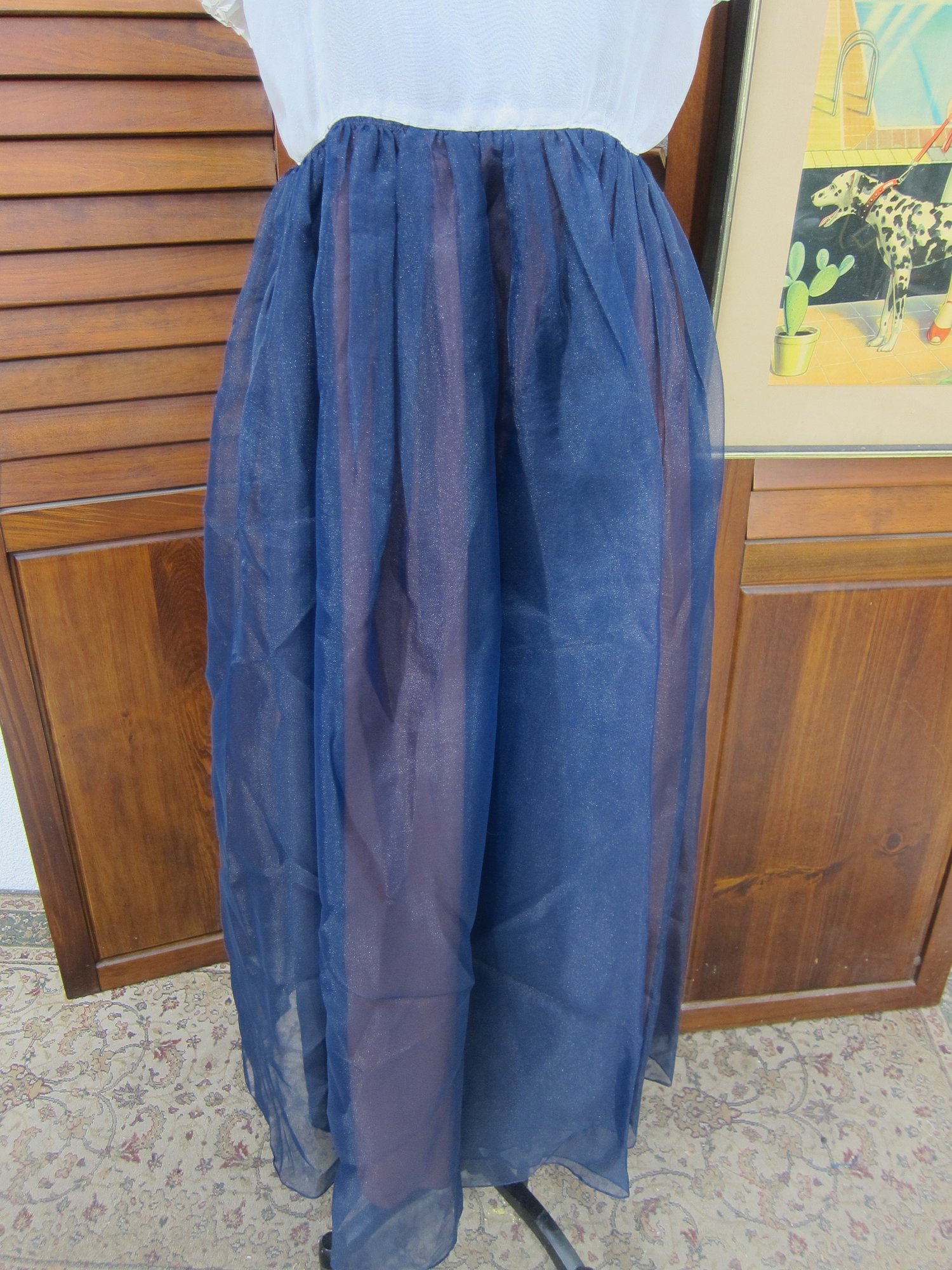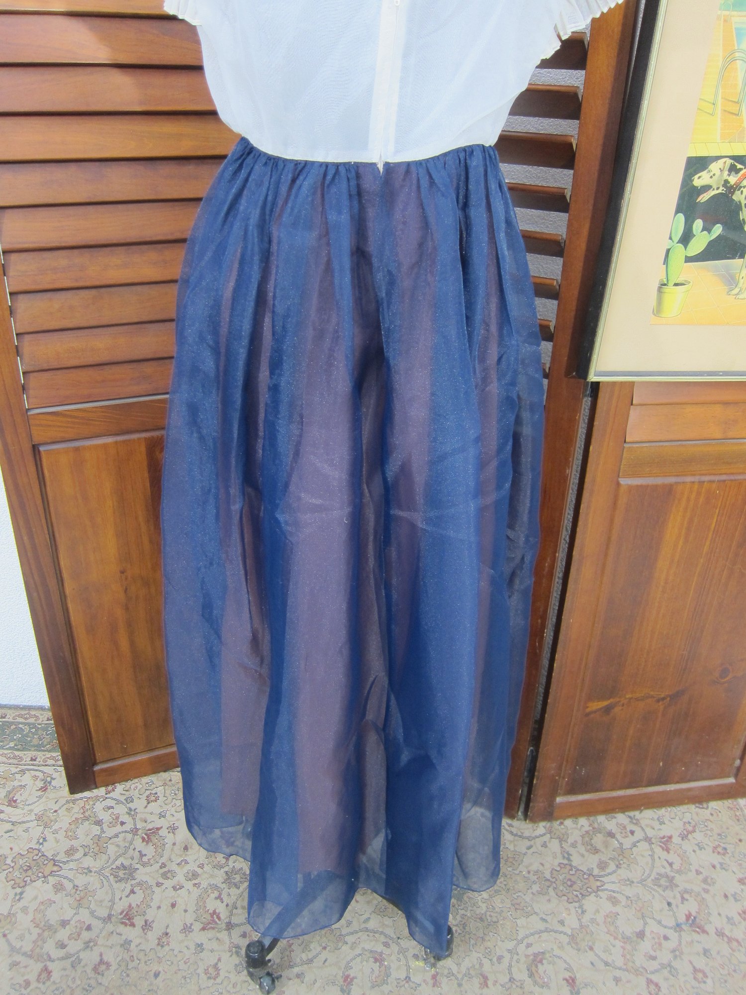 The skirt is a deep navy tone with gentle volume and a long, graceful drape, complementing the blouse beautifully. Together, the pieces offer a timeless vintage aesthetic suitable for collectors, costume or theater wardrobe, photo shoots, or restoration.