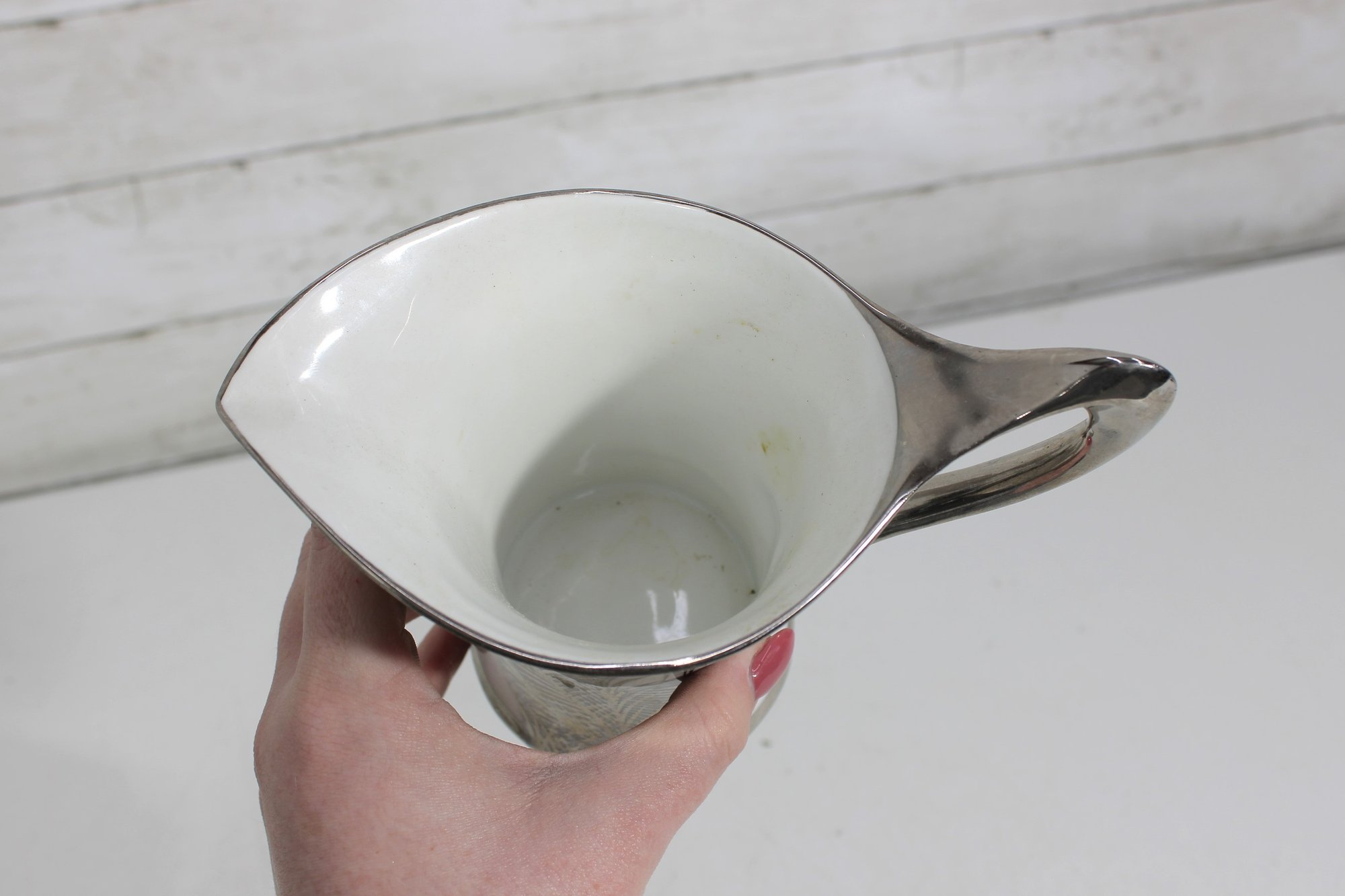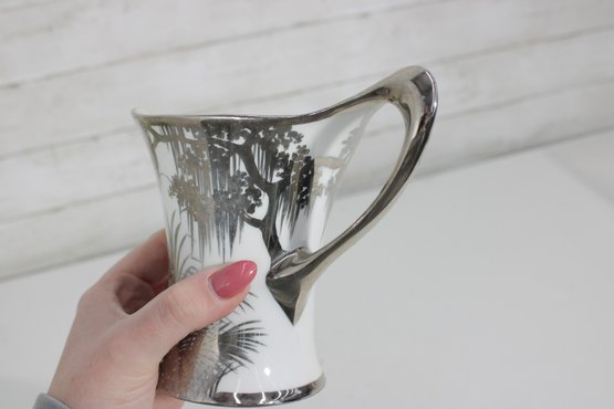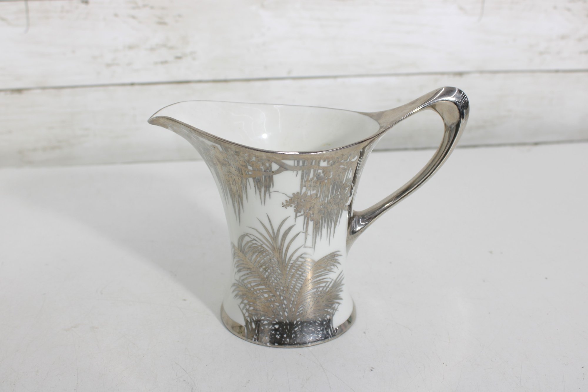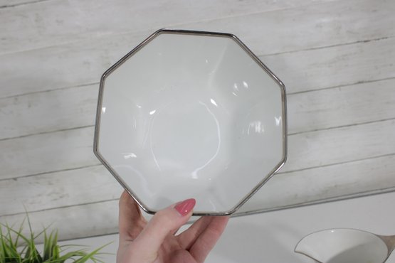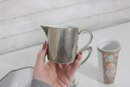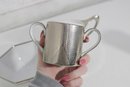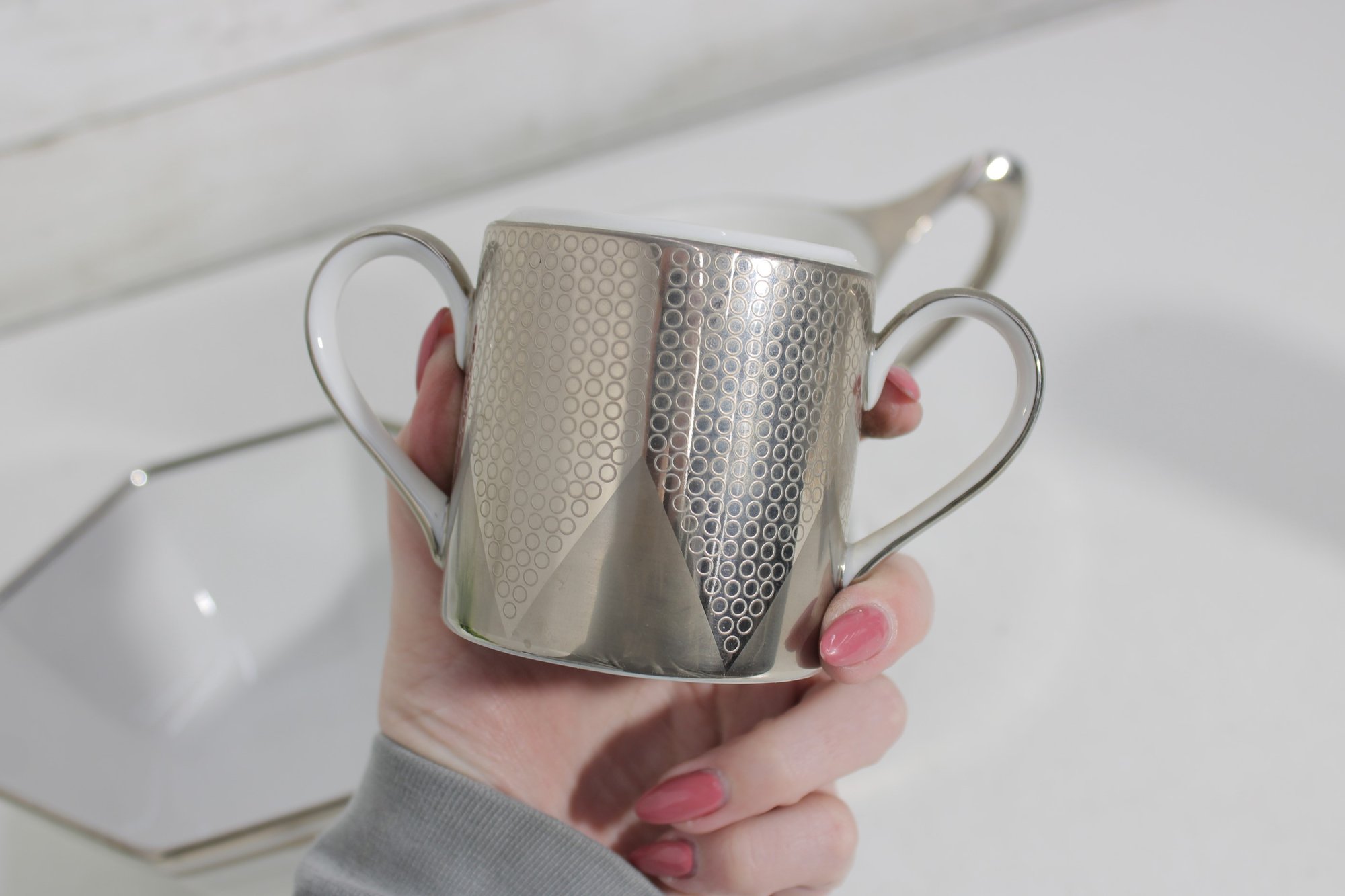 Vintage Silver Plate & Porcelain Serving Lot Creamer, Sugar Bowl, Mugs, Bowl & Knife Mixed Group