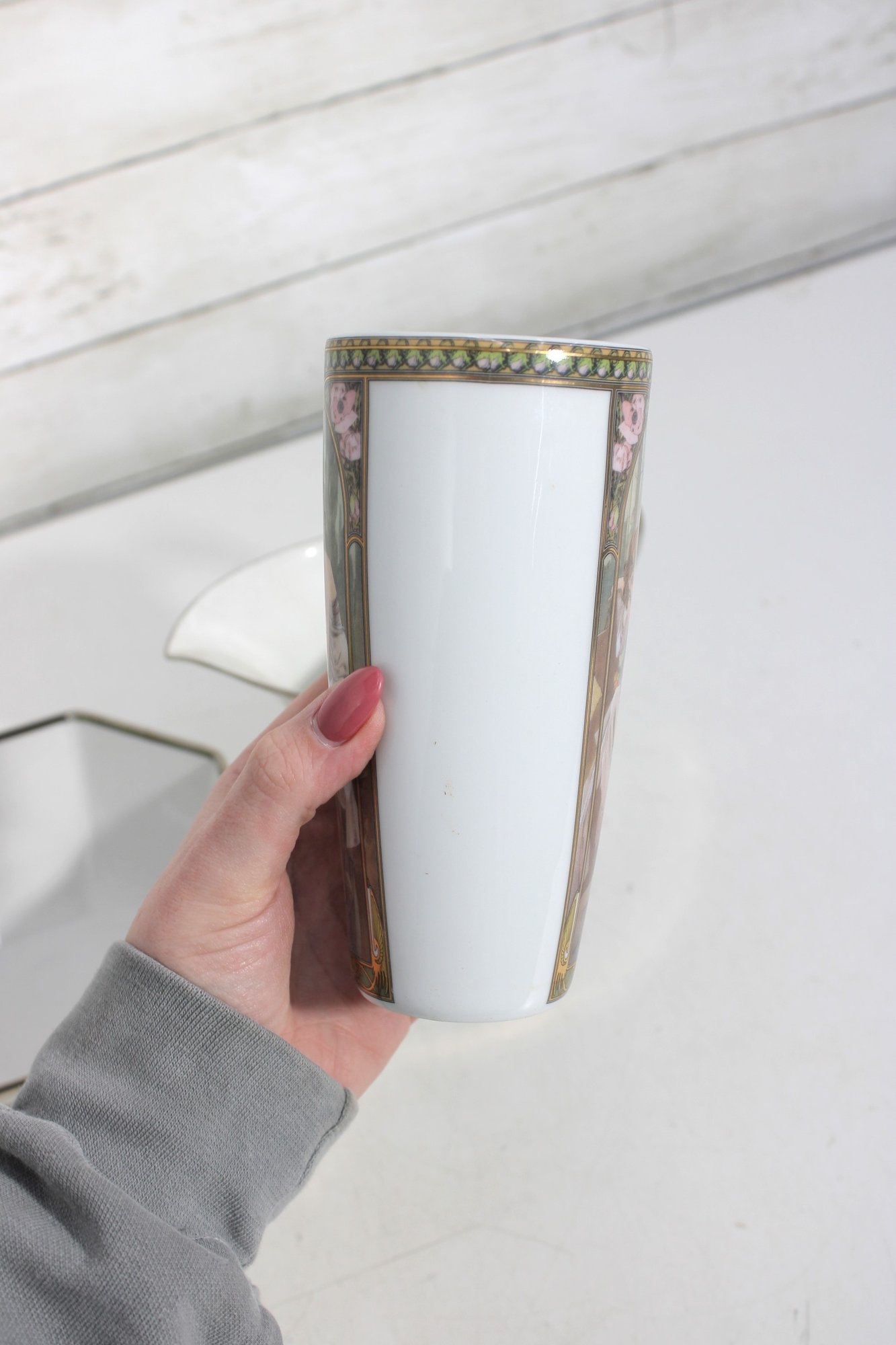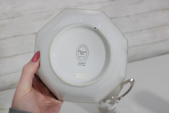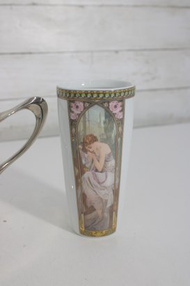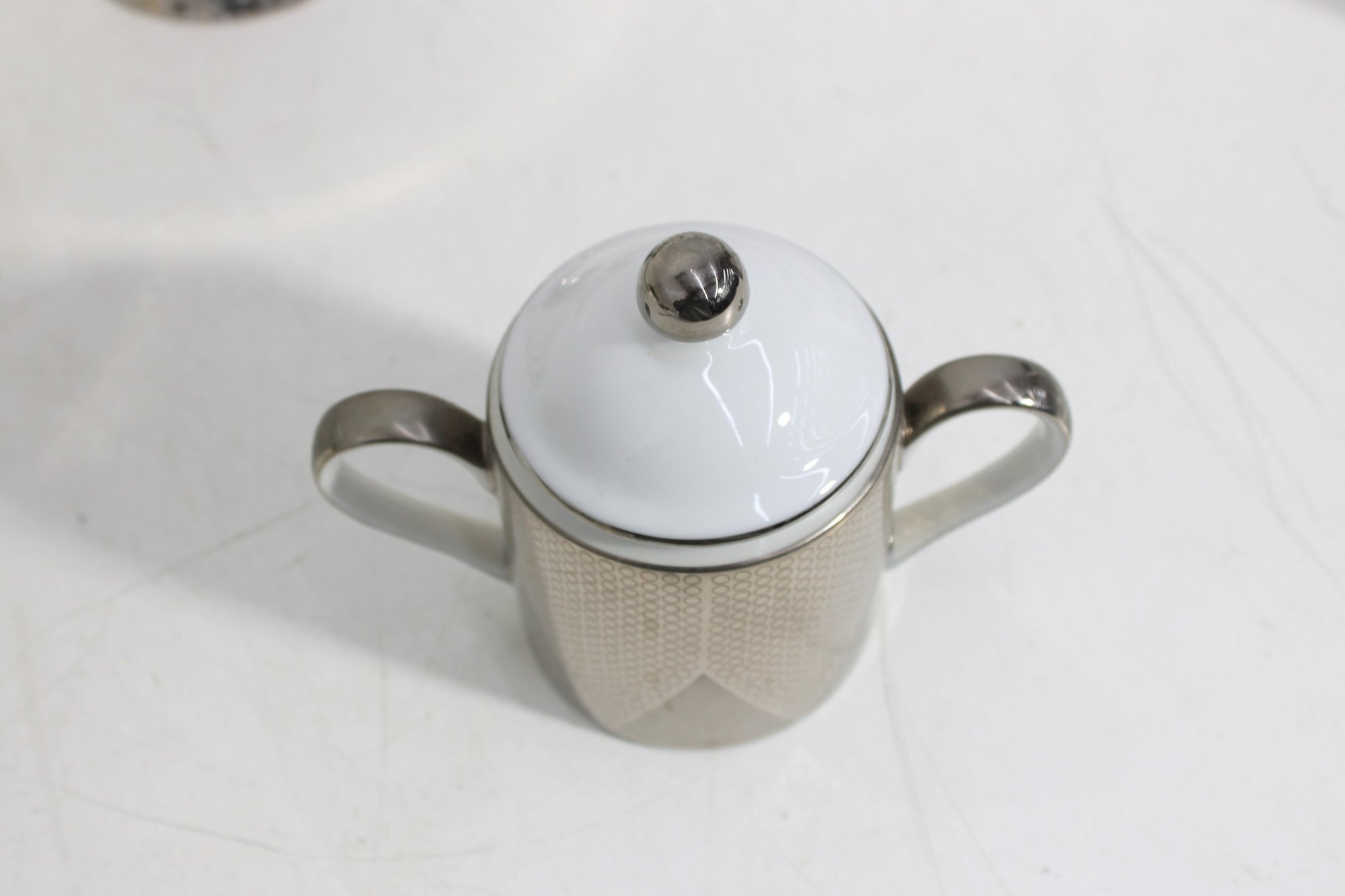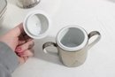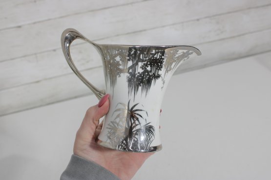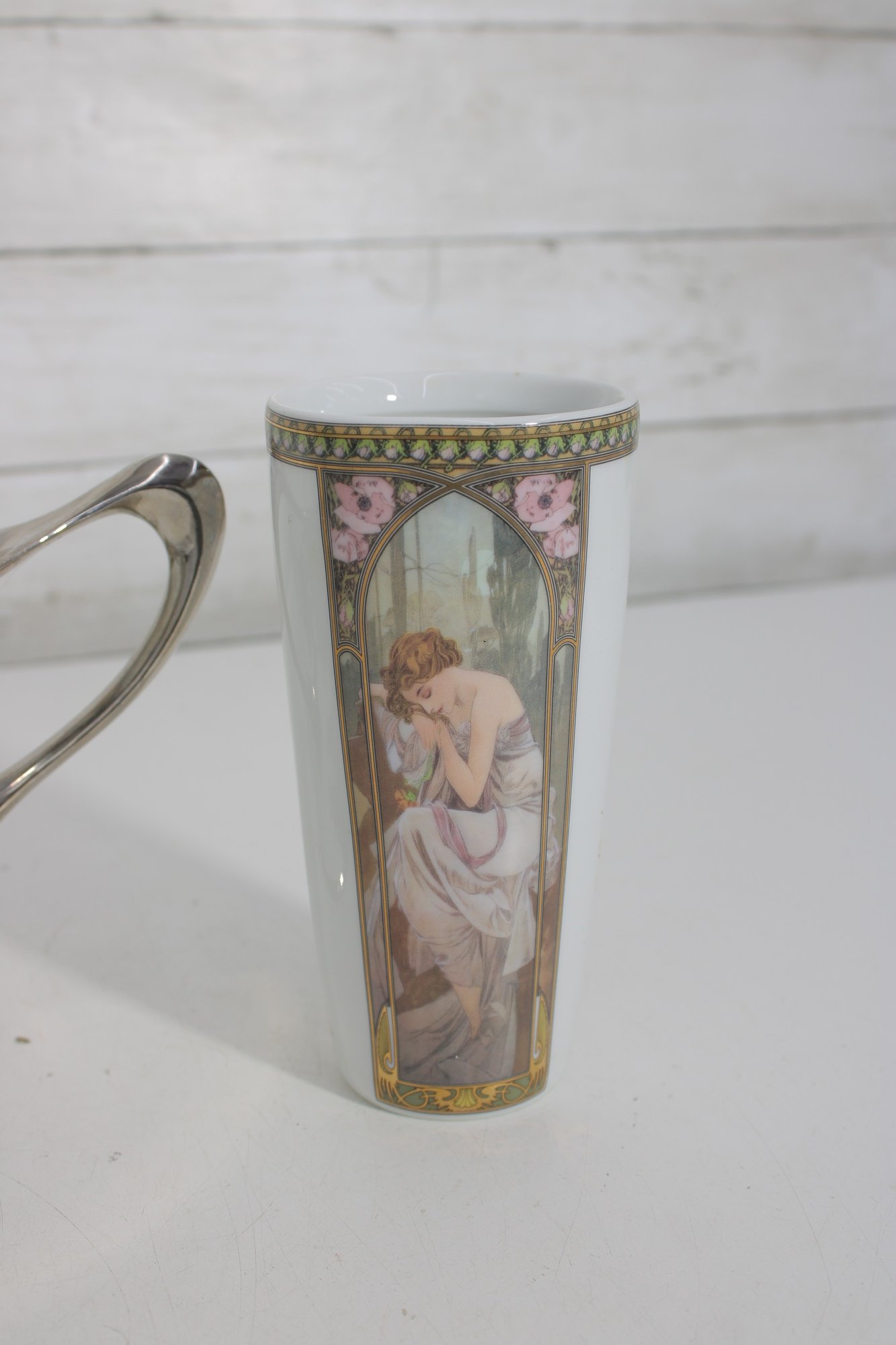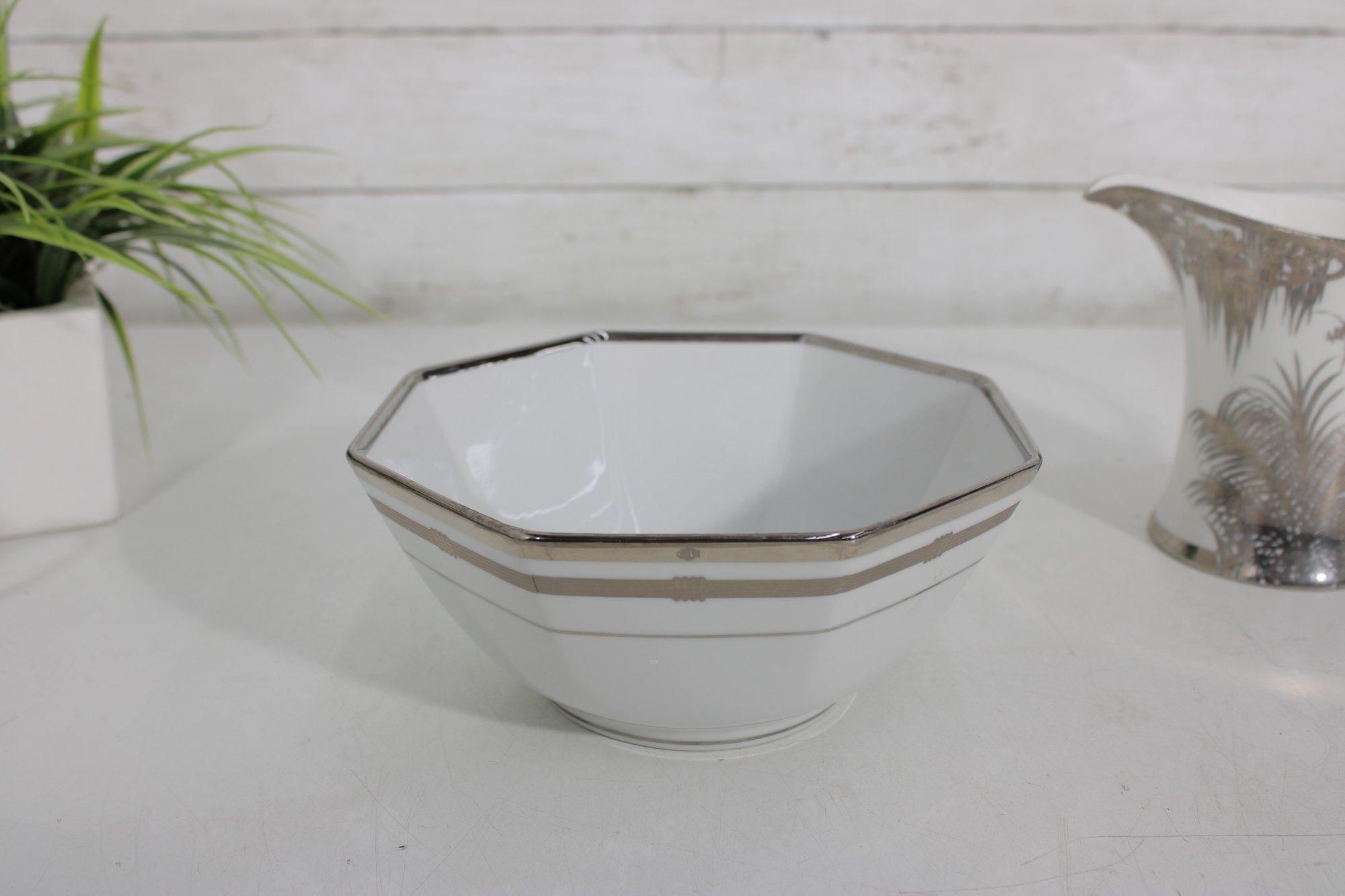 Vintage Silver Plate & Porcelain Serving Lot Creamer, Sugar Bowl, Mugs, Bowl & Knife Mixed Group