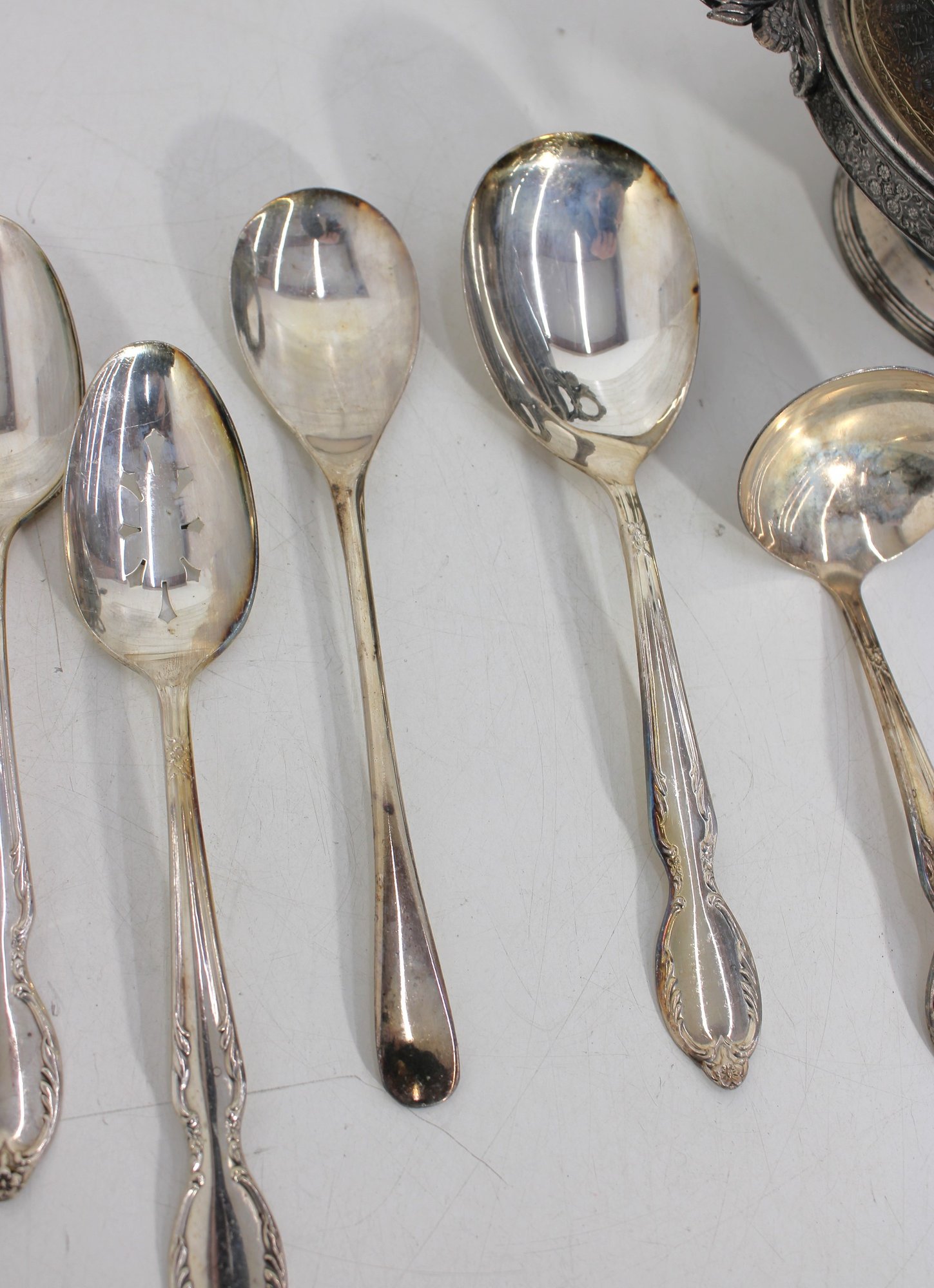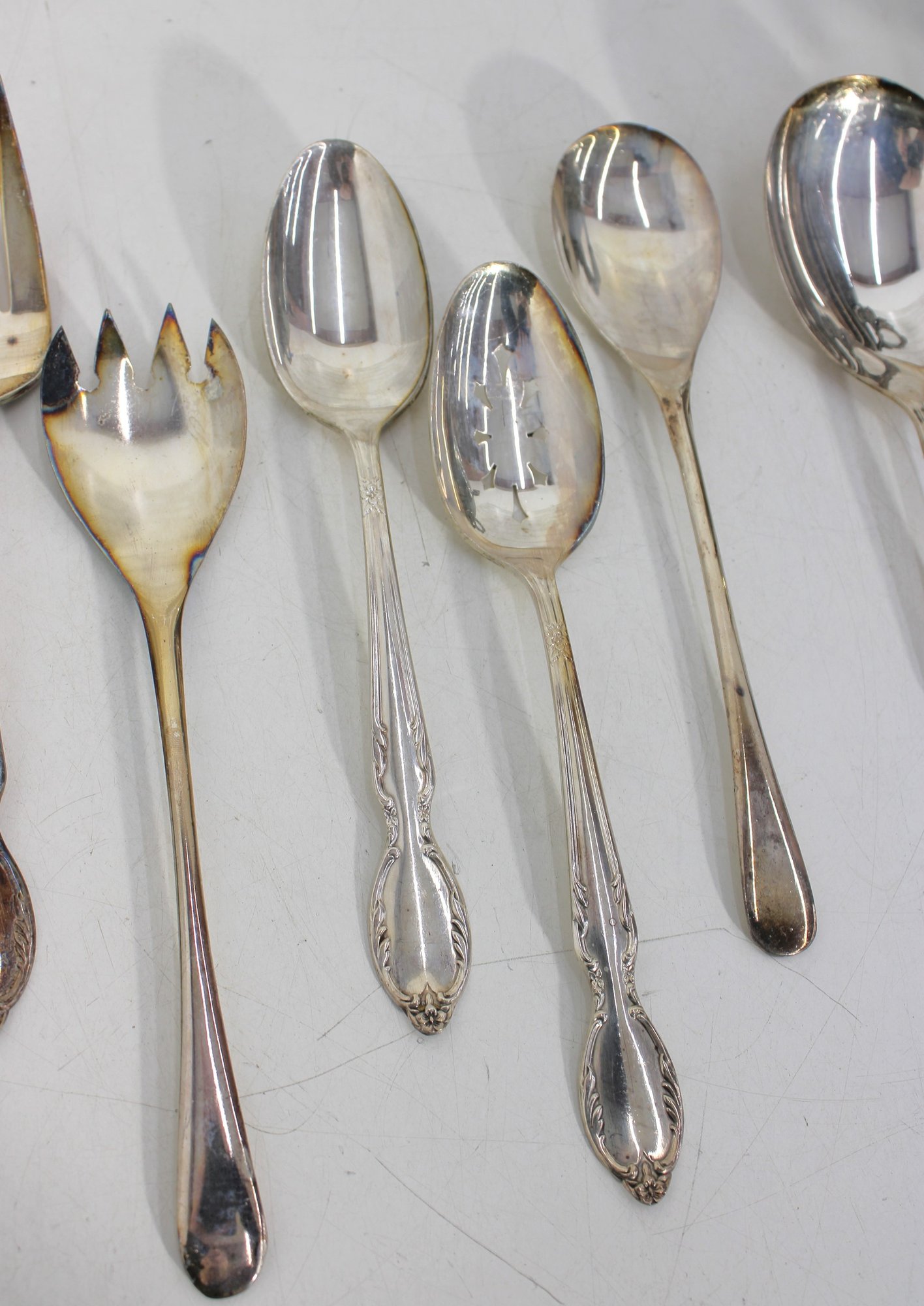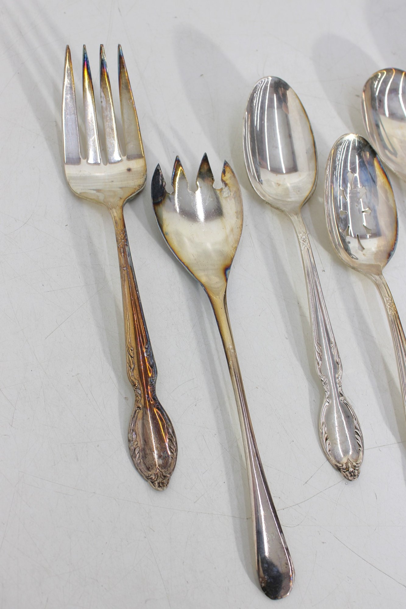 Sold AS IS. Items show tarnish, scratches, and wear consistent with age and use. Some pieces may require polishing or restoration.