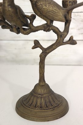 The intricate feather details and elegant tree-branch base highlight fine craftsmanship, making it a striking decorative accent for a mantel, dining table, or vintage-inspired display. Over time, the brass has developed a lovely aged patina that enhances its antique appeal.