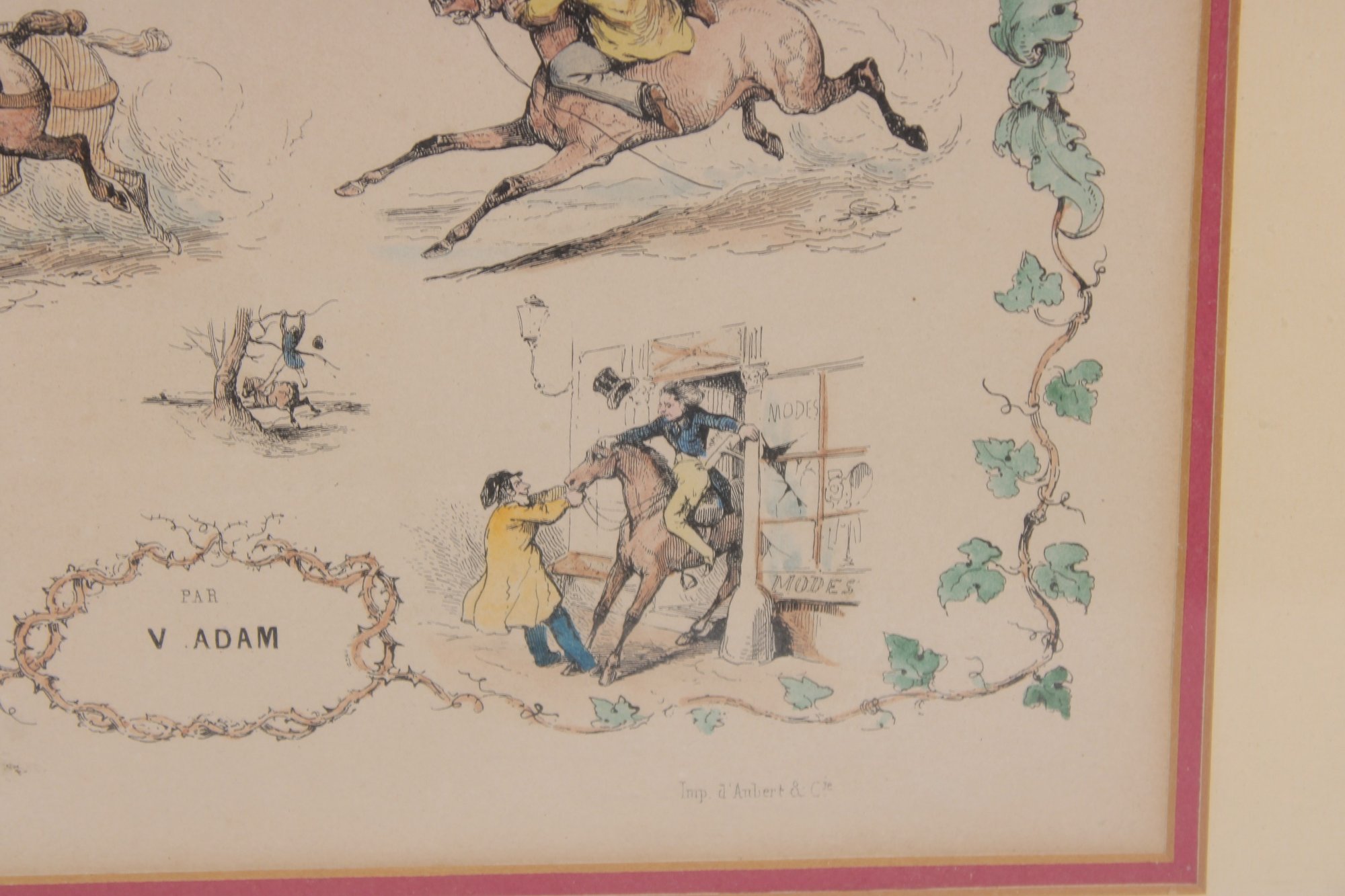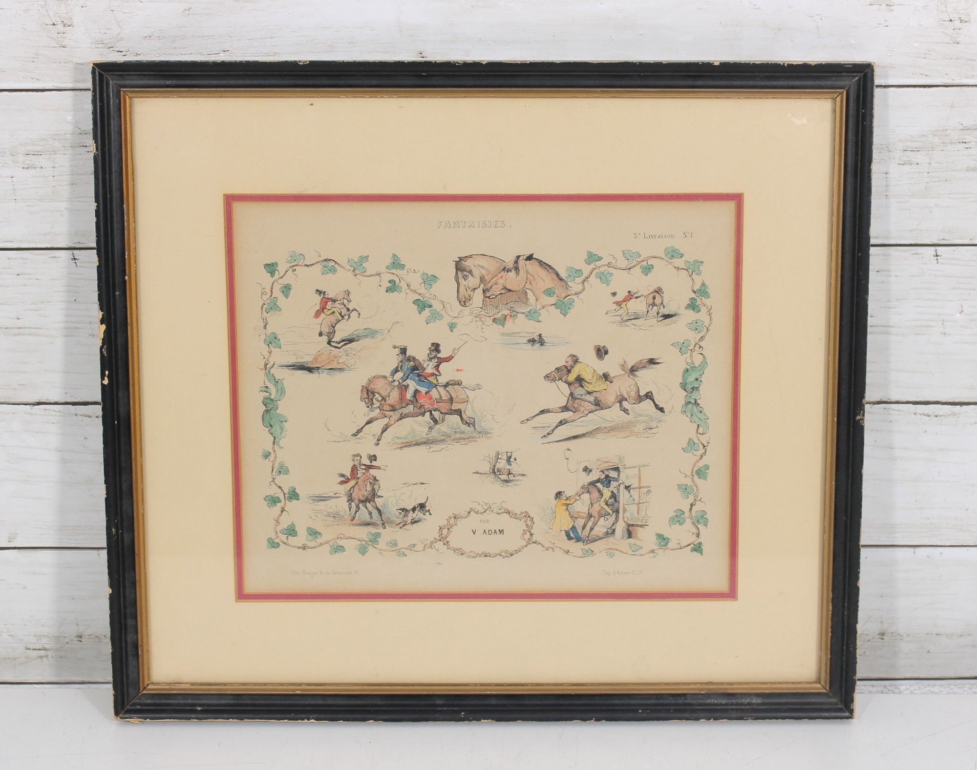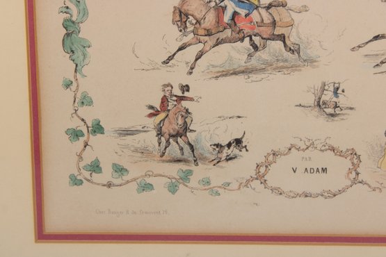 “V. Adam” refers to Victor Adam, a noted French artist known for his equestrian and sporting subjects during the 19th century.