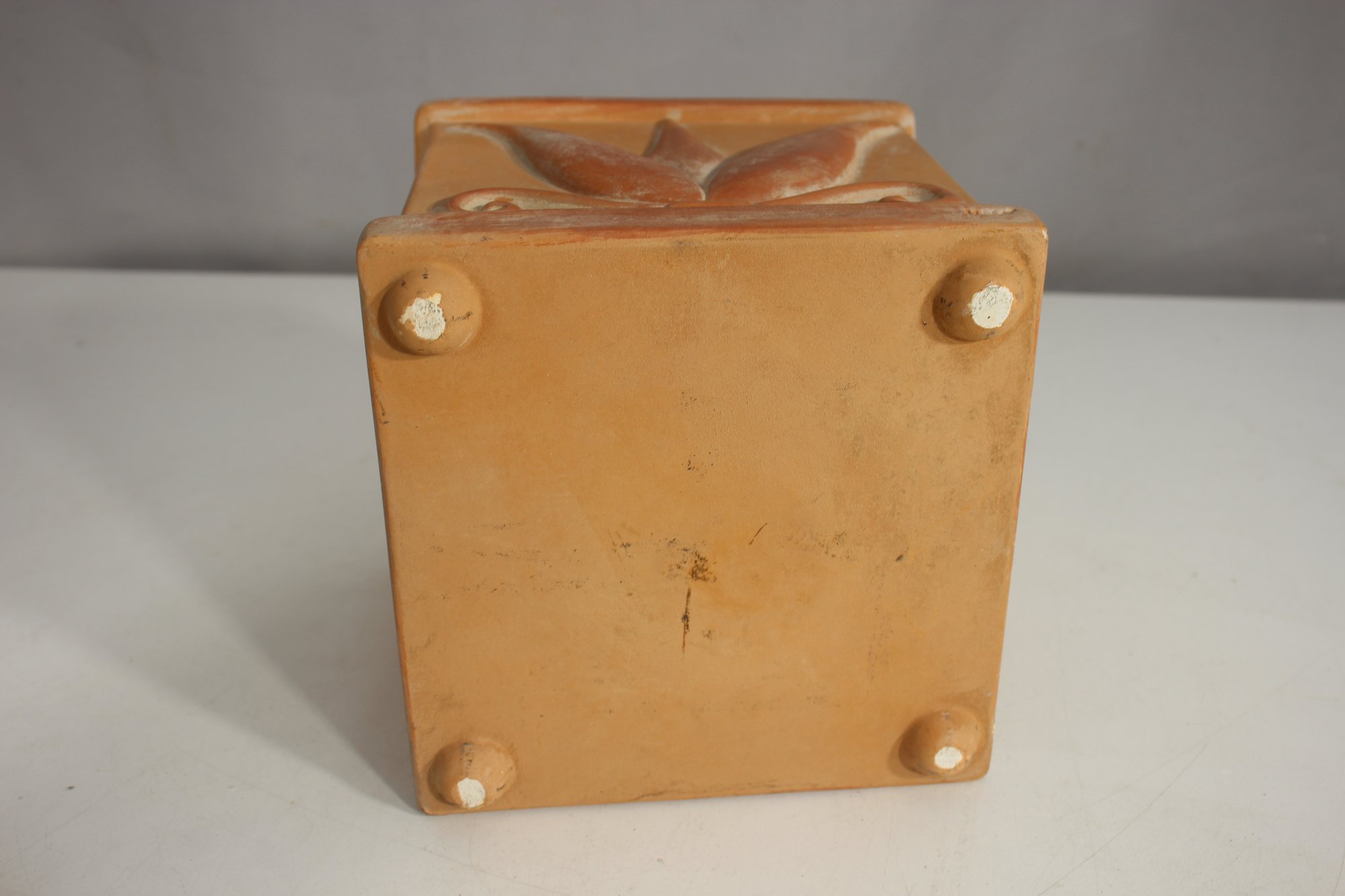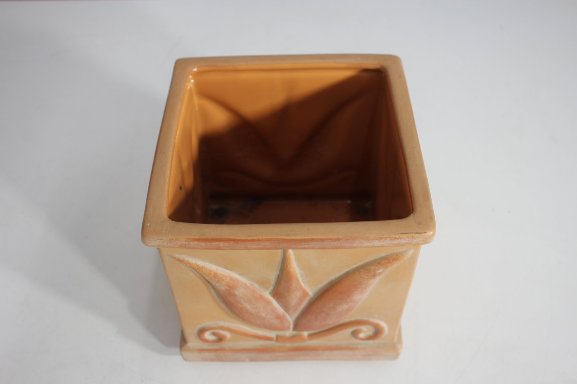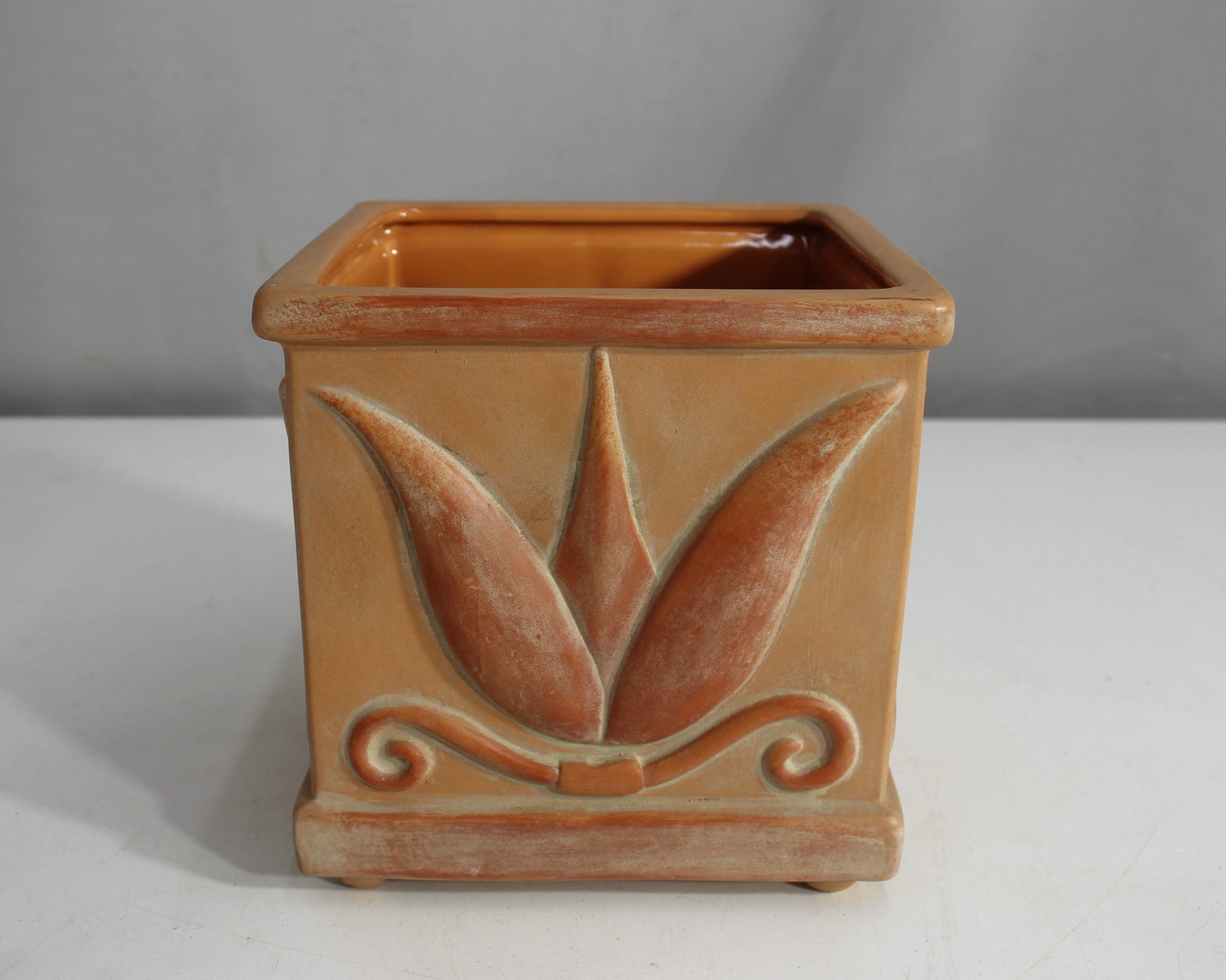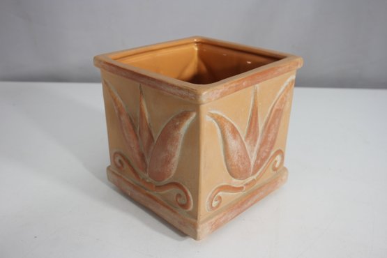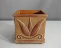 Vintage Square Ceramic Planter Embossed Leaf Design 6.5H X 6W
