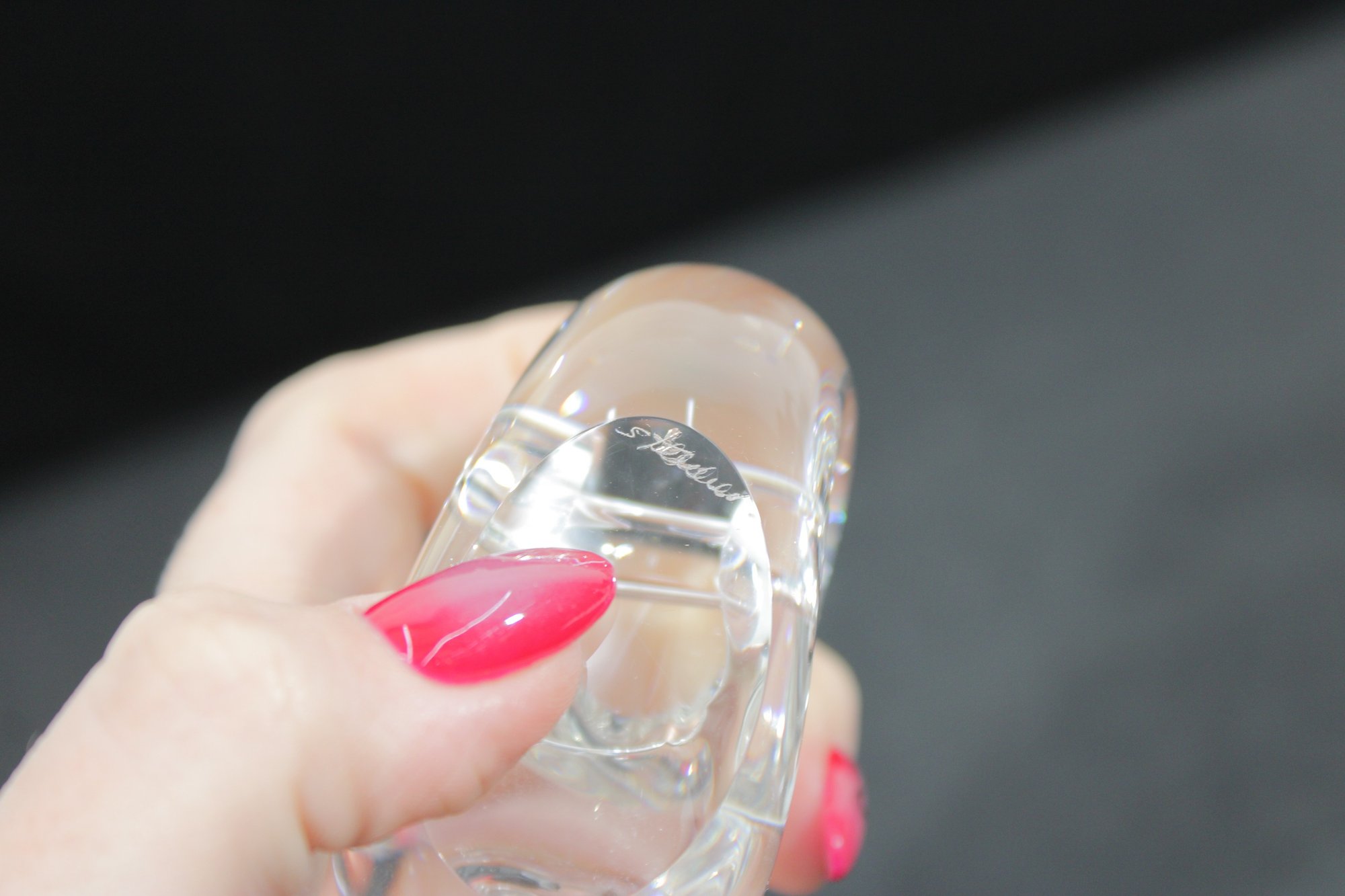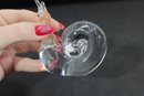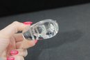 The underside appears to be signed, suggesting quality craftsmanship in the style of Steuben or similar high-end glassmakers. Its clean, minimalist design makes it a versatile decorative accent or collectible paperweight.