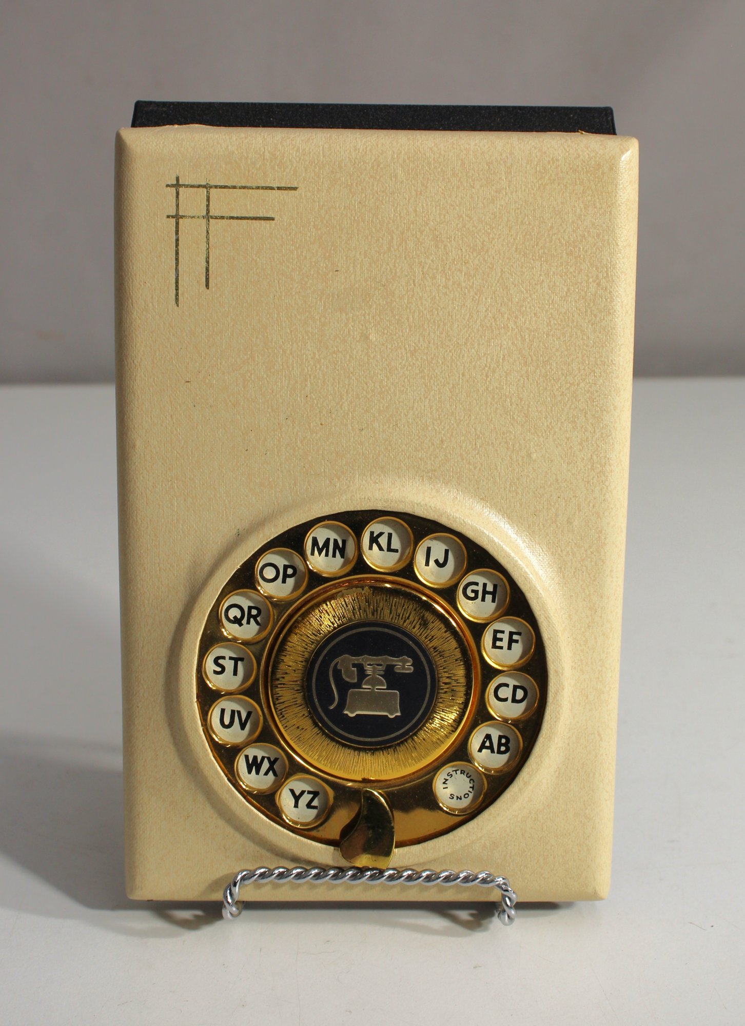 This unique vintage Stratton Dialpad address book combines function with nostalgia, featuring a rotary-style dial reminiscent of old telephones. The dial allows you to select alphabetical tabs, opening to reveal a flip-style address book with blank pages for names and numbers. Manufactured by Stratton of London, this piece is both practical and decorative, perfect for collectors of retro office accessories or anyone looking to add a vintage touch to their desk.