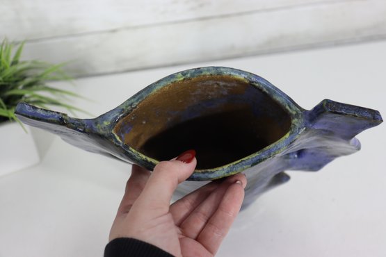 Inside is glazed brown with an open top form (see photos). Perfect statement piece for art pottery collectors, interior decorators, gallery style display, or modern eclectic design spaces.