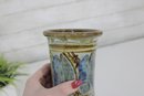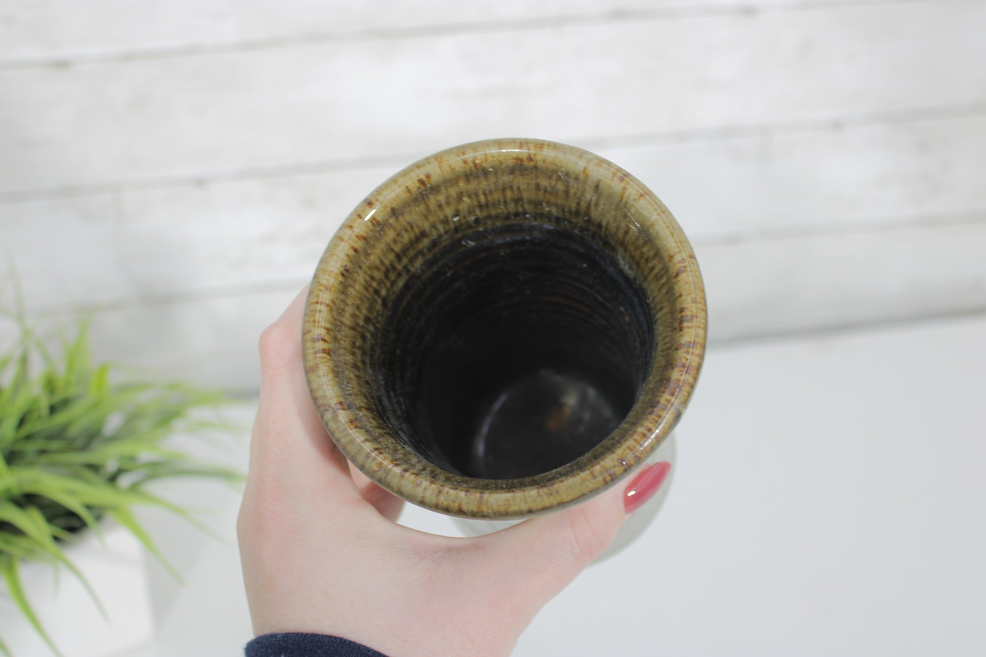 Standing approximately 6.5 inches high, this vase is ideal for displaying small floral arrangements or as a standalone decorative accent. The base appears to be artist-signed, adding collectible appeal for studio pottery enthusiasts and lovers of handmade ceramics.