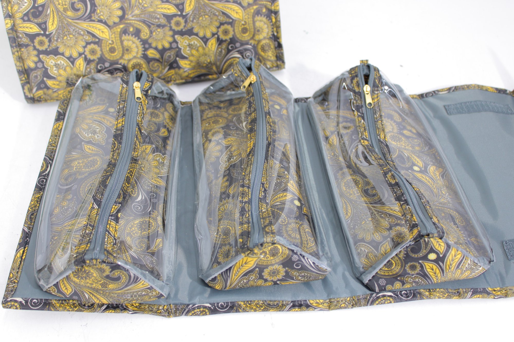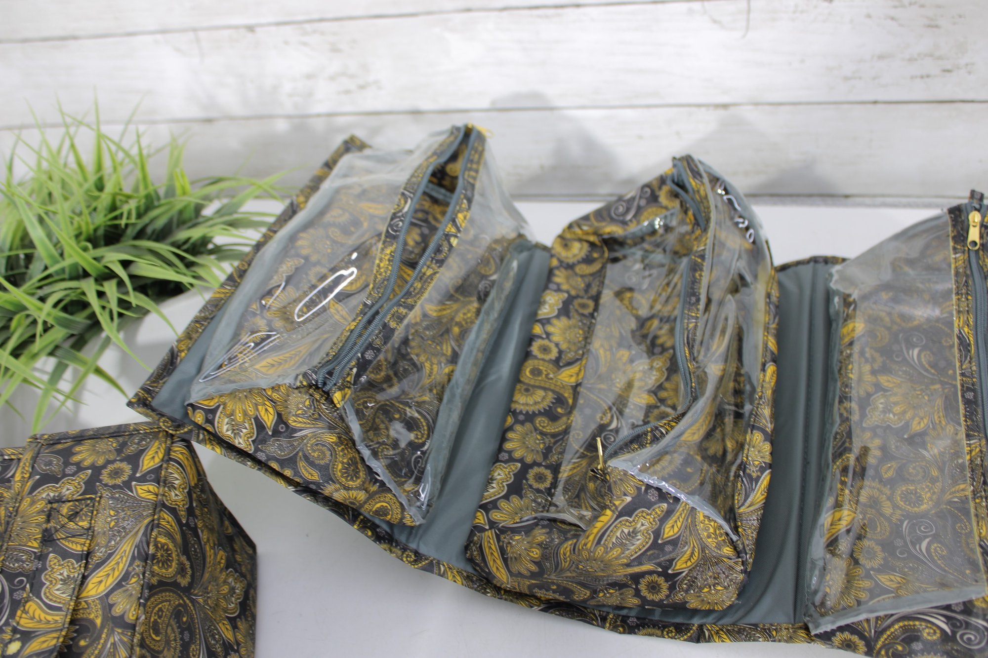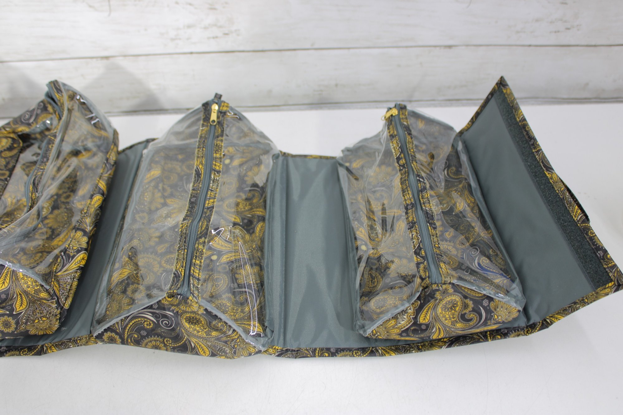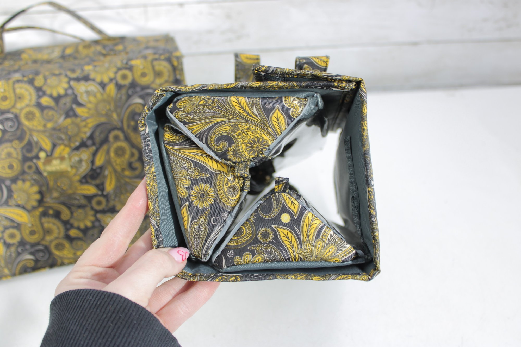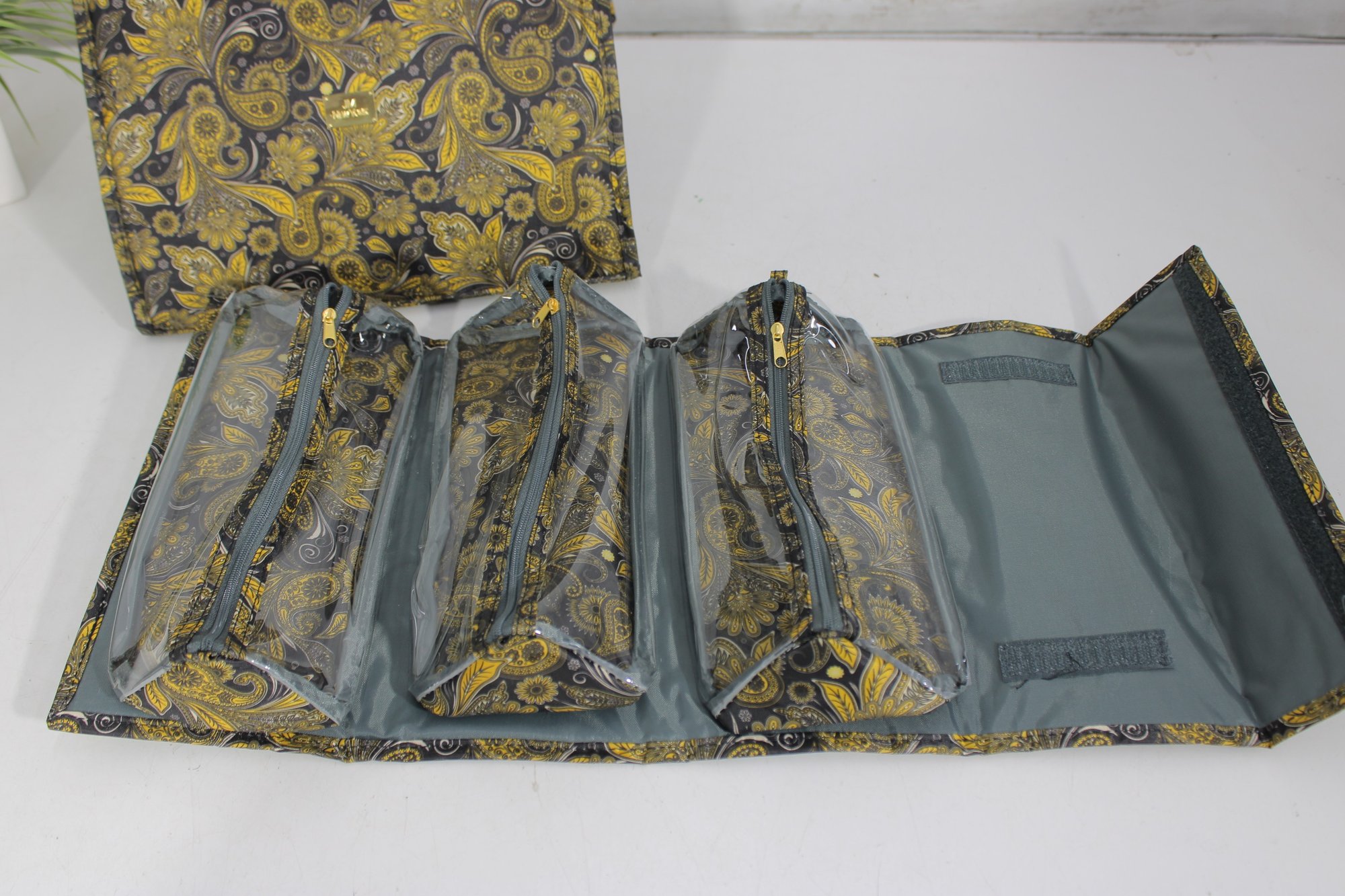 Vintage Style Folding Travel Organizer Set Paisley Print Cosmetic/Jewelry Bags Multi Compartment