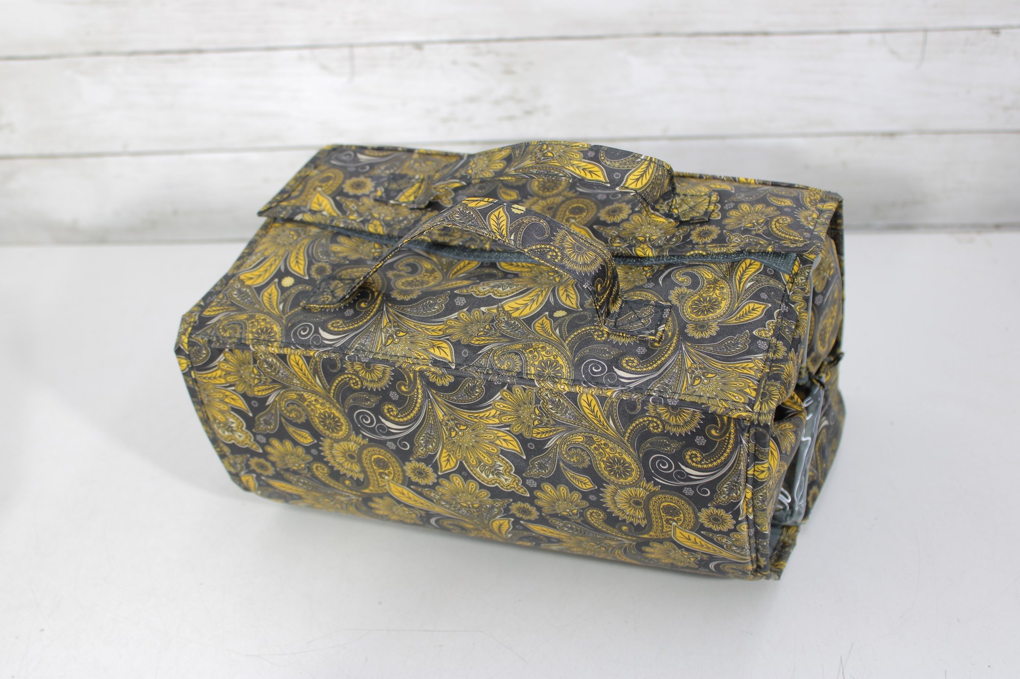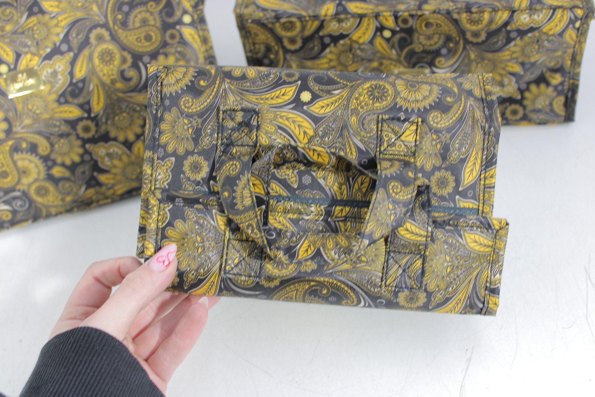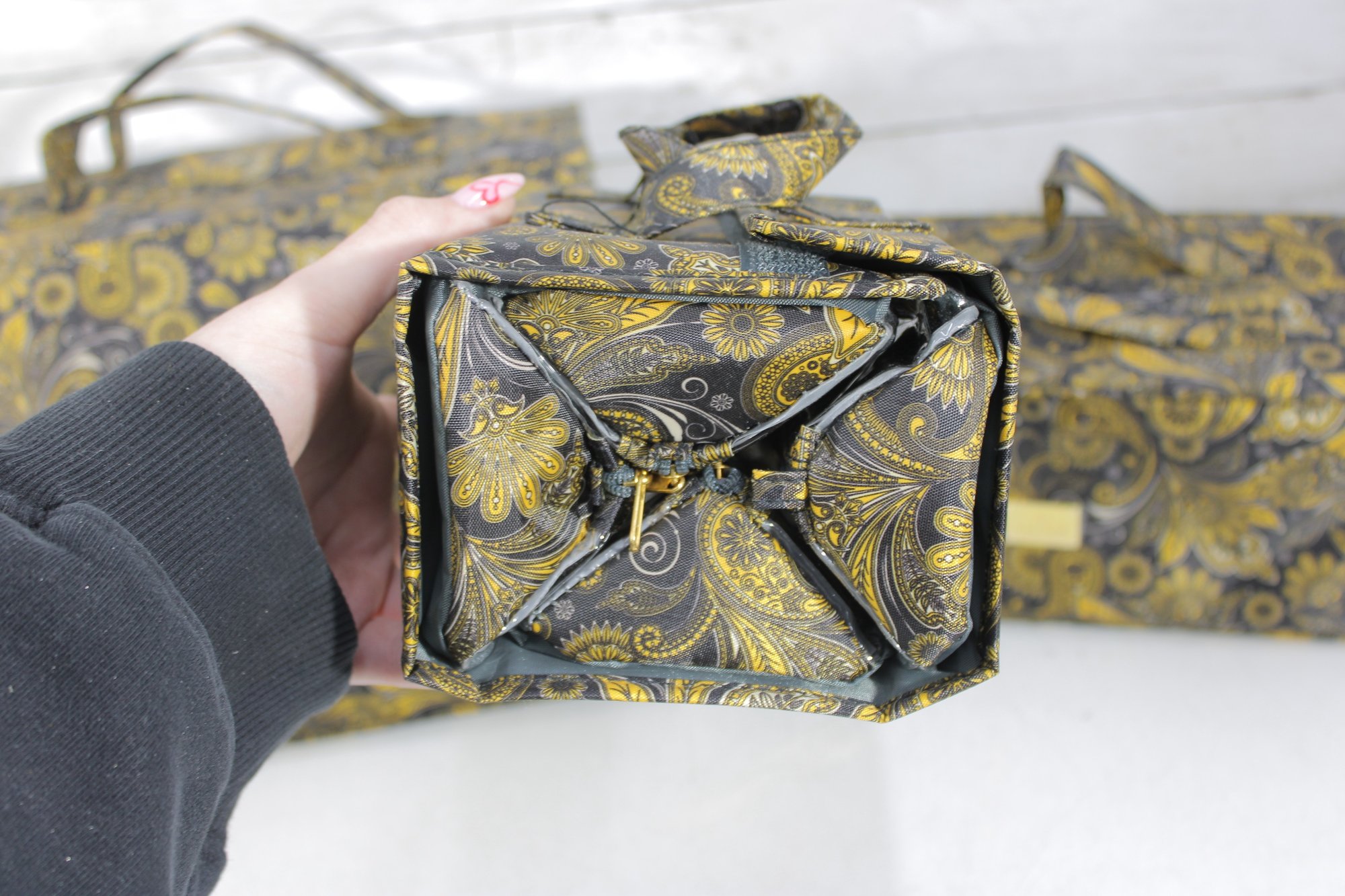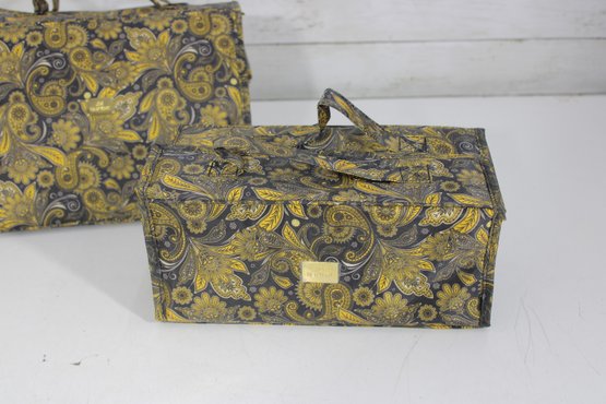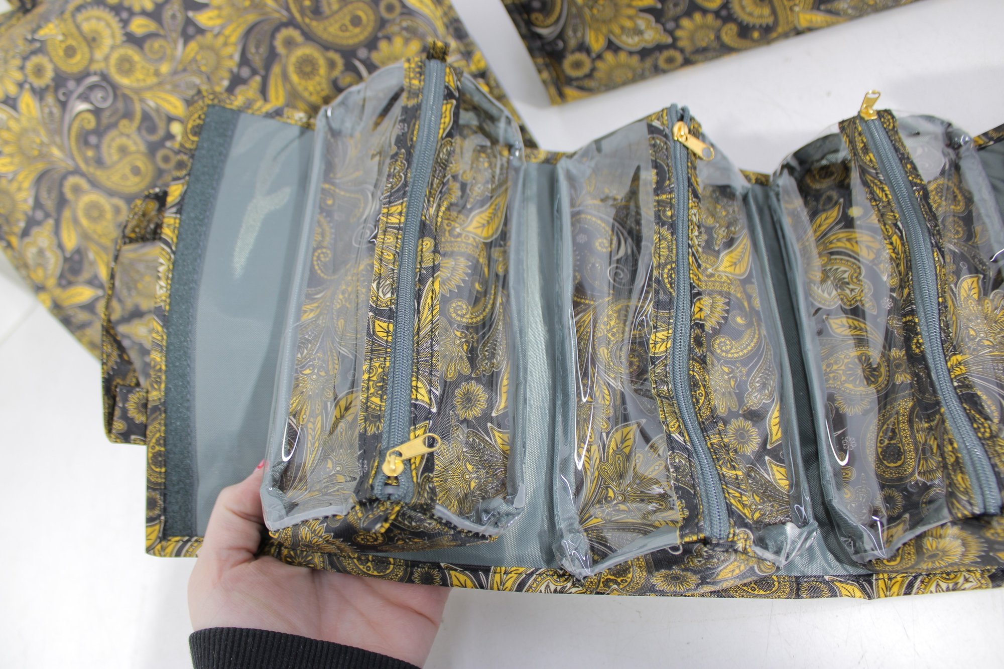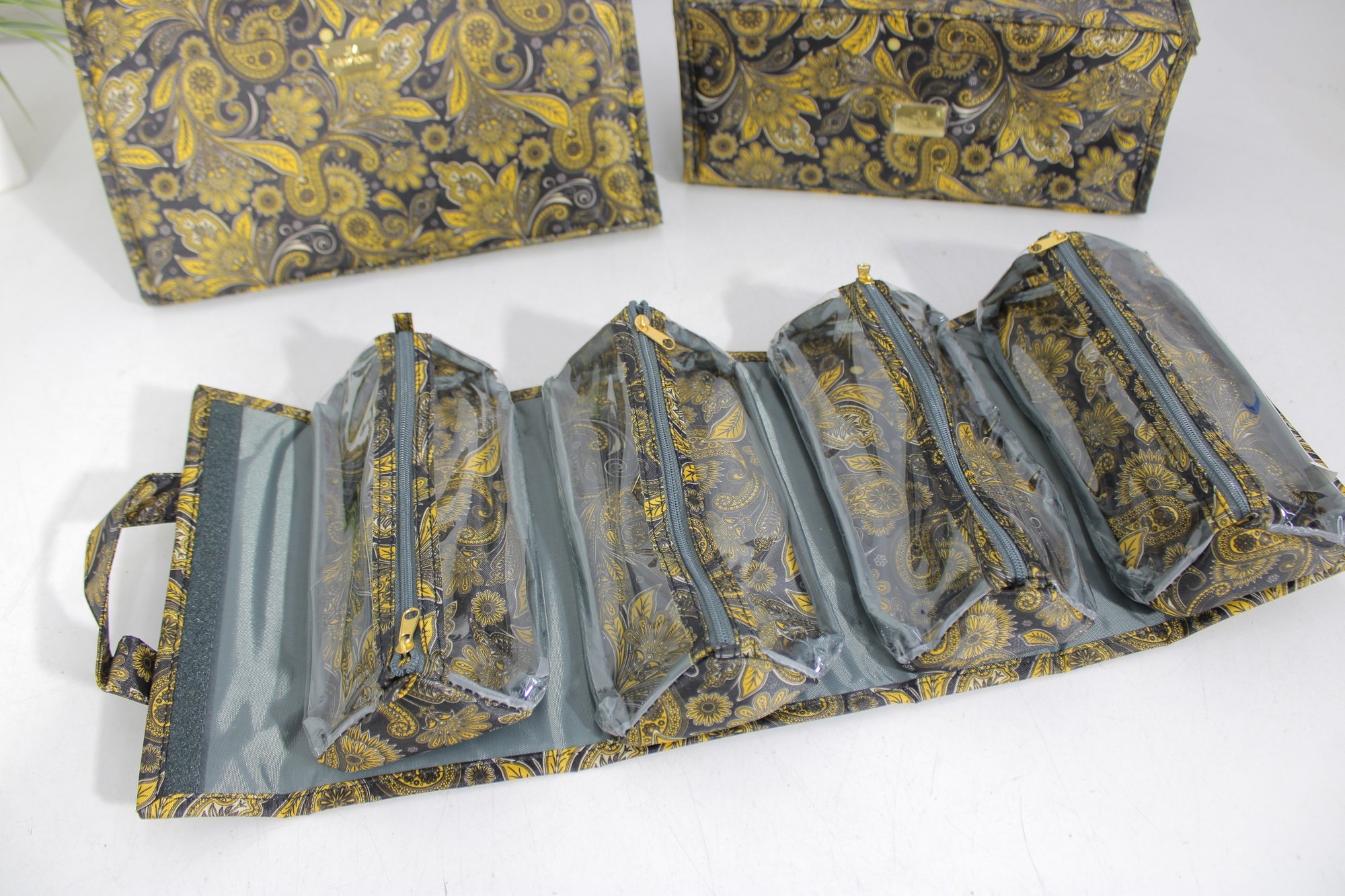 Vintage Style Folding Travel Organizer Set Paisley Print Cosmetic/Jewelry Bags Multi Compartment