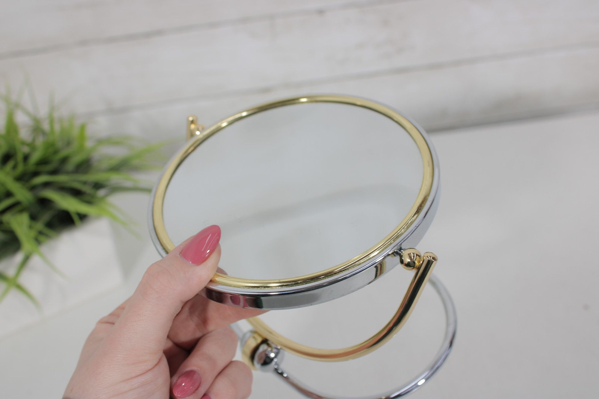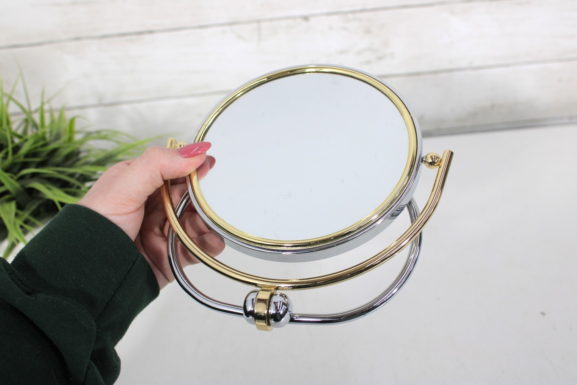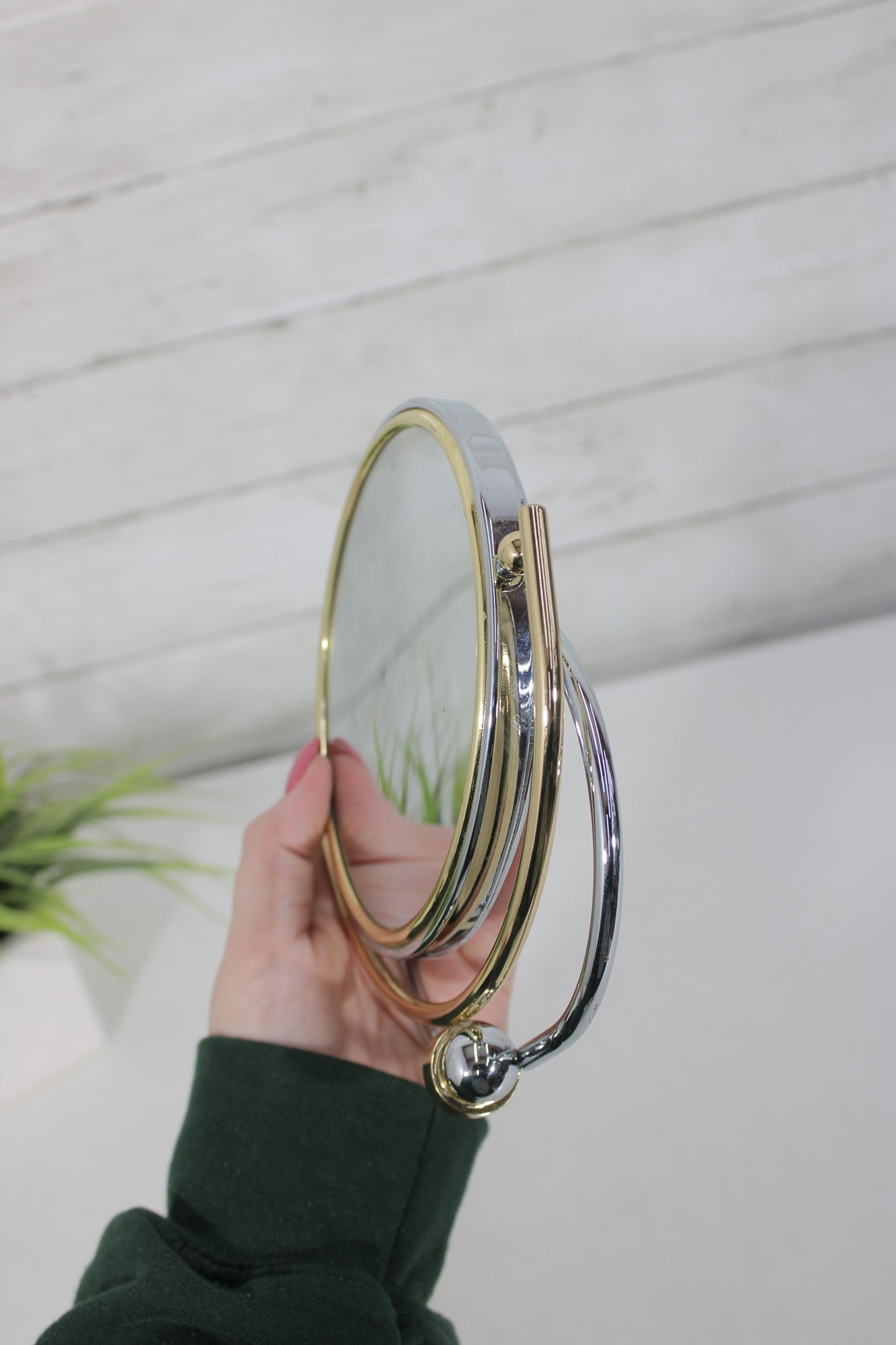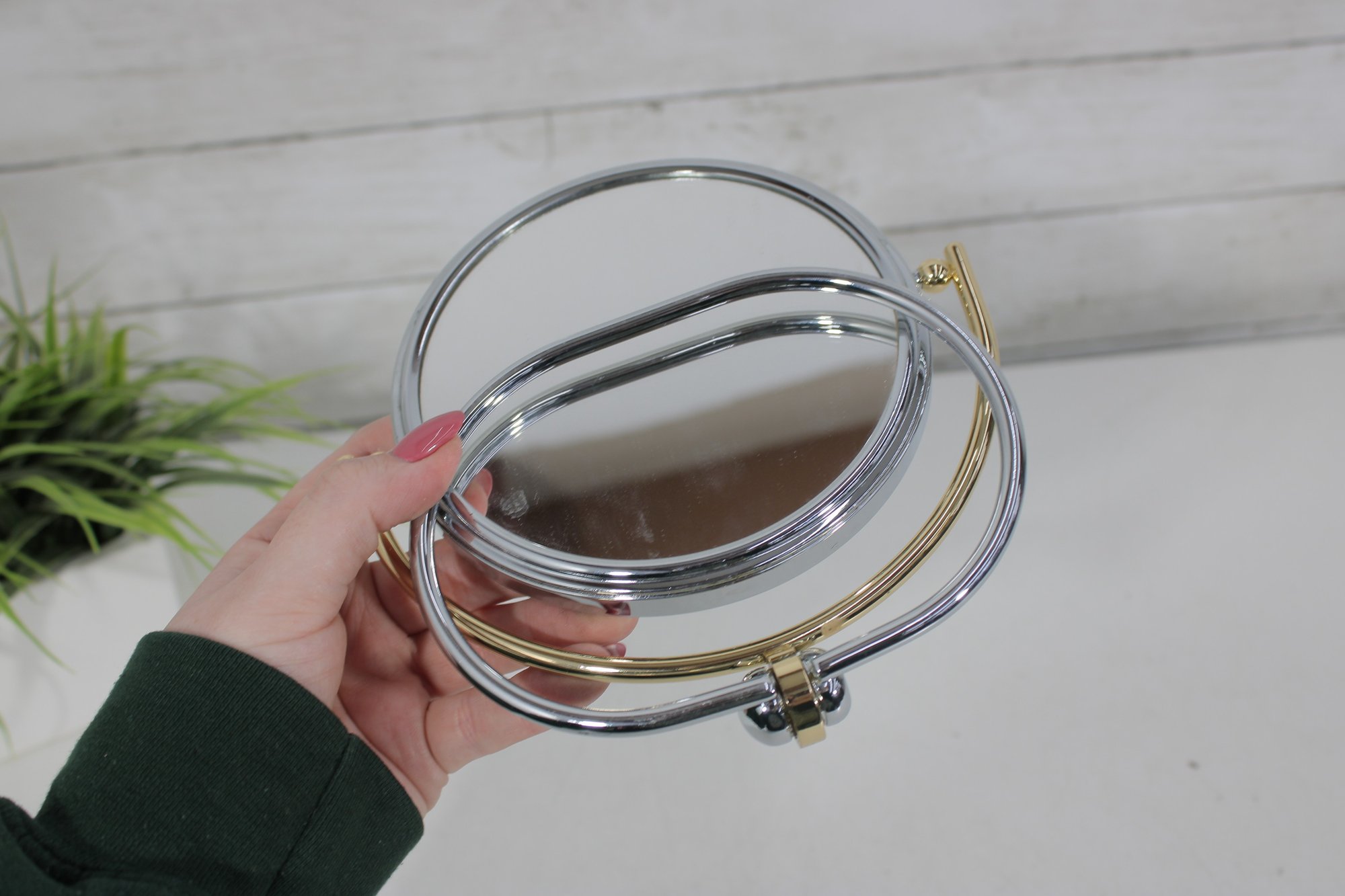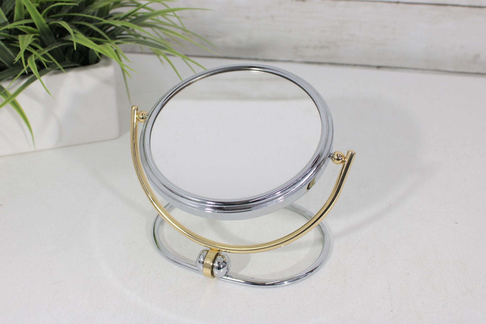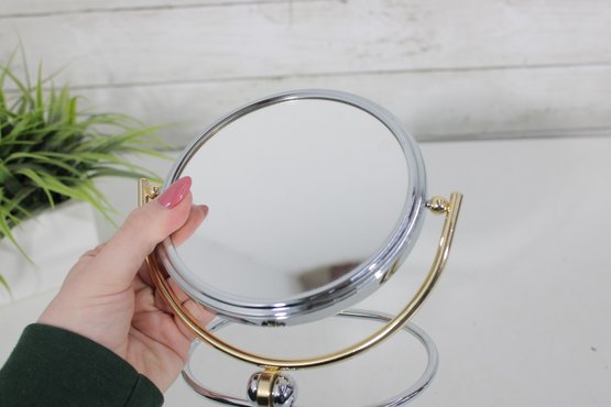 Vintage Tabletop Vanity Mirror 5.5" Round Swivel Mirror With Gold & Chrome Stand
